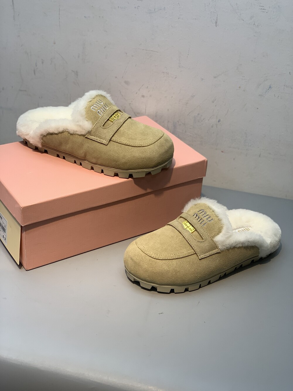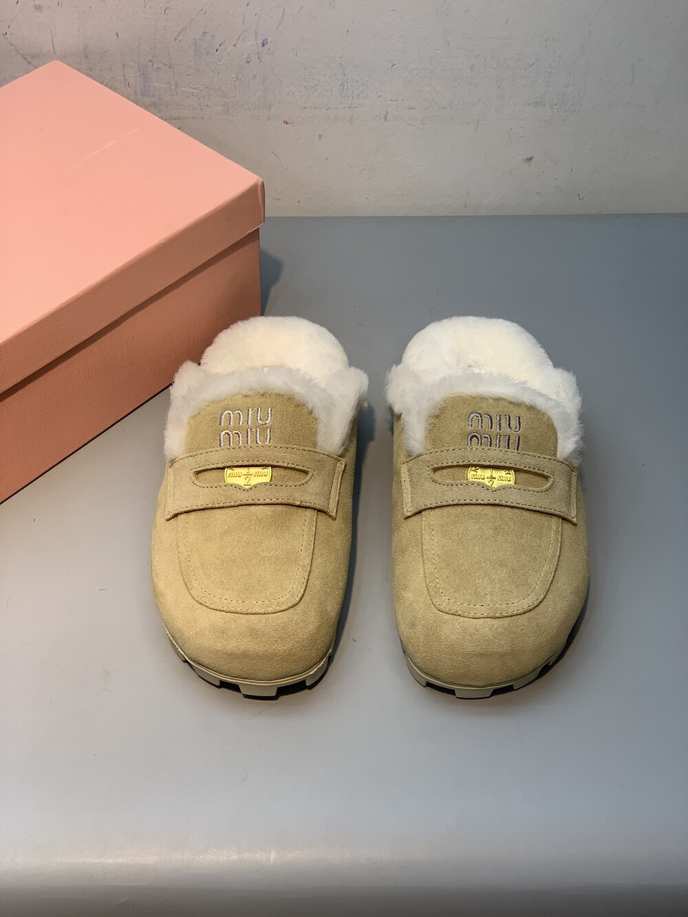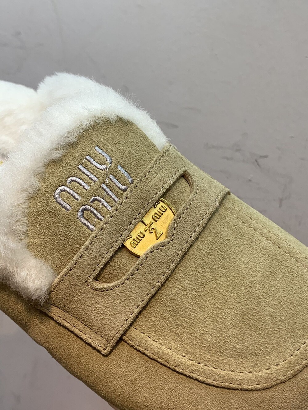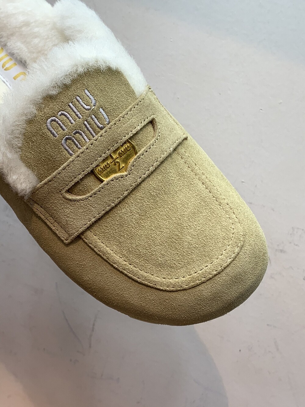 □페니 스웨이드 시어링 뮬 블로퍼□