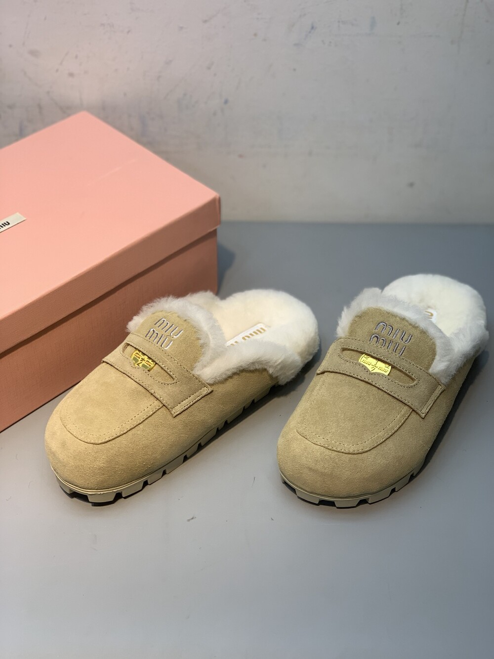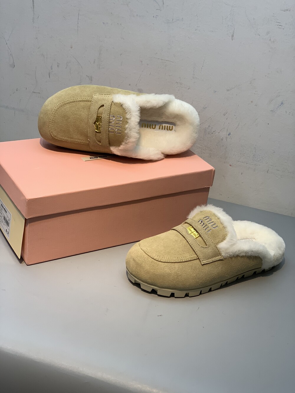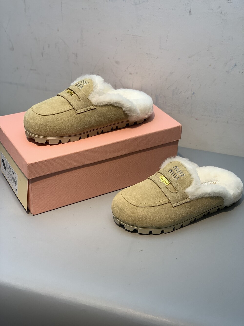 □페니 스웨이드 시어링 뮬 블로퍼□
