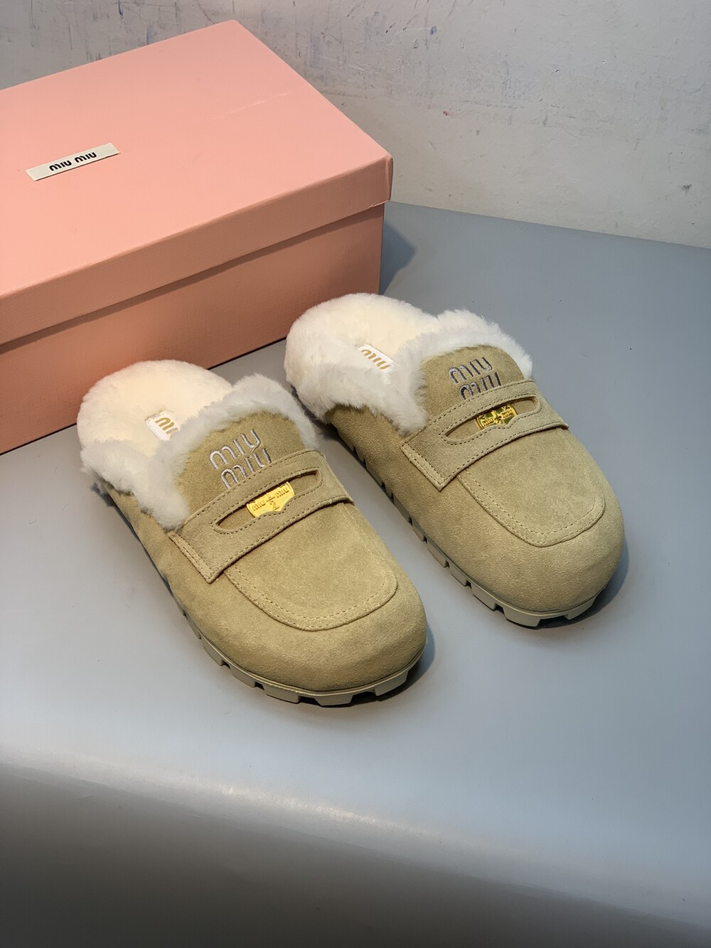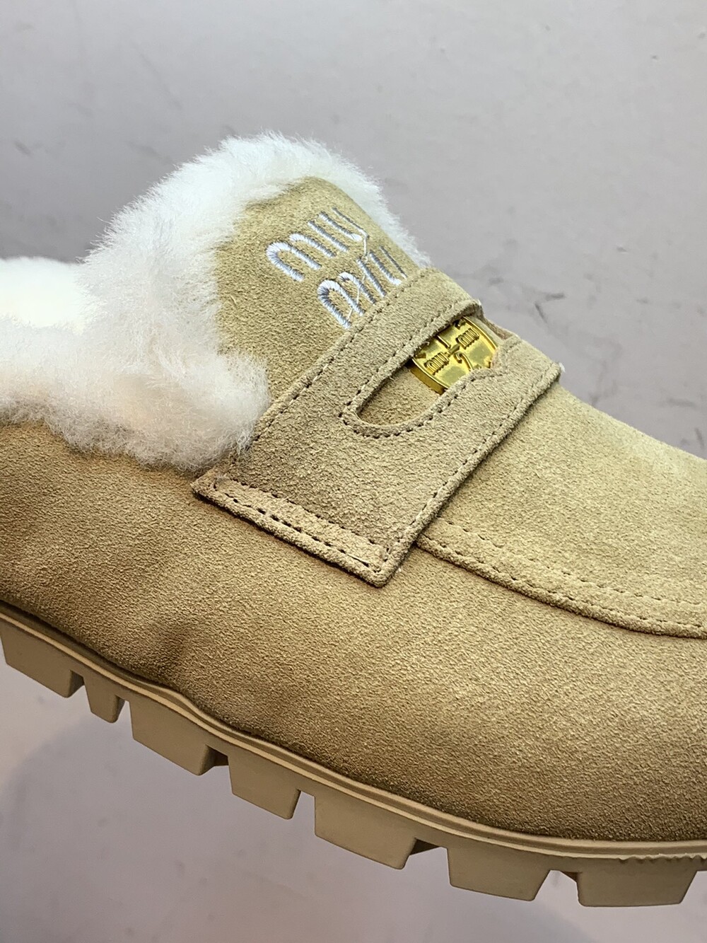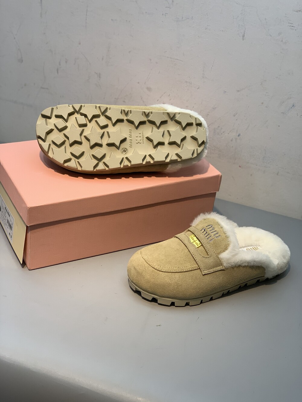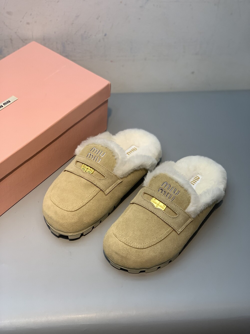 □페니 스웨이드 시어링 뮬 블로퍼□