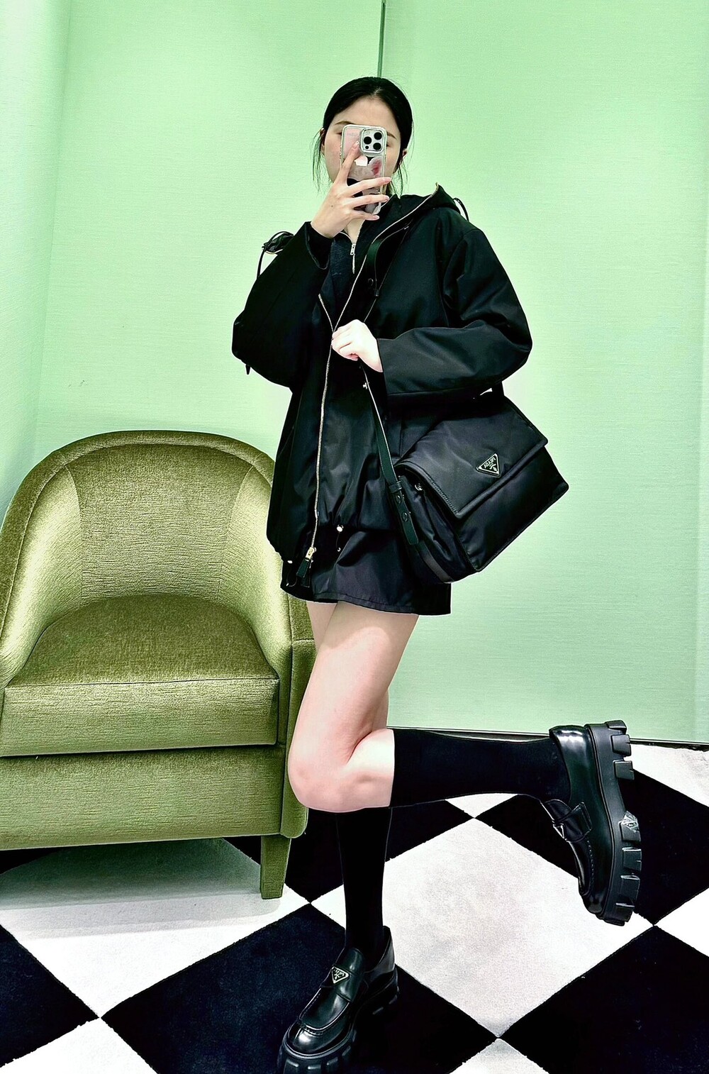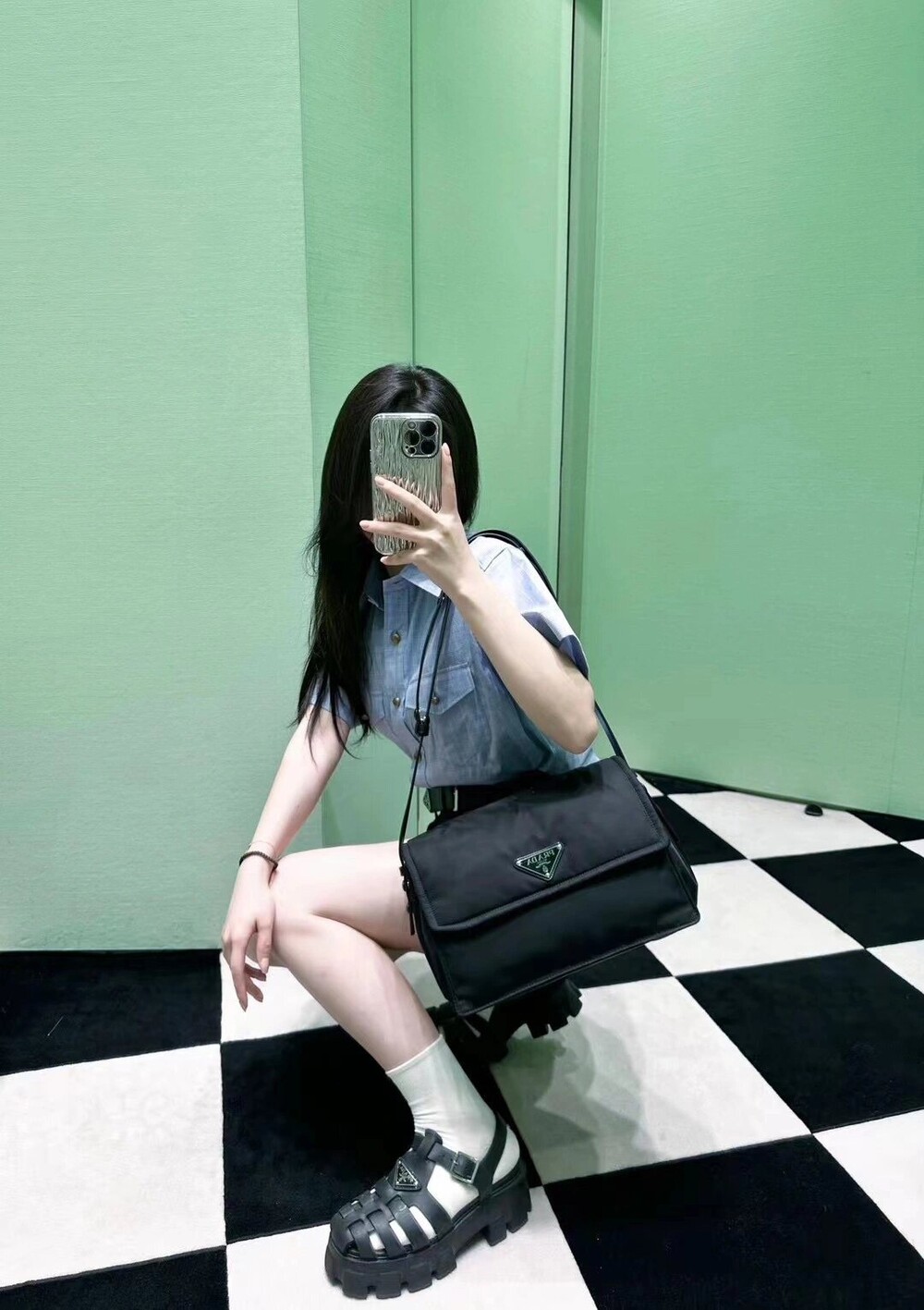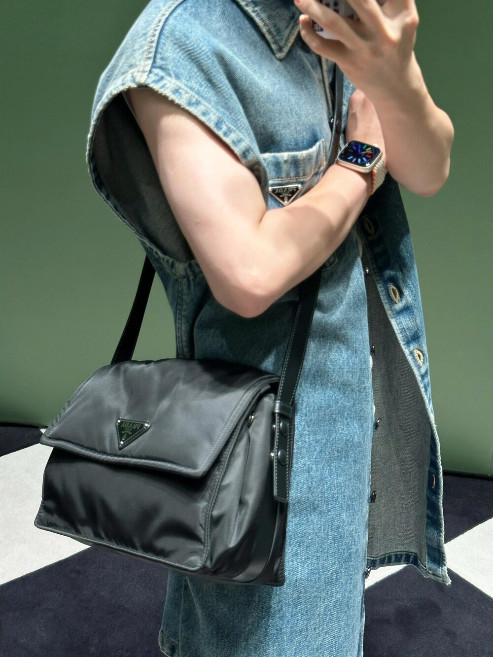 𝐏𝐫𝐚𝐝𝐚 나일론 𝐂𝐢𝐧𝐢 메신저 백 미디엄