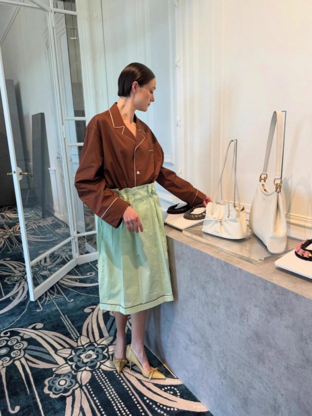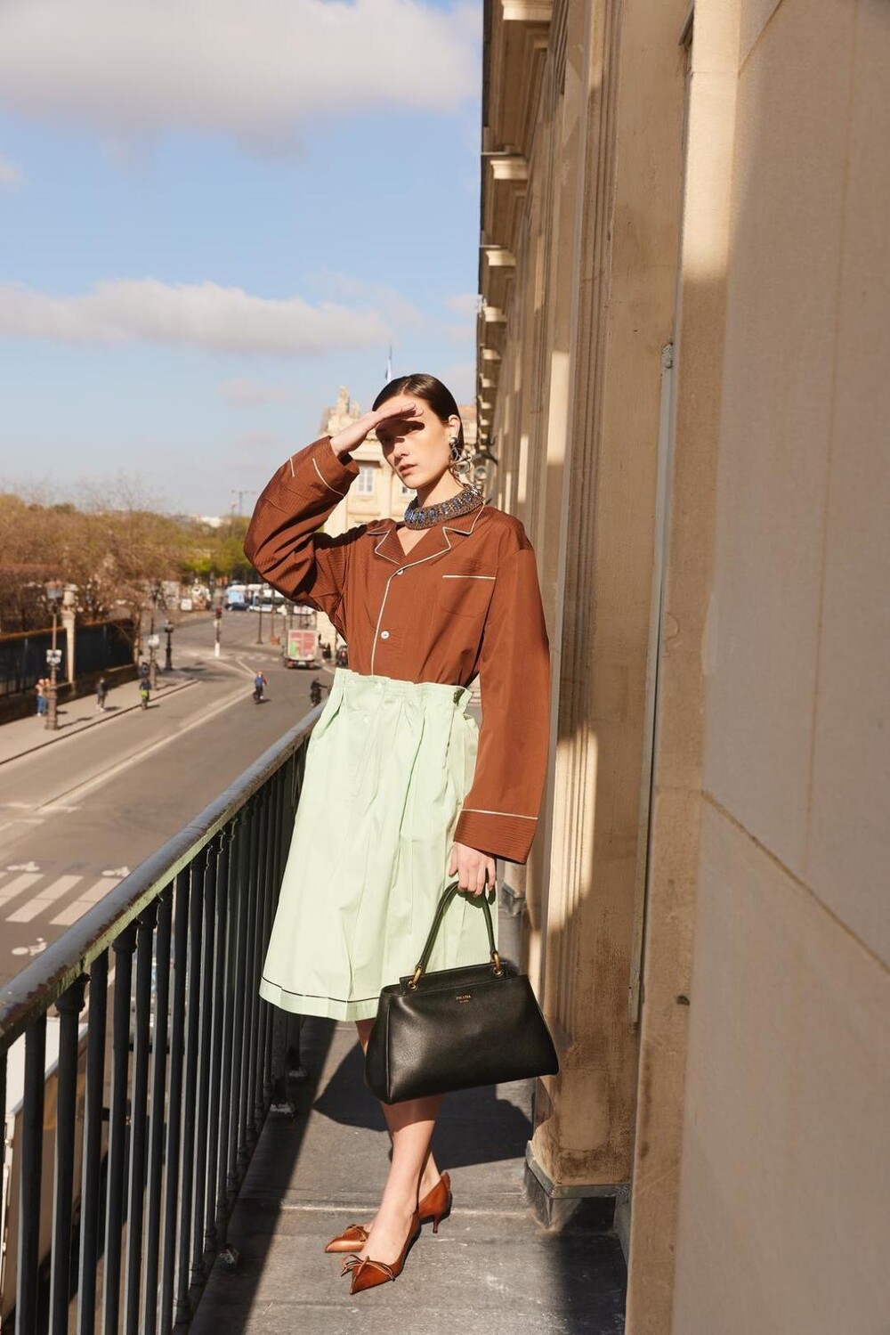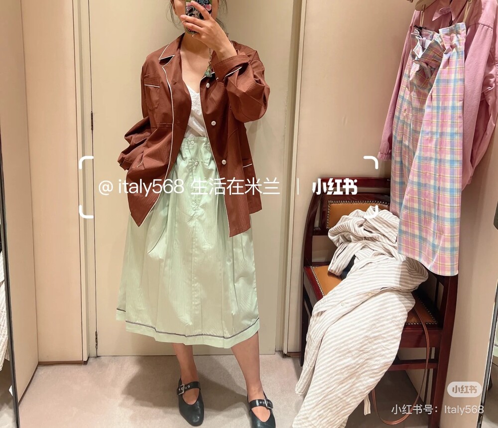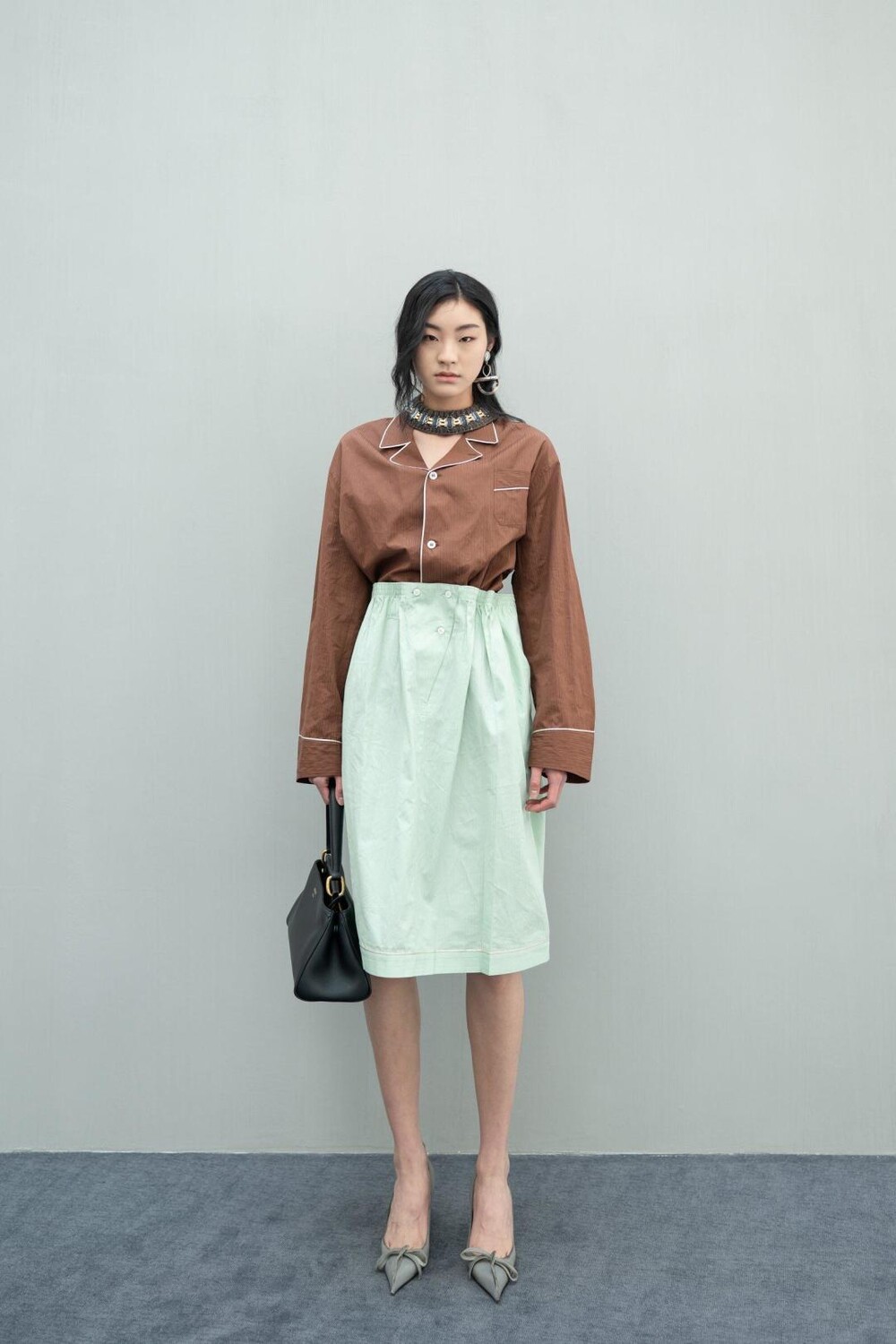 A라인 스커트는 허리부터 자연스럽게 퍼지며