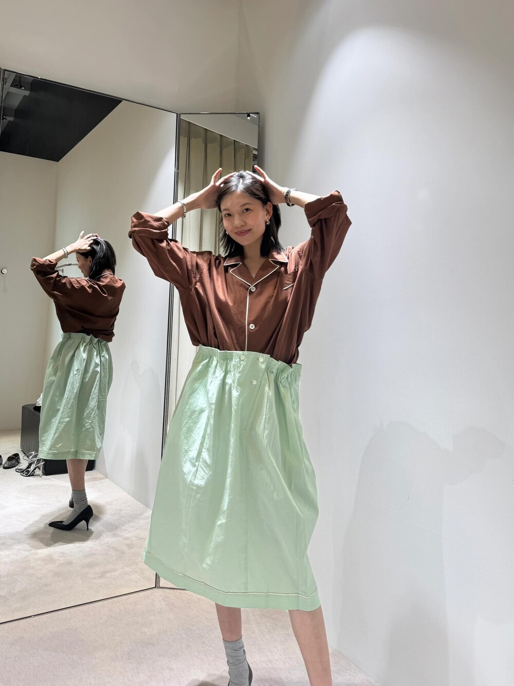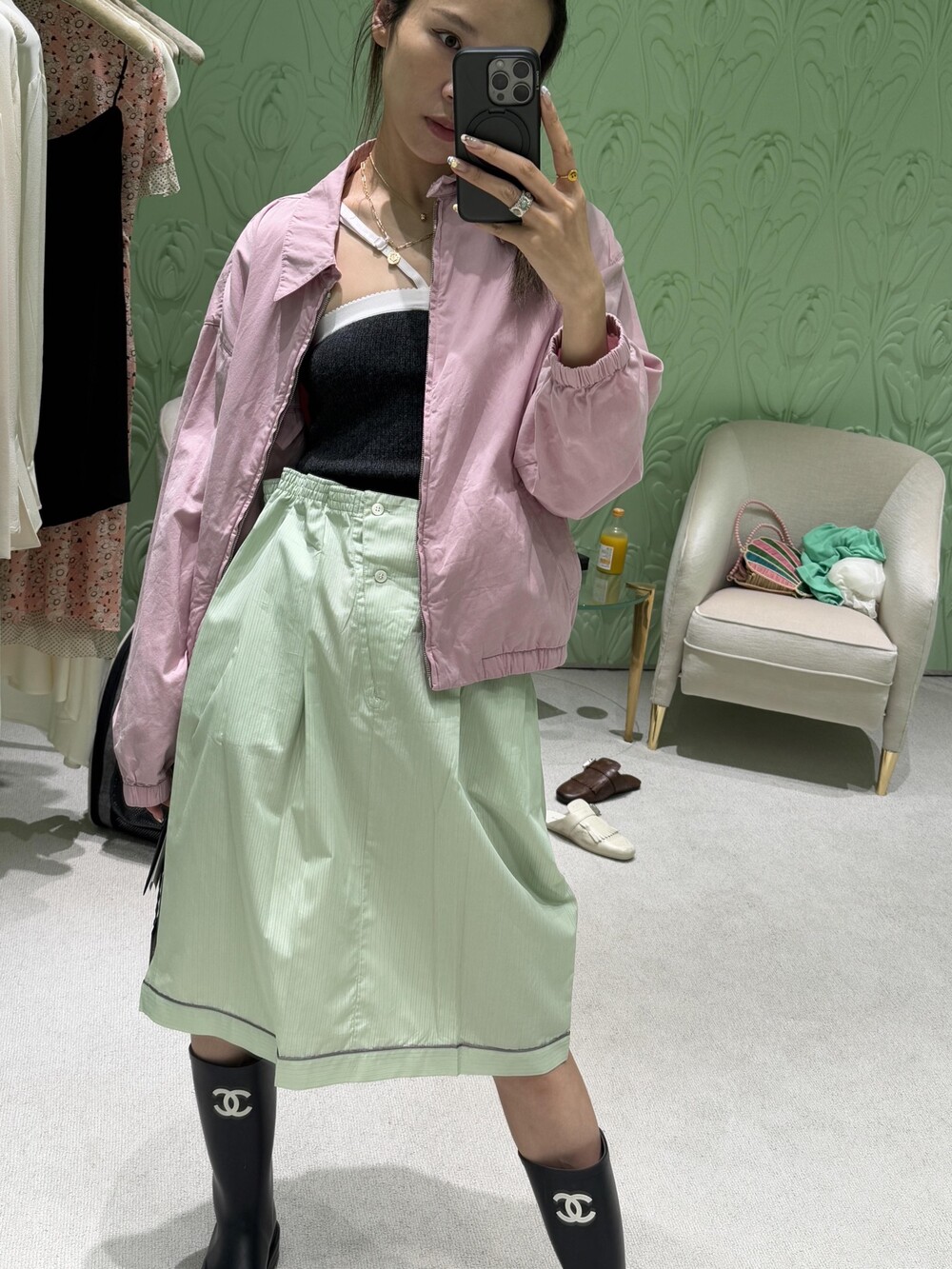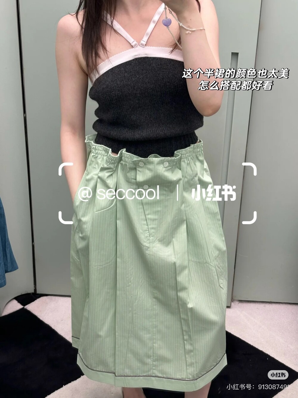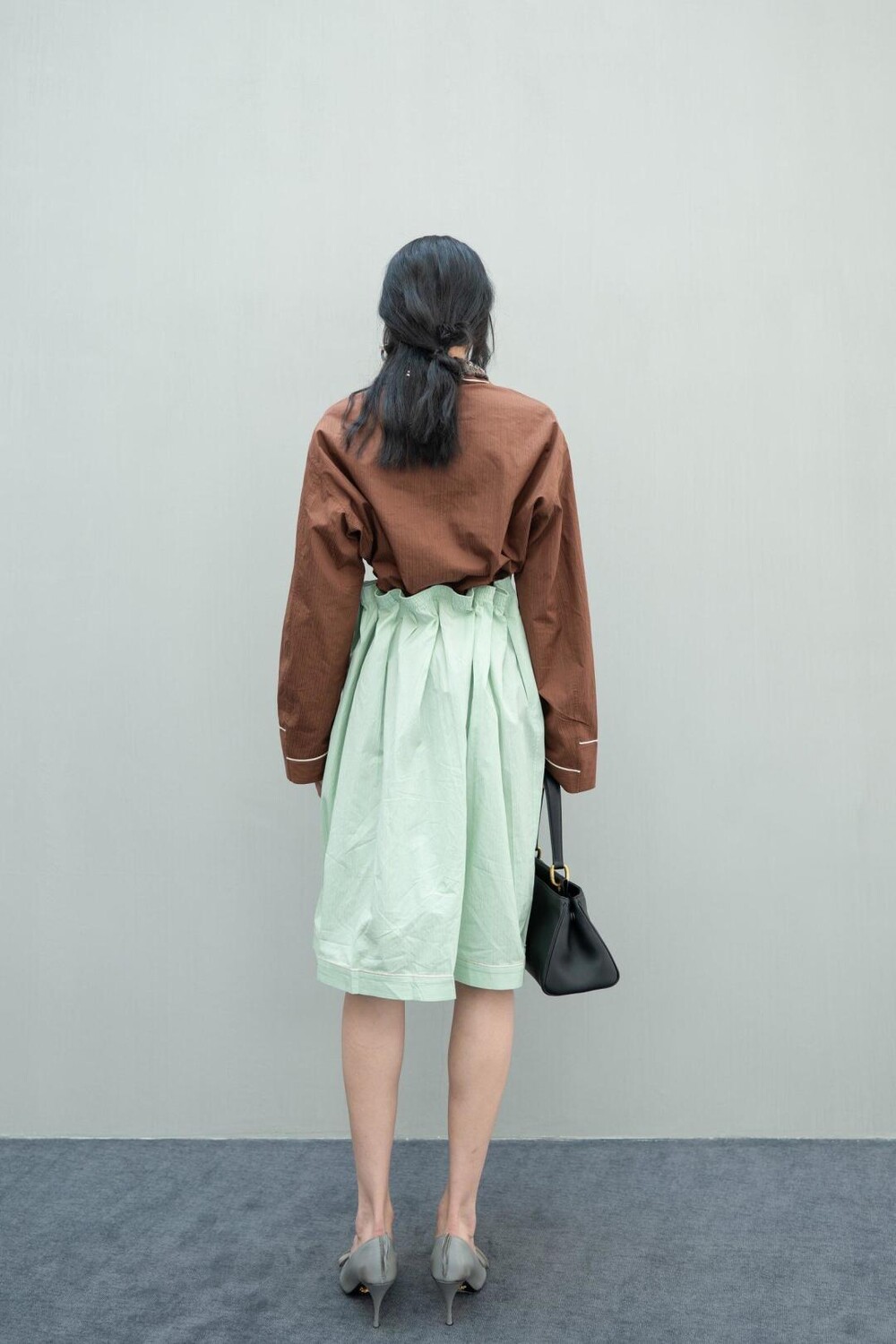 민트 그린 쇼 스타일 플리츠 미디 스커트