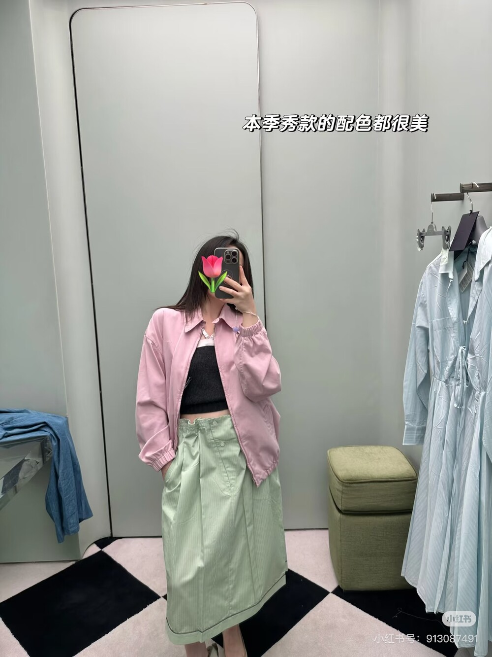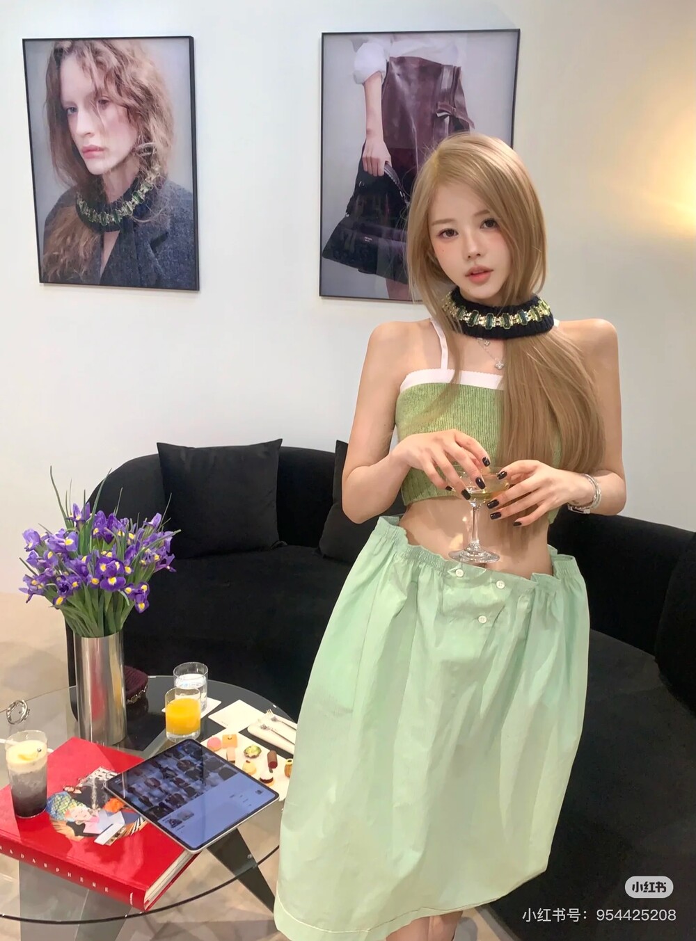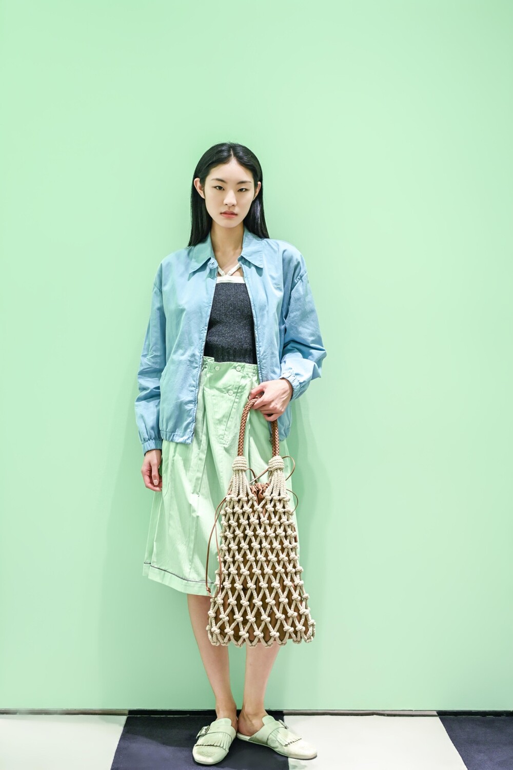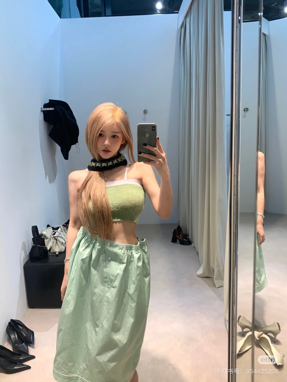 민트 그린 쇼 스타일 플리츠 미디 스커트