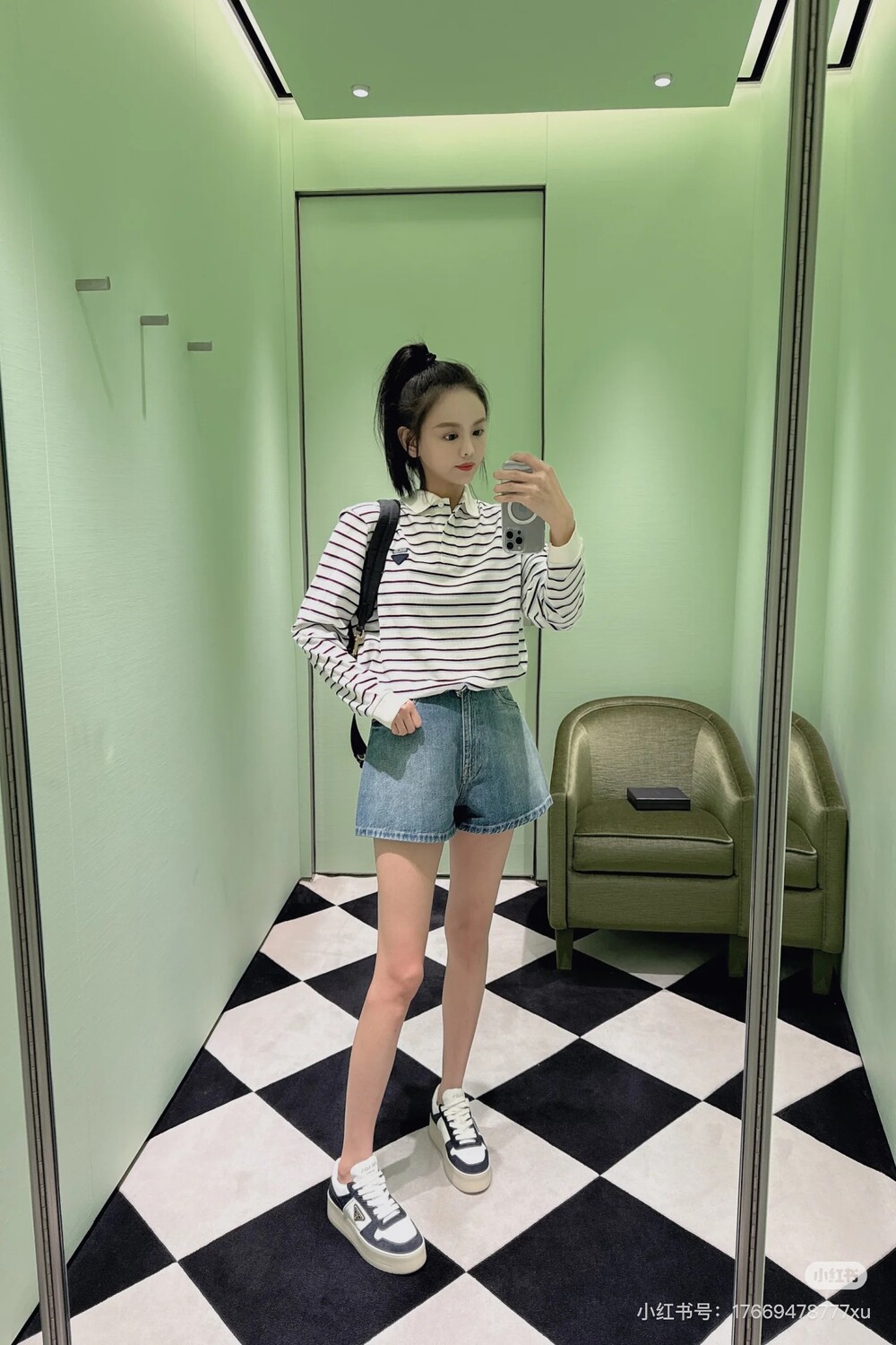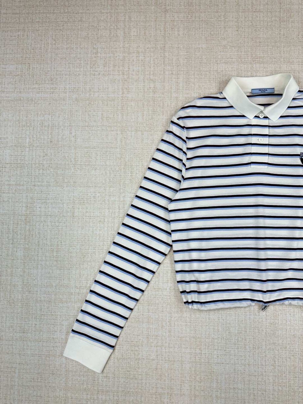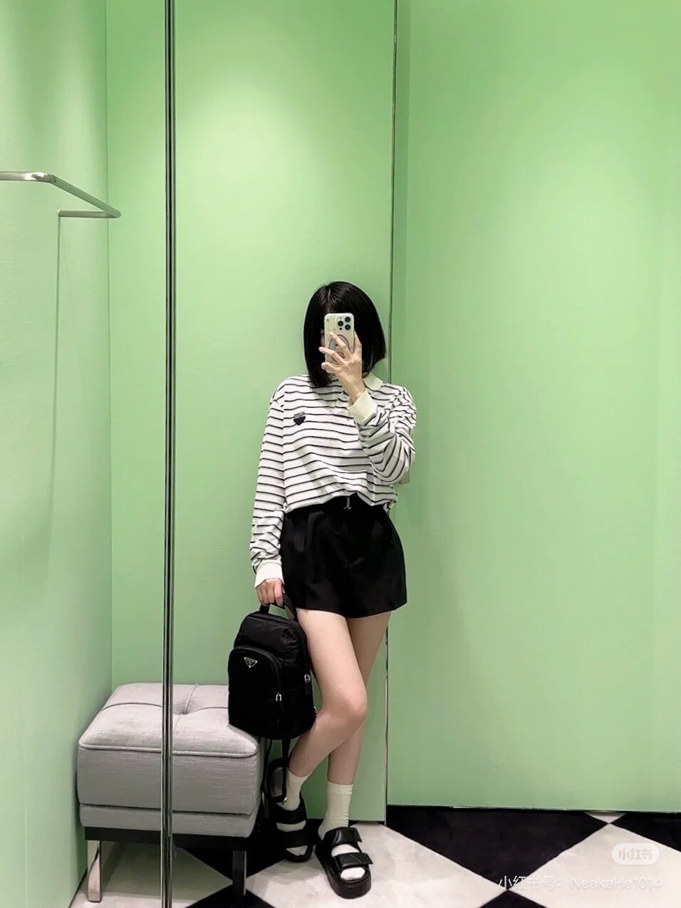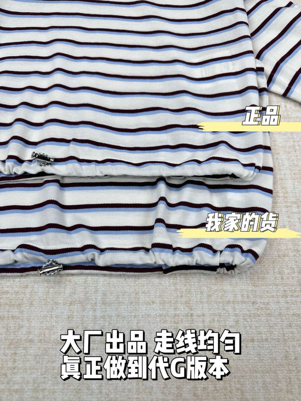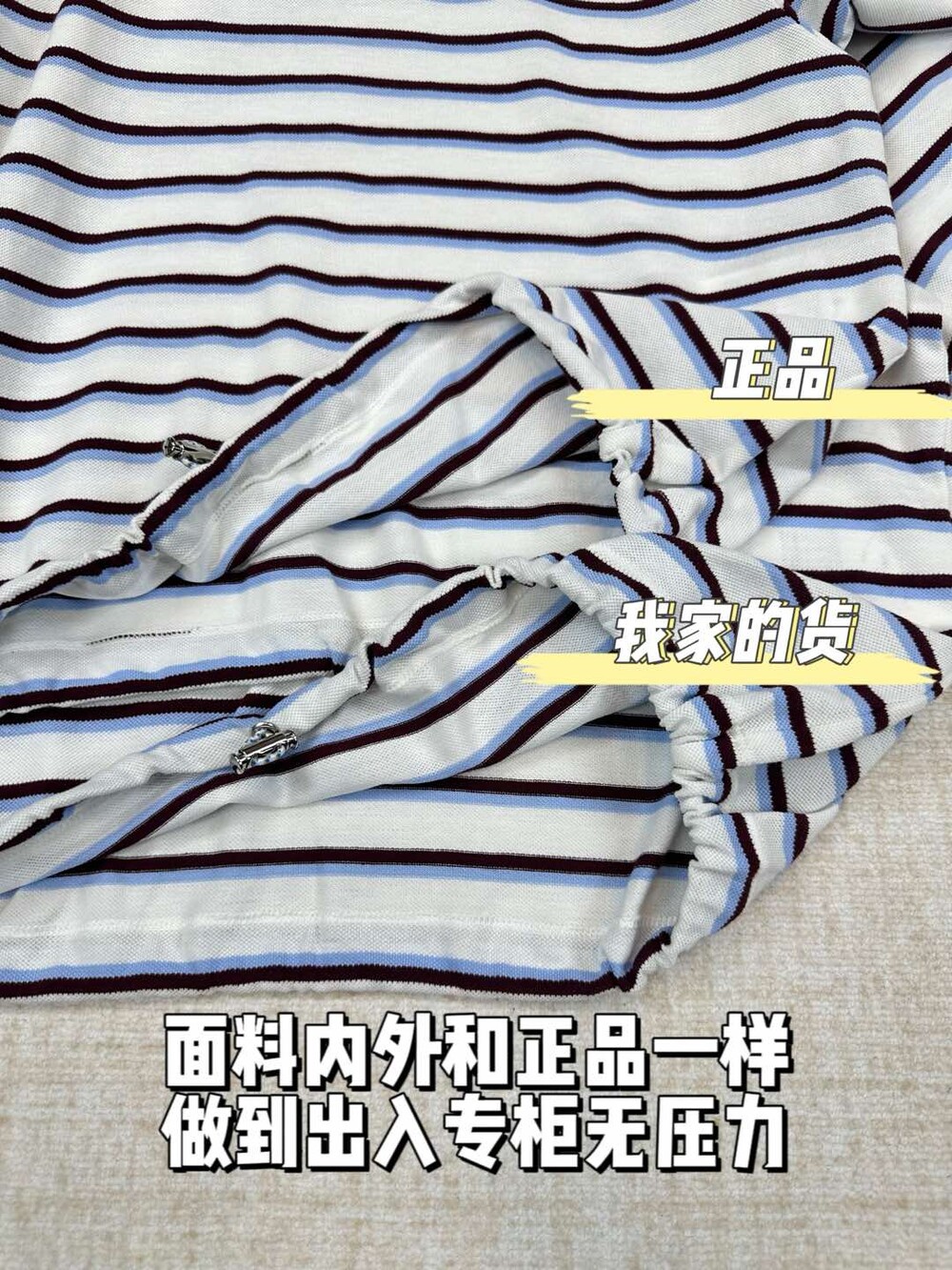 전면 스트라이프는 상큼한 네이비 블루 색상에서