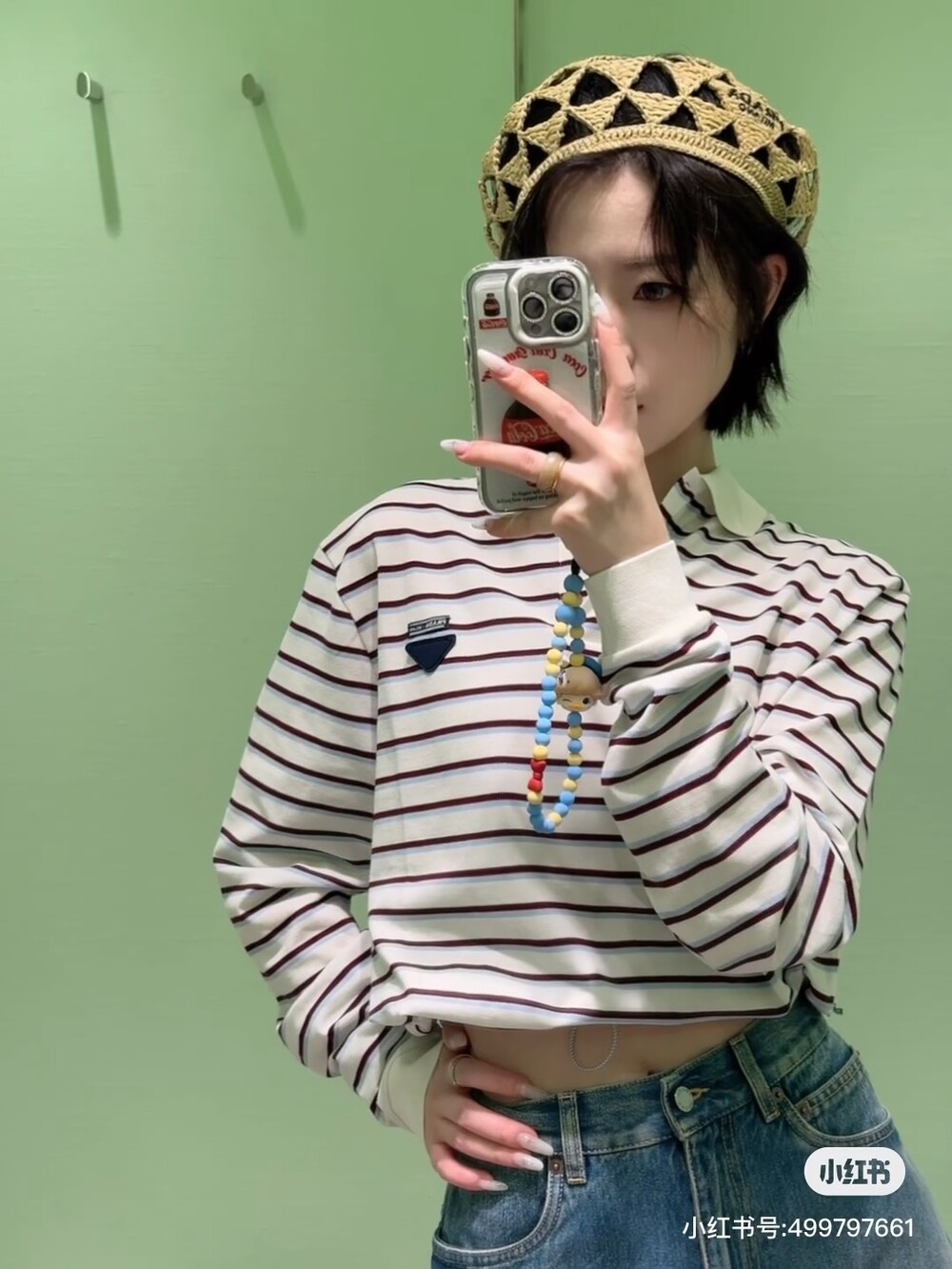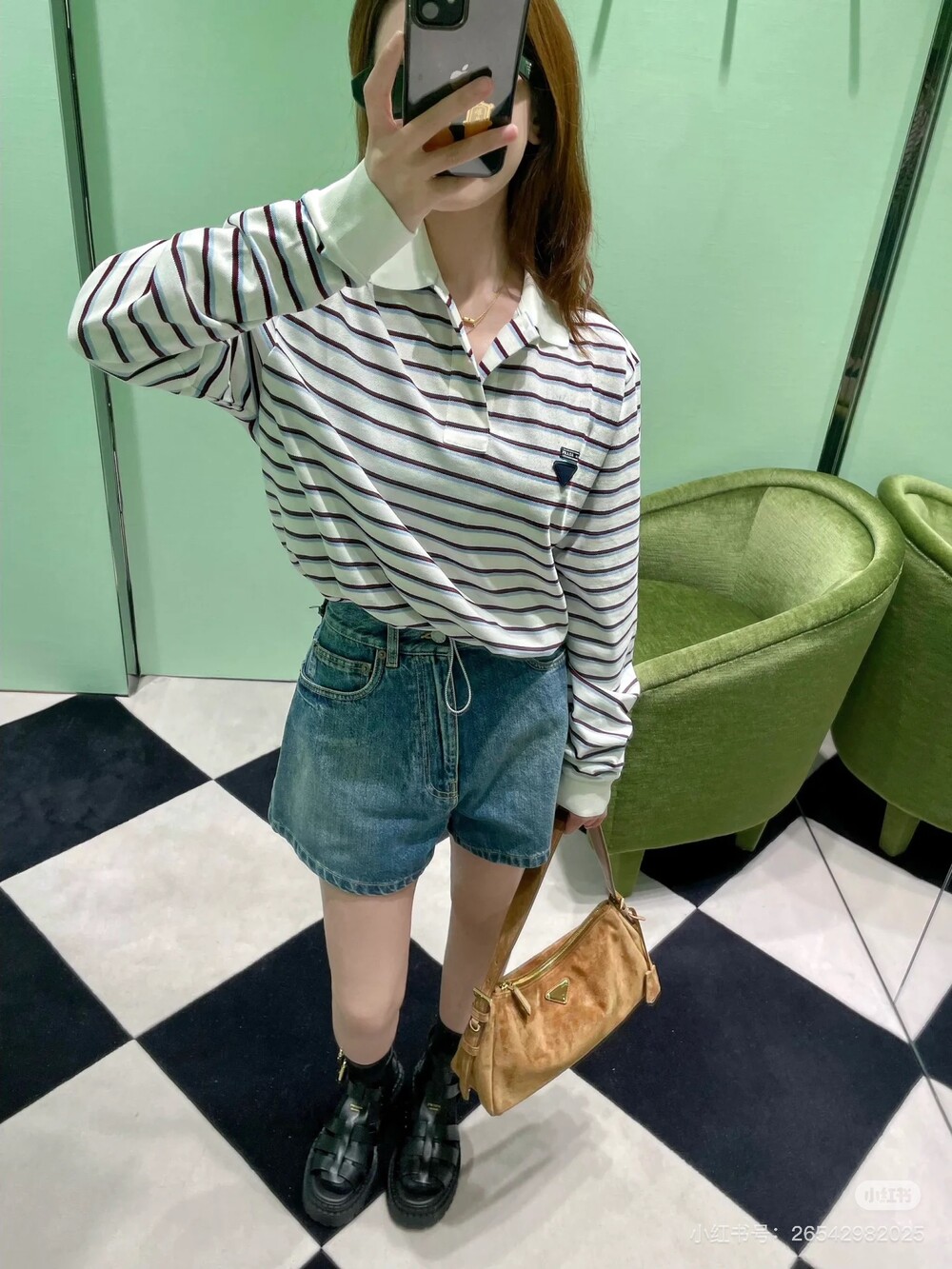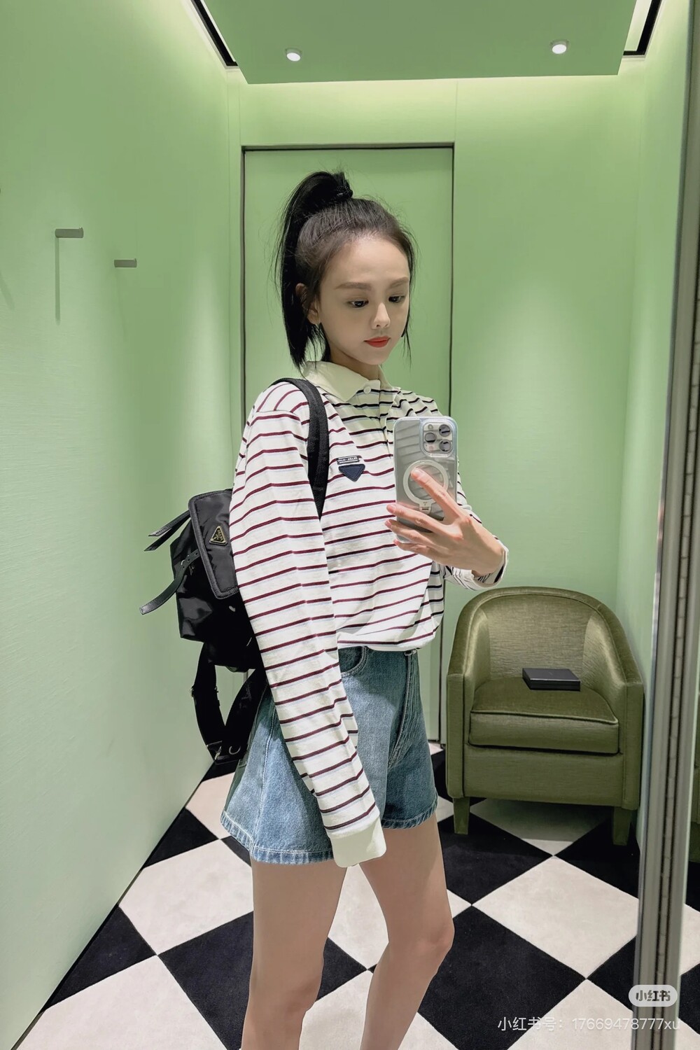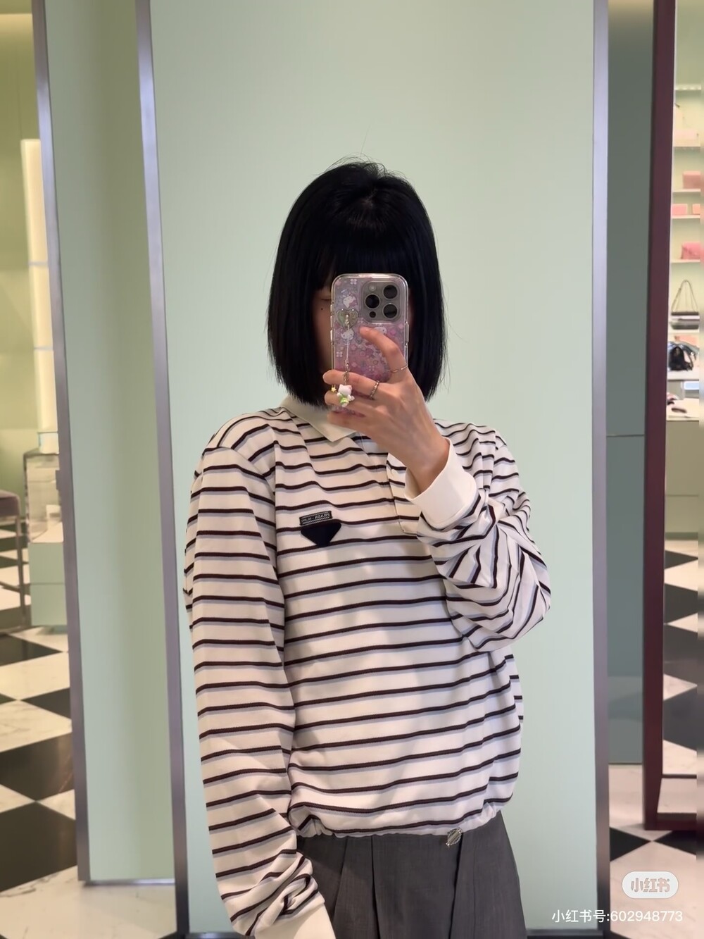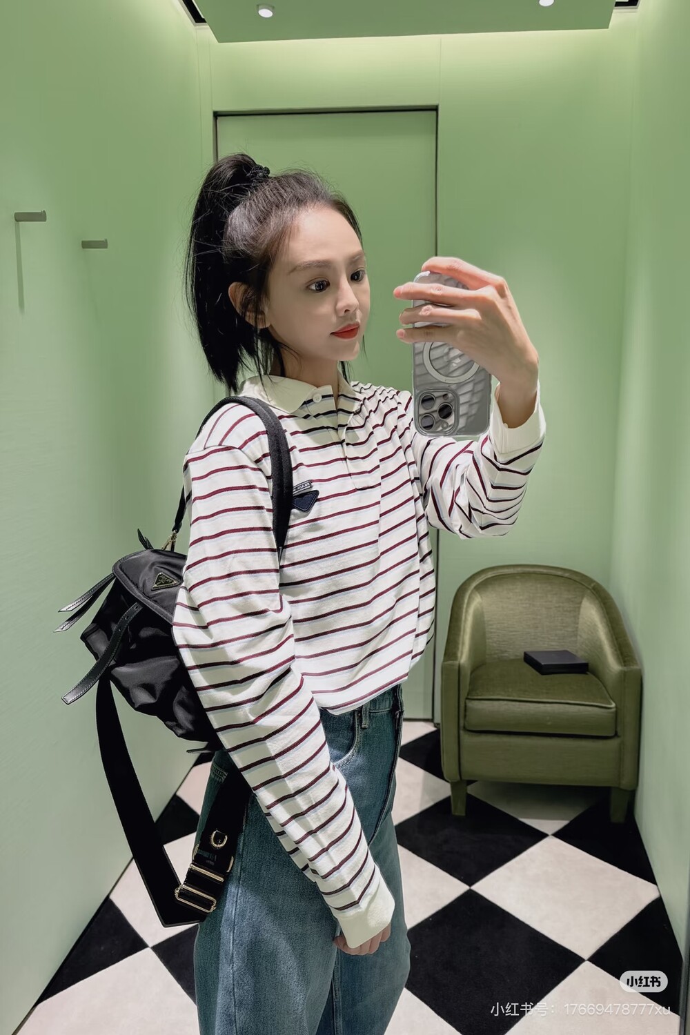 전면 스트라이프는 상큼한 네이비 블루 색상에서
