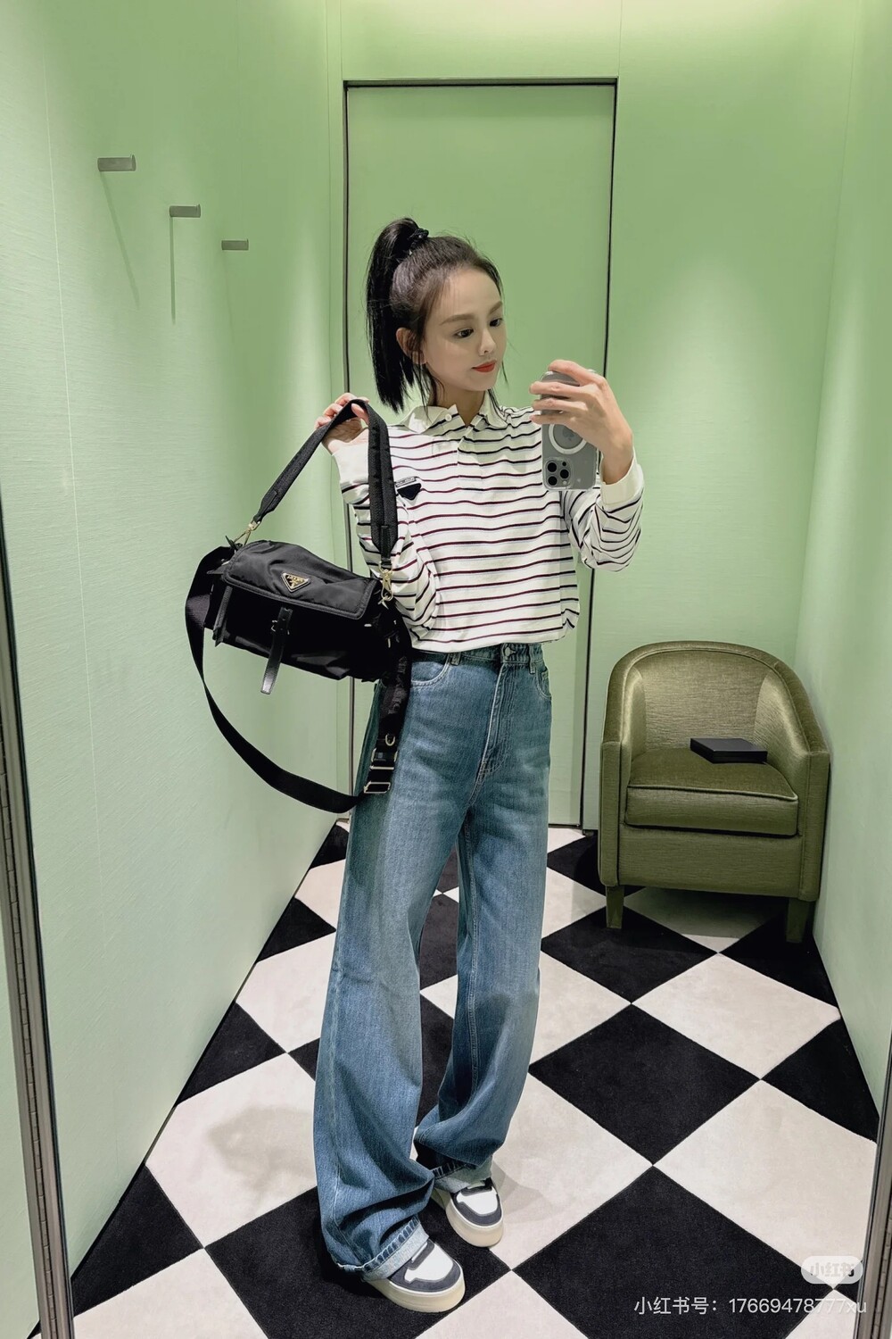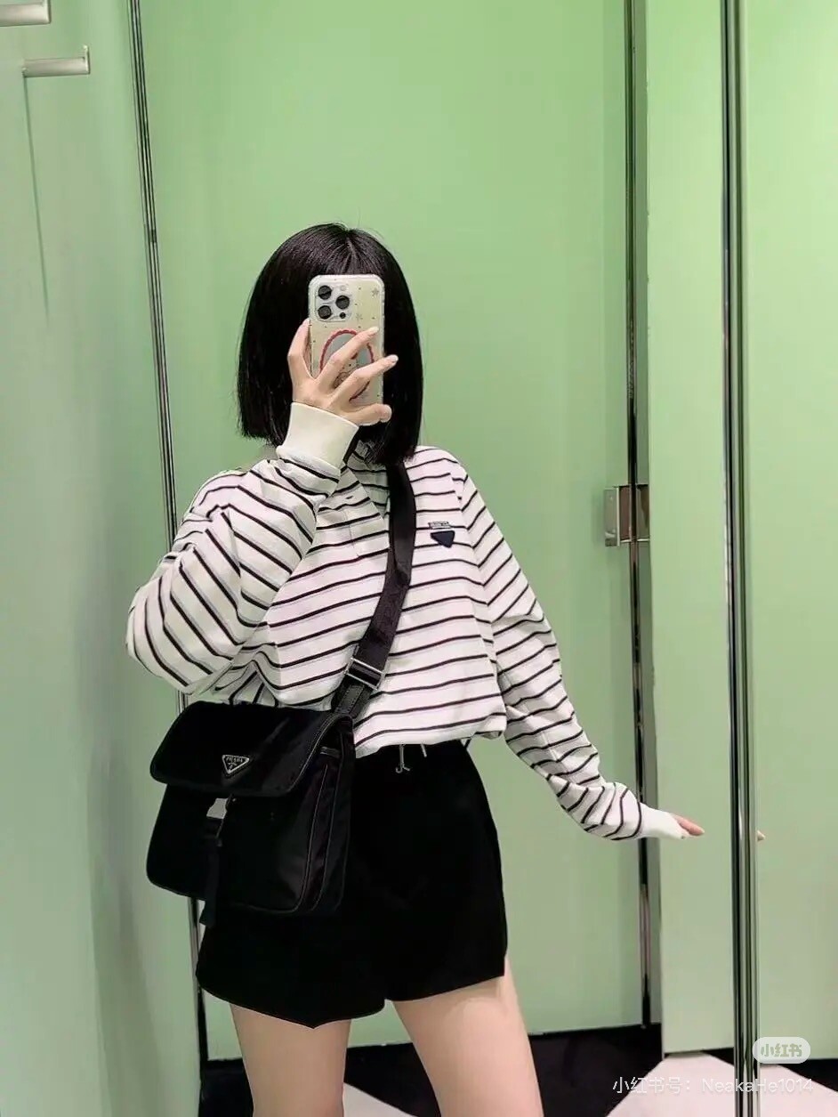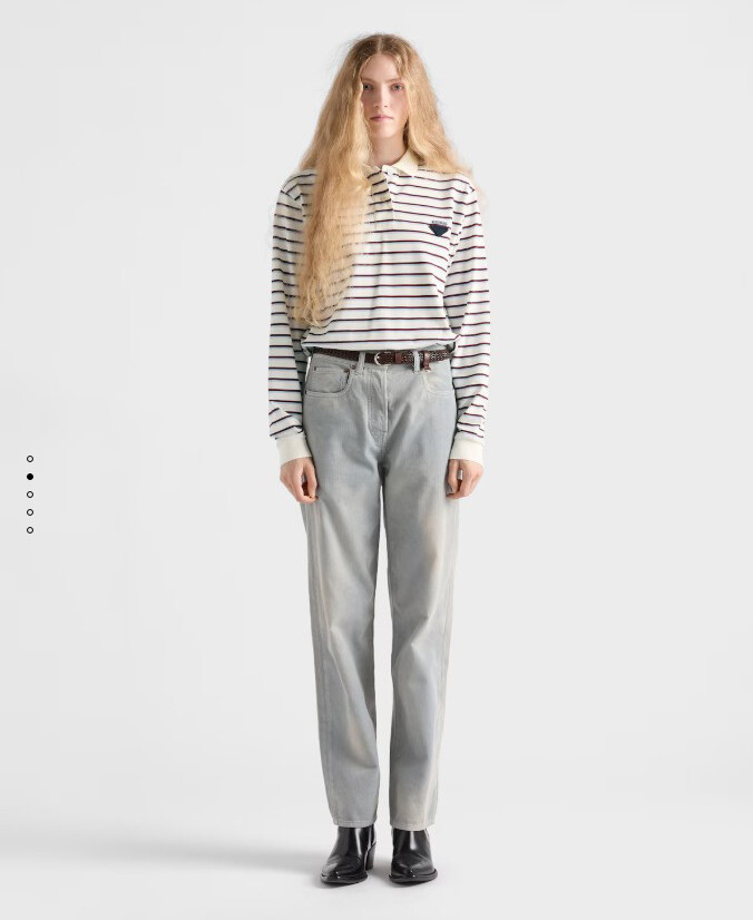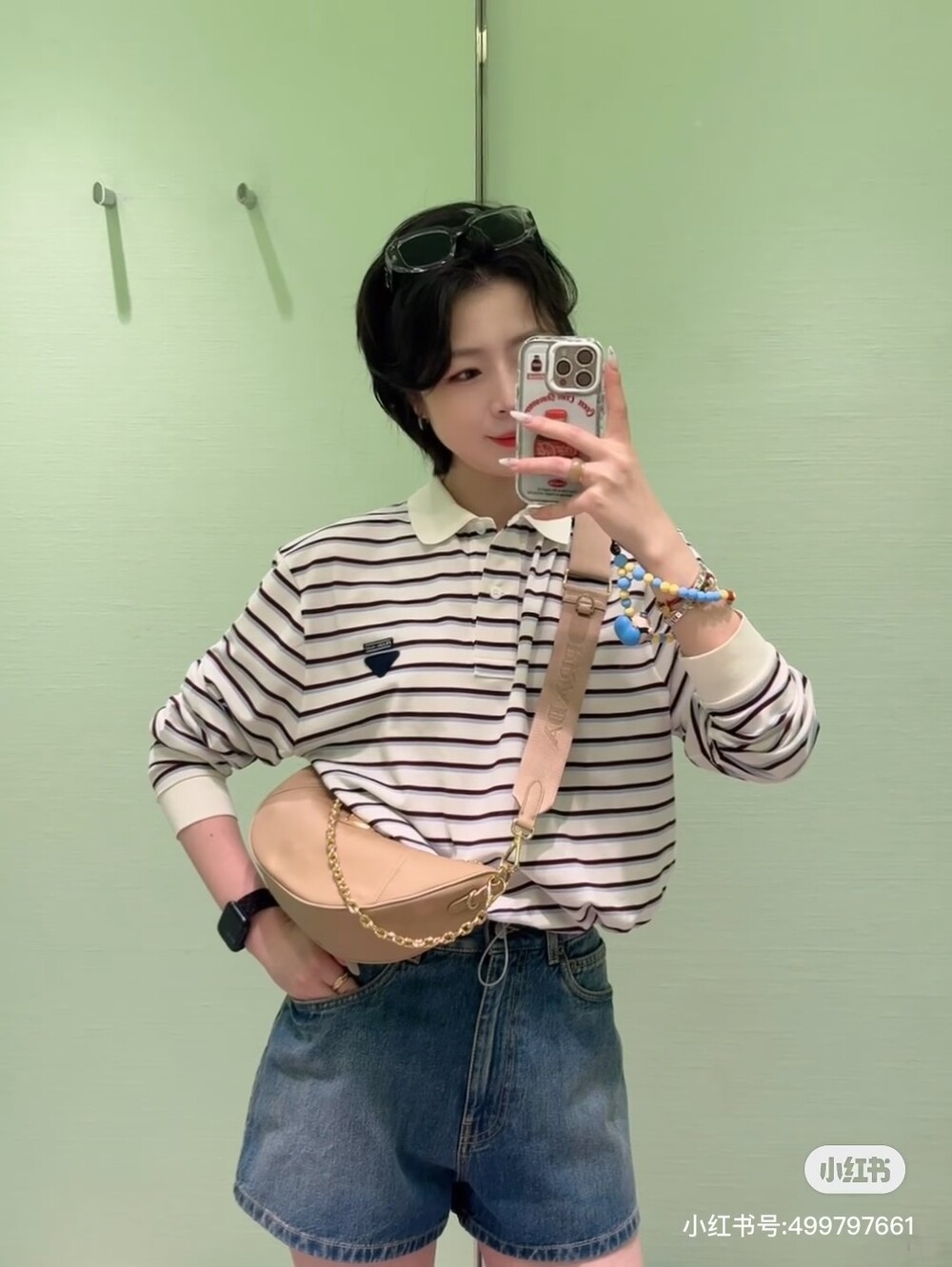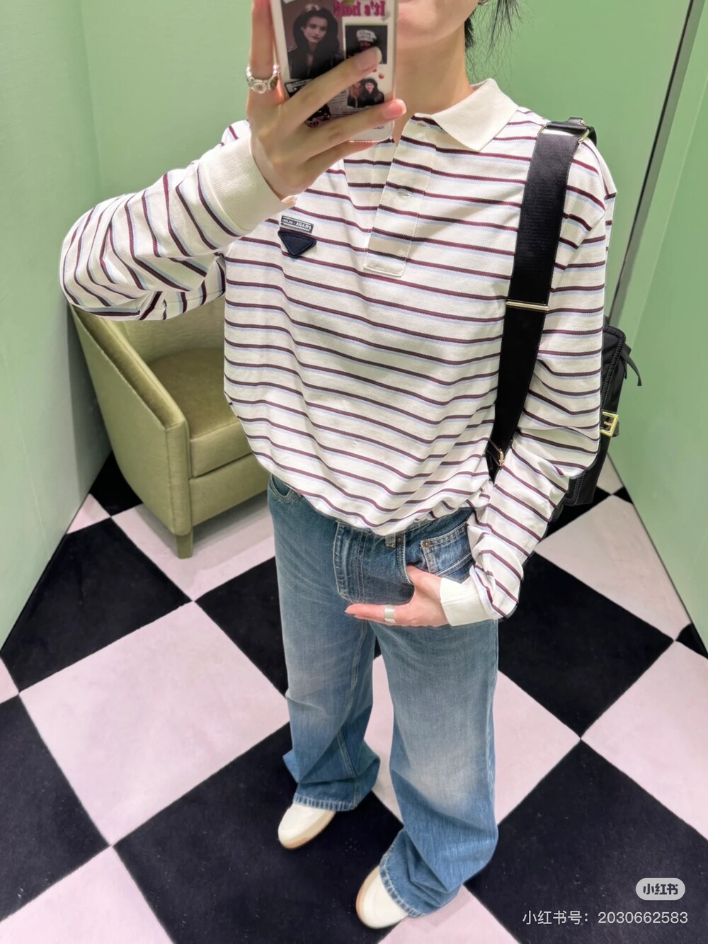 전면 스트라이프는 상큼한 네이비 블루 색상에서