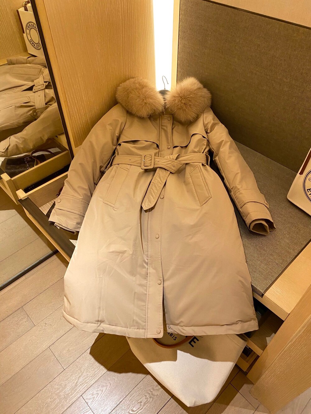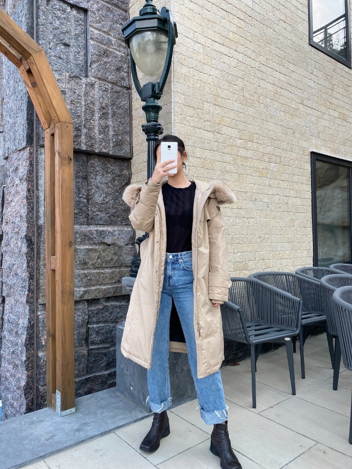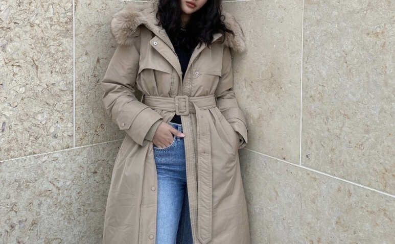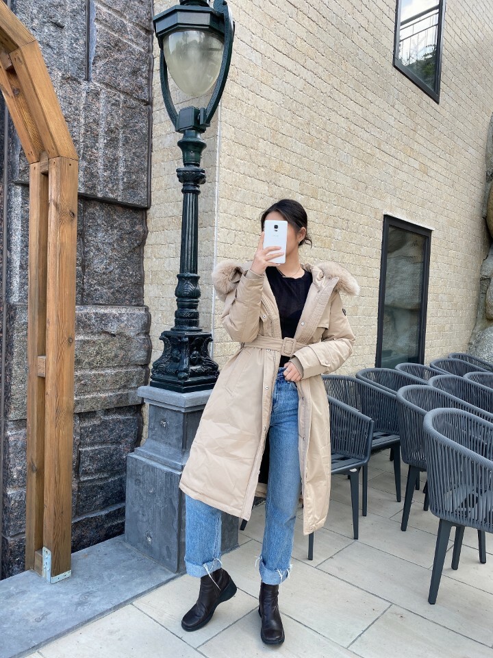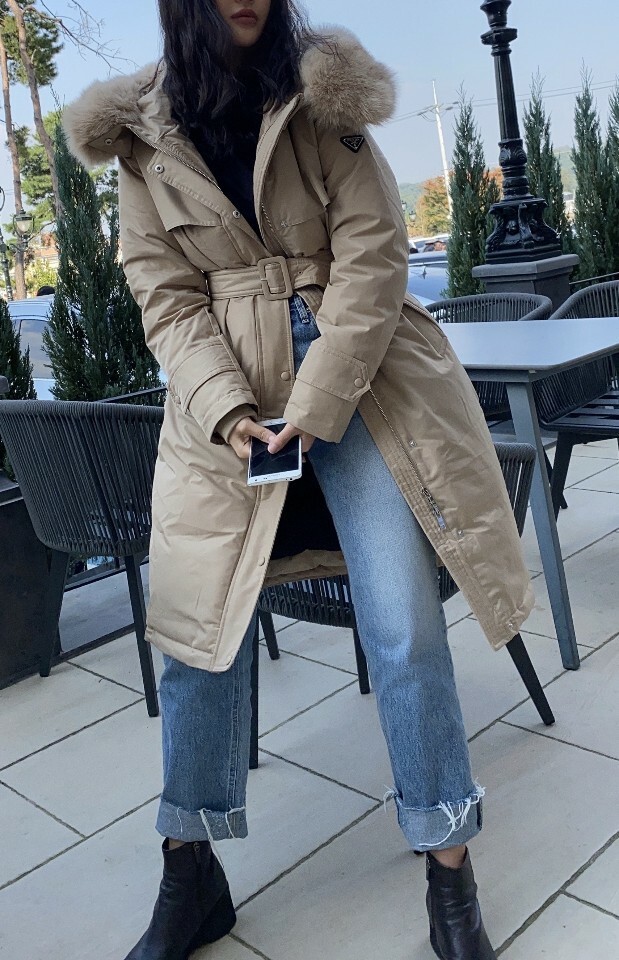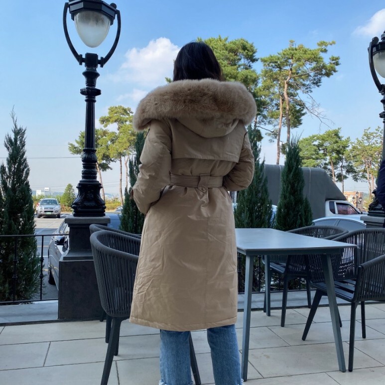 □폭스퍼 후드 트렌치 코트 롱패딩□
