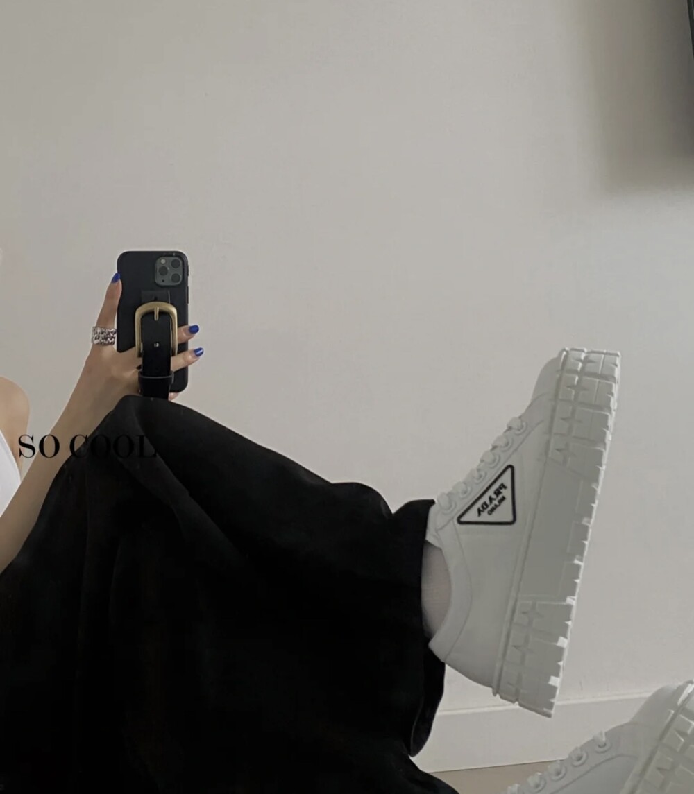 갑피에는 삼각형 로고가 장식되어 있으며,