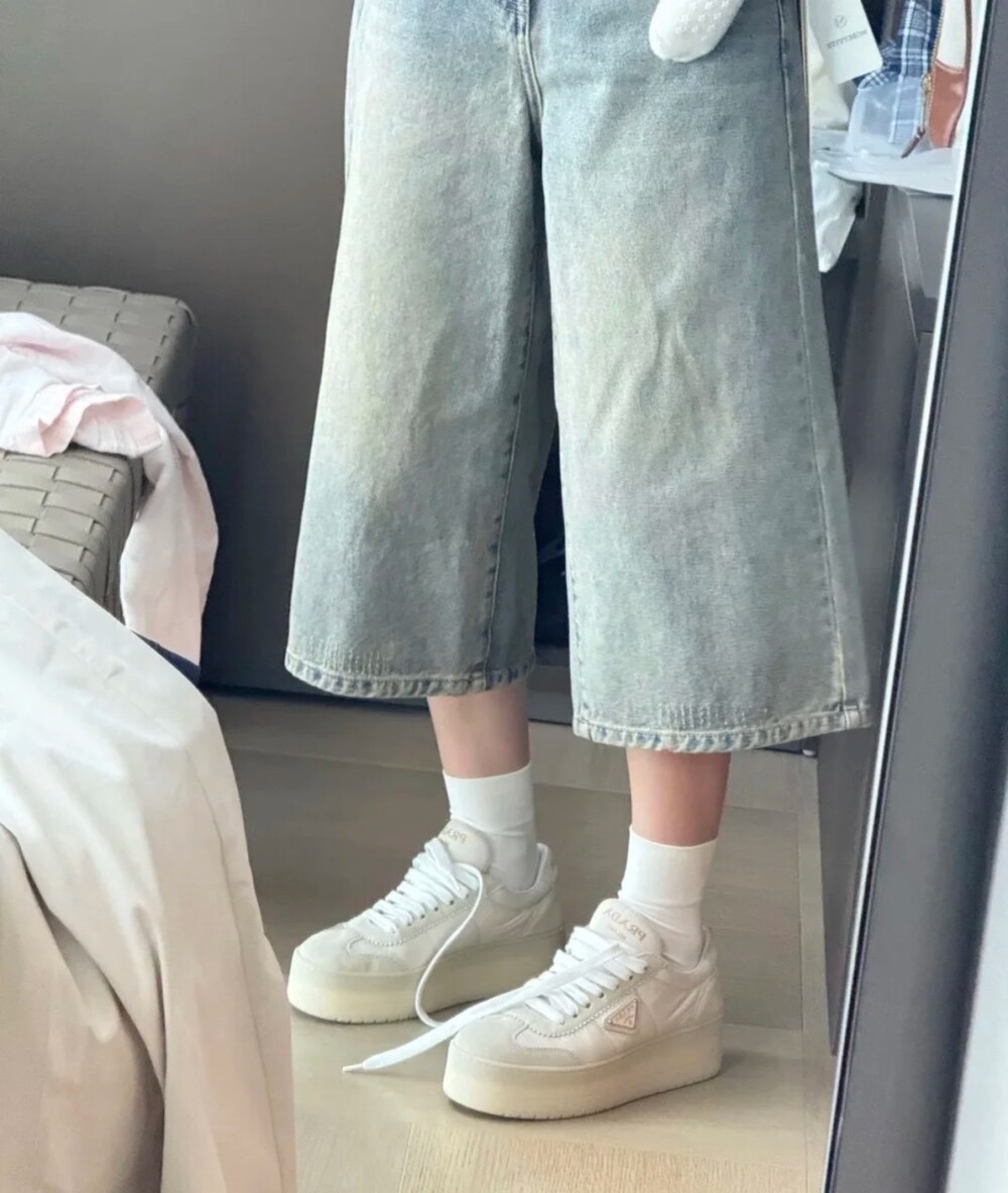재생 나일론과 스웨이드 가죽 플랫폼,