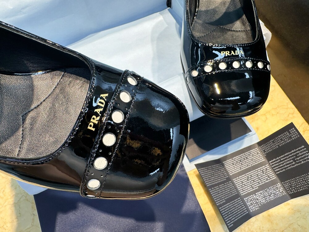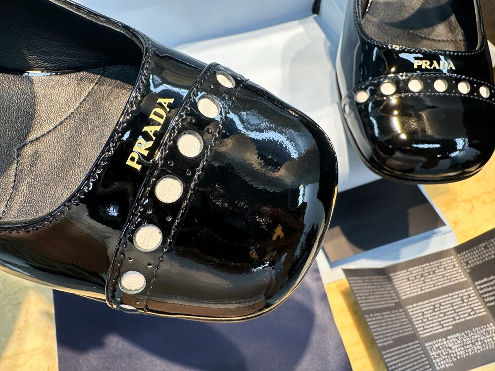 페이턴트 가죽 소재의 이 슈즈는