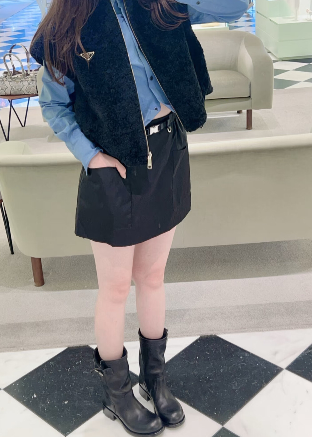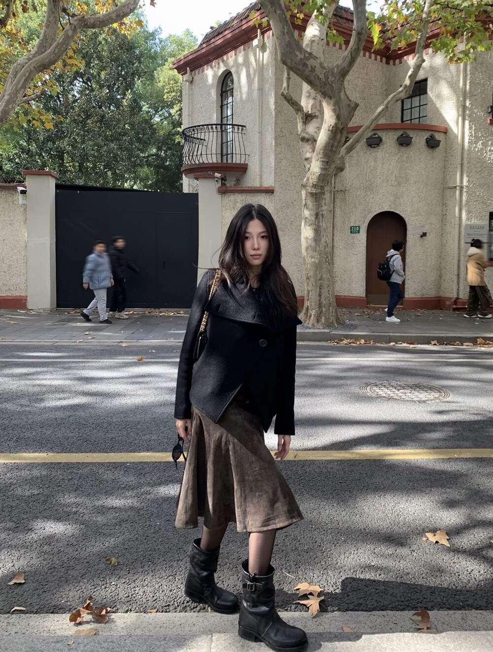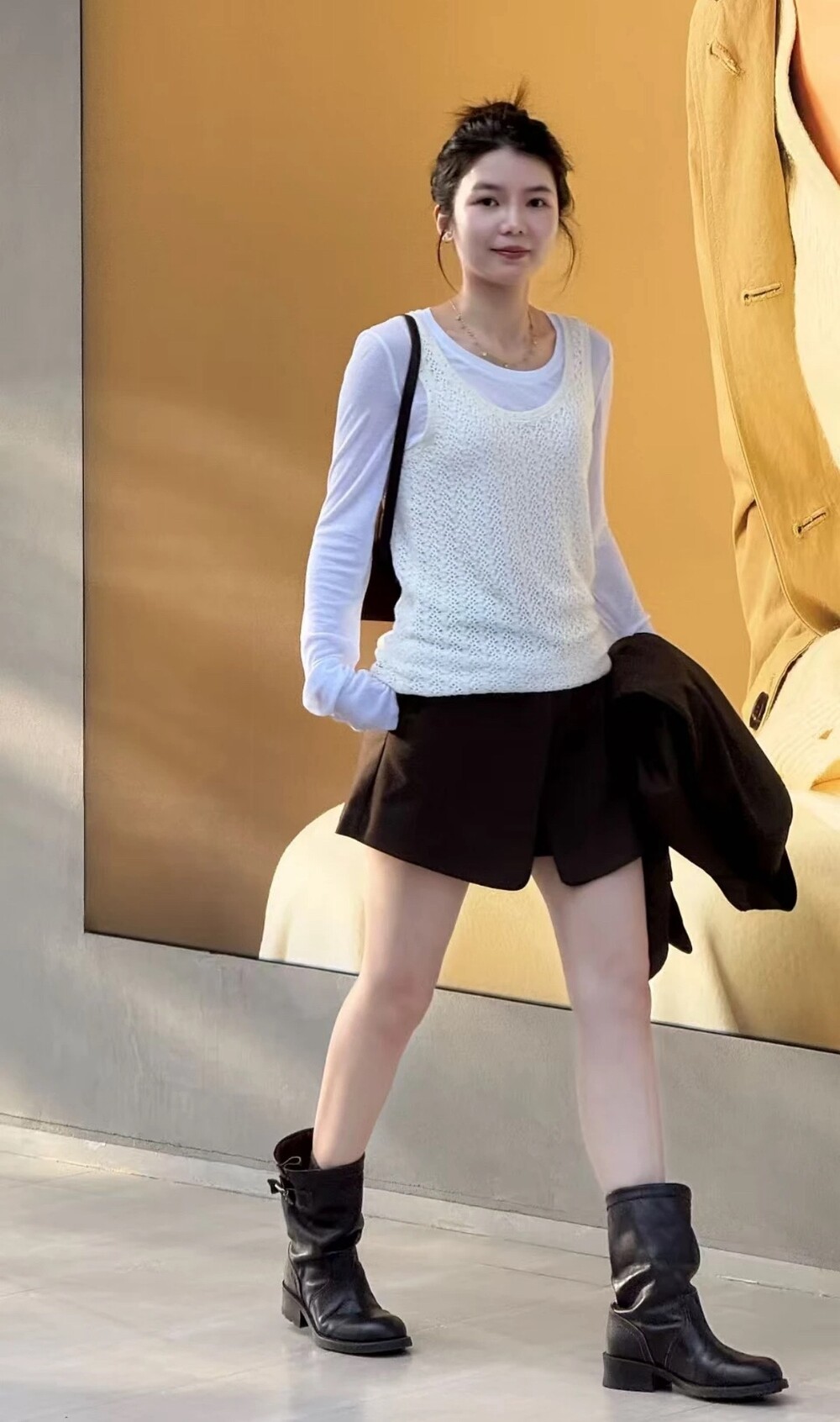 자연스럽게 쌓인 부츠 샤프트는