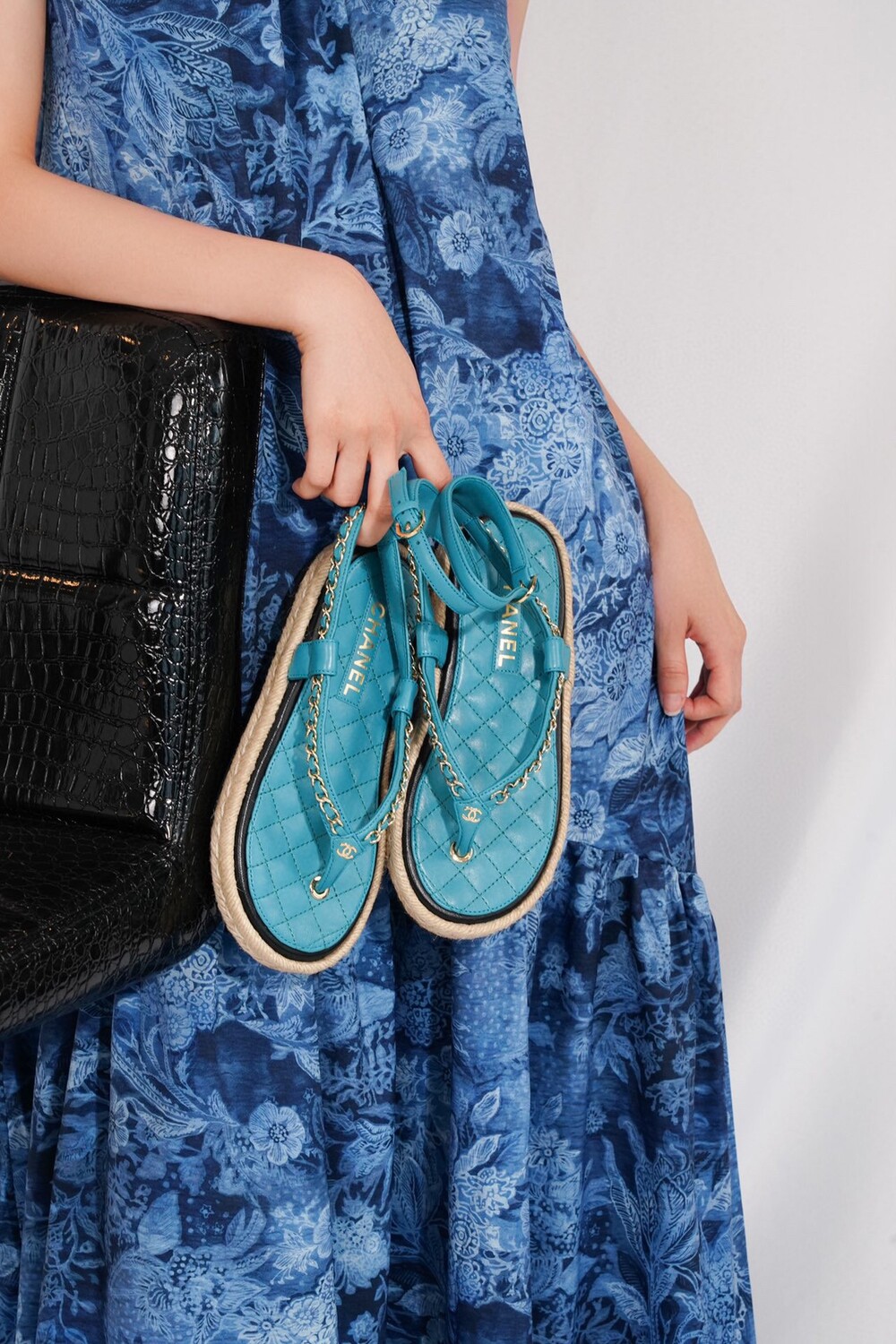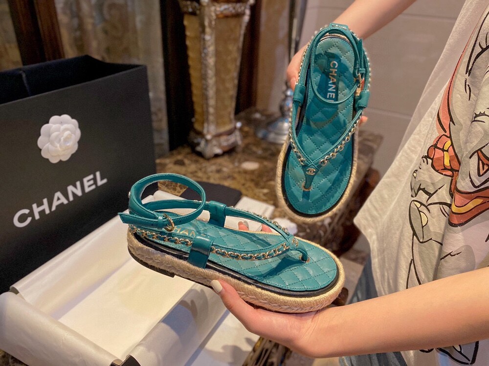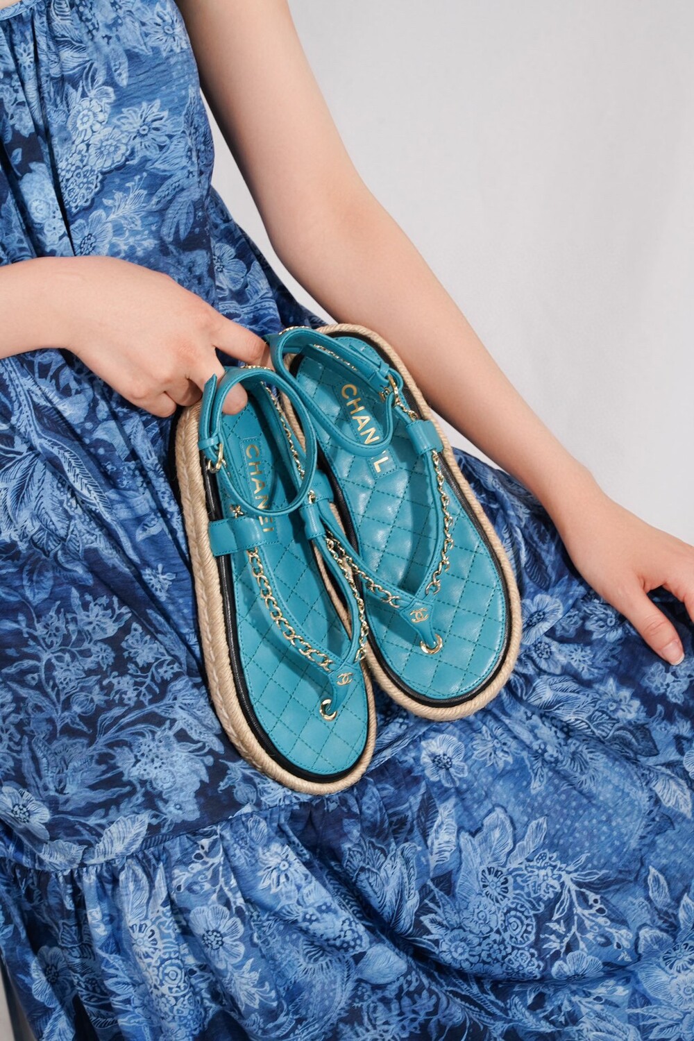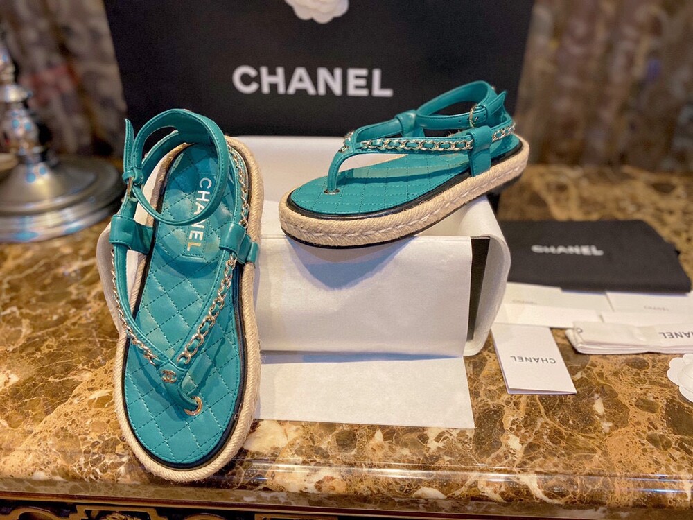 𝗖.𝗛𝗔𝗡𝗘𝗟 밀짚 체인 샌들