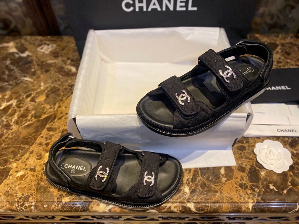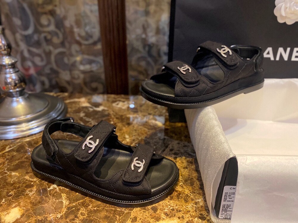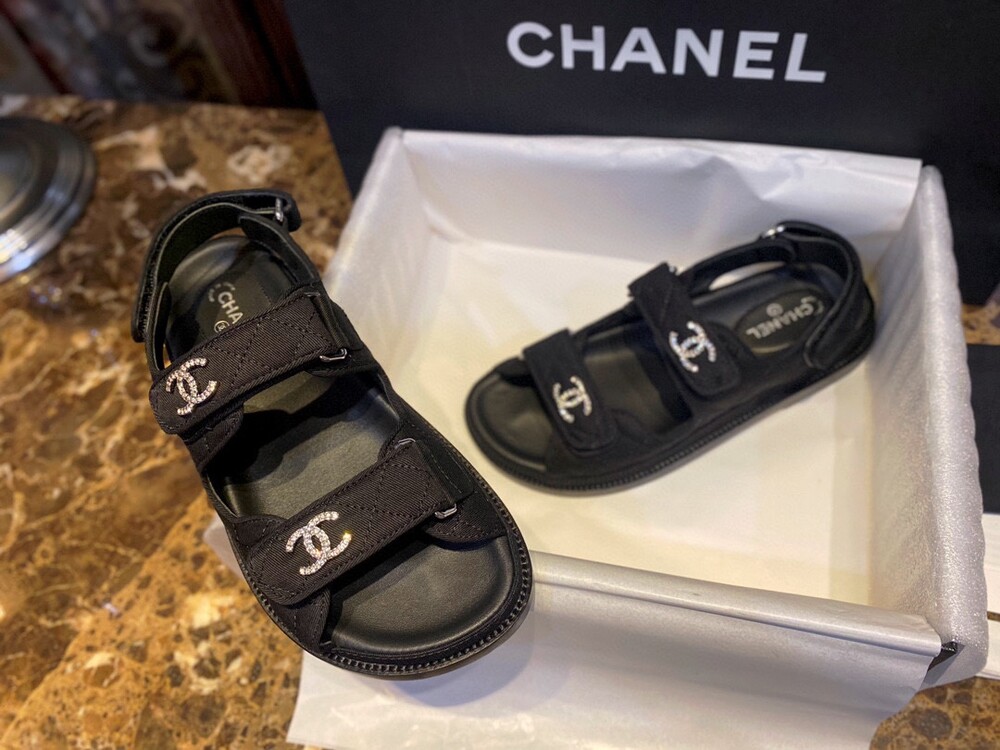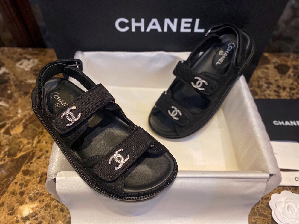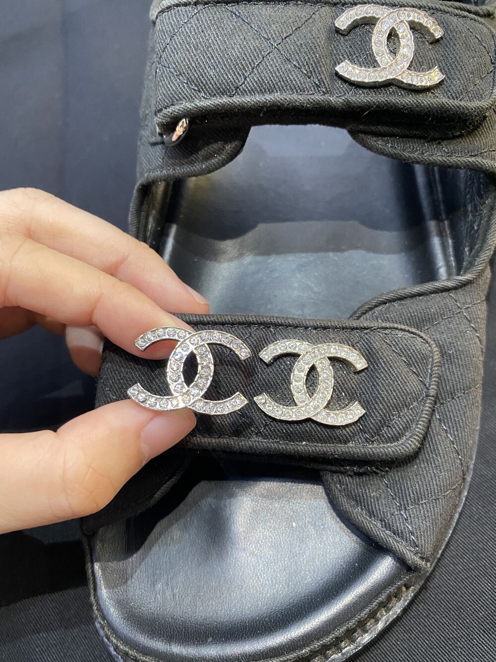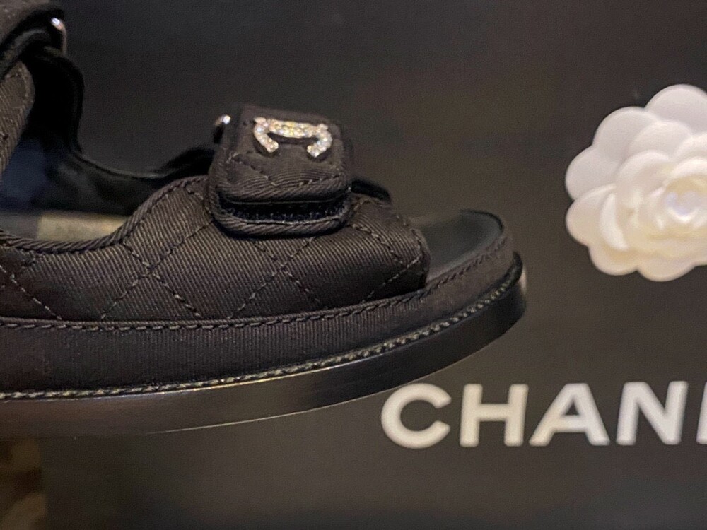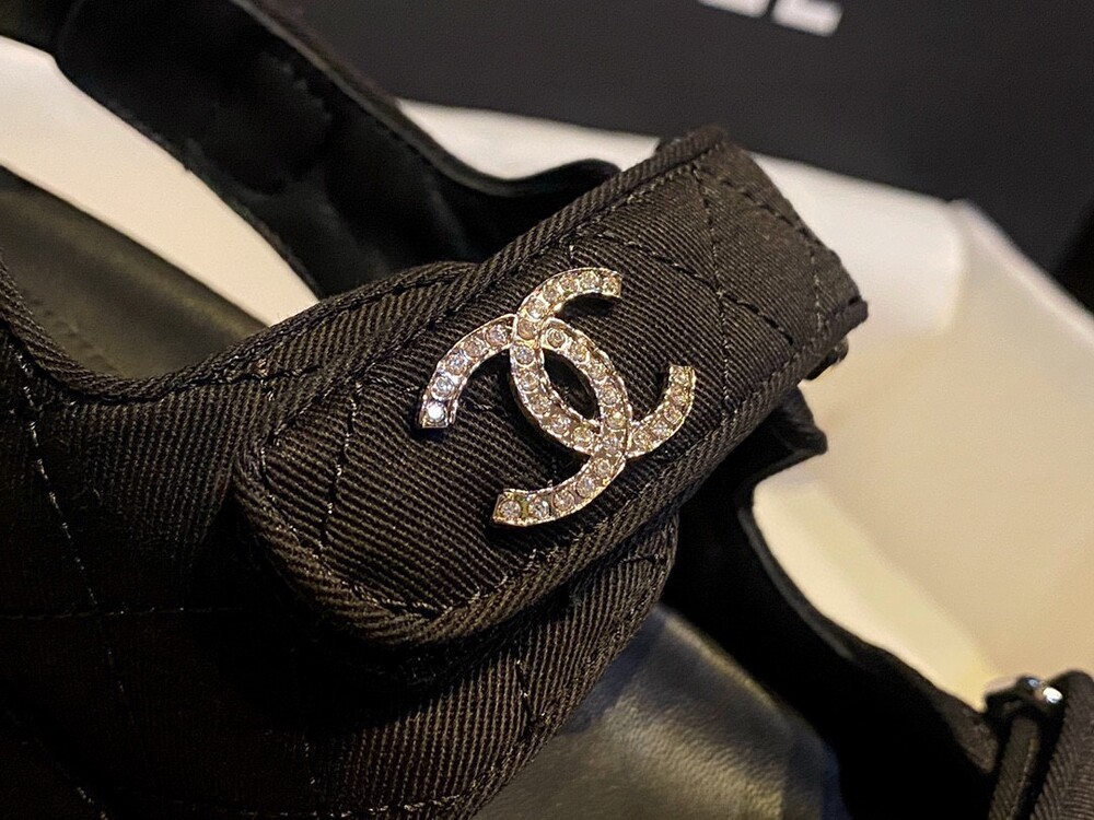 □크리스탈 CC 로고 벨크로 샌들□
