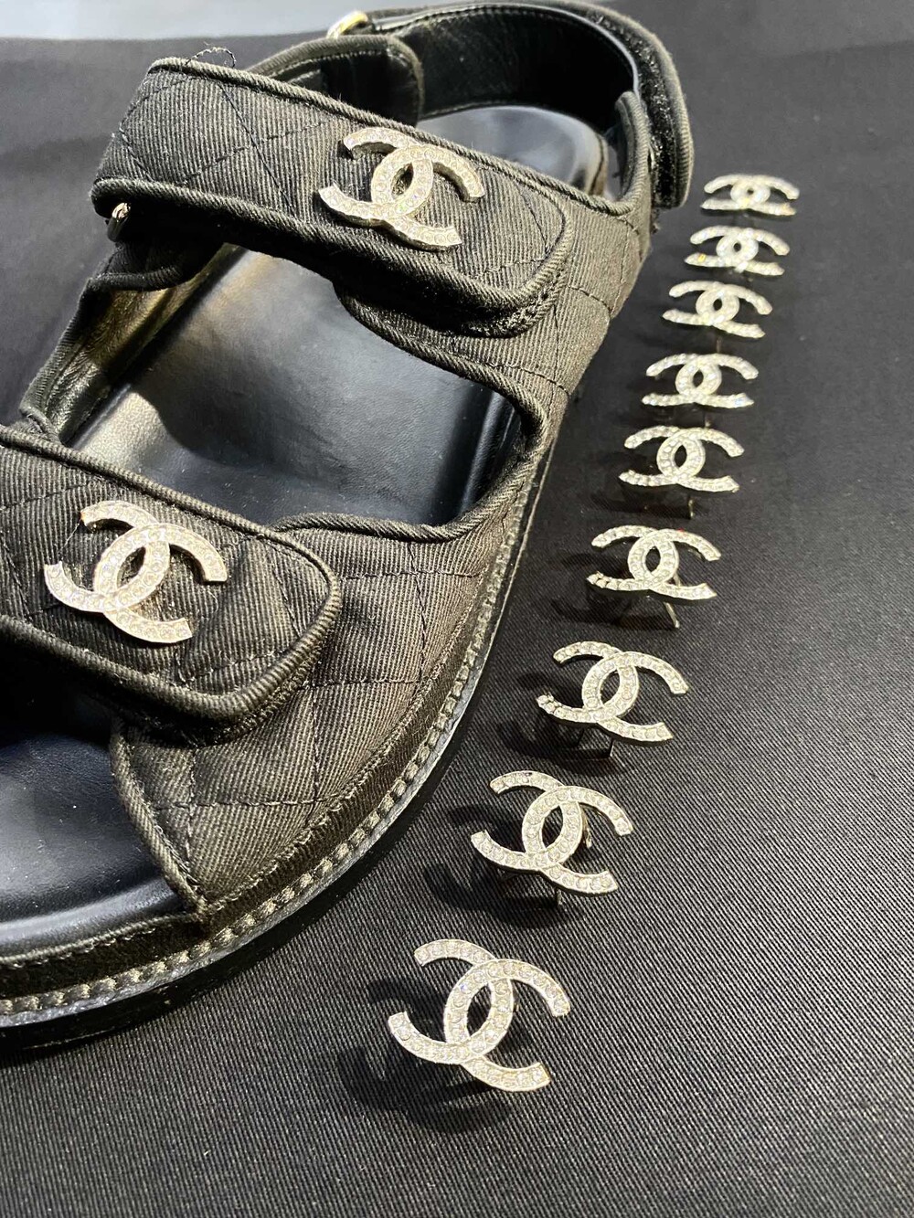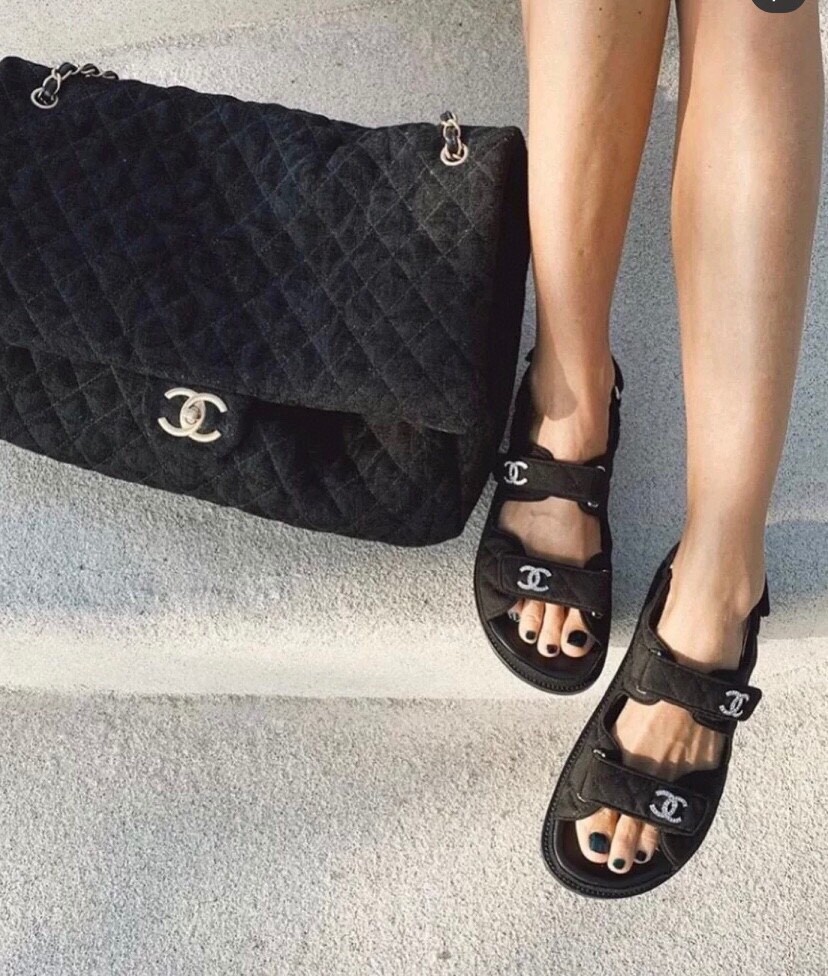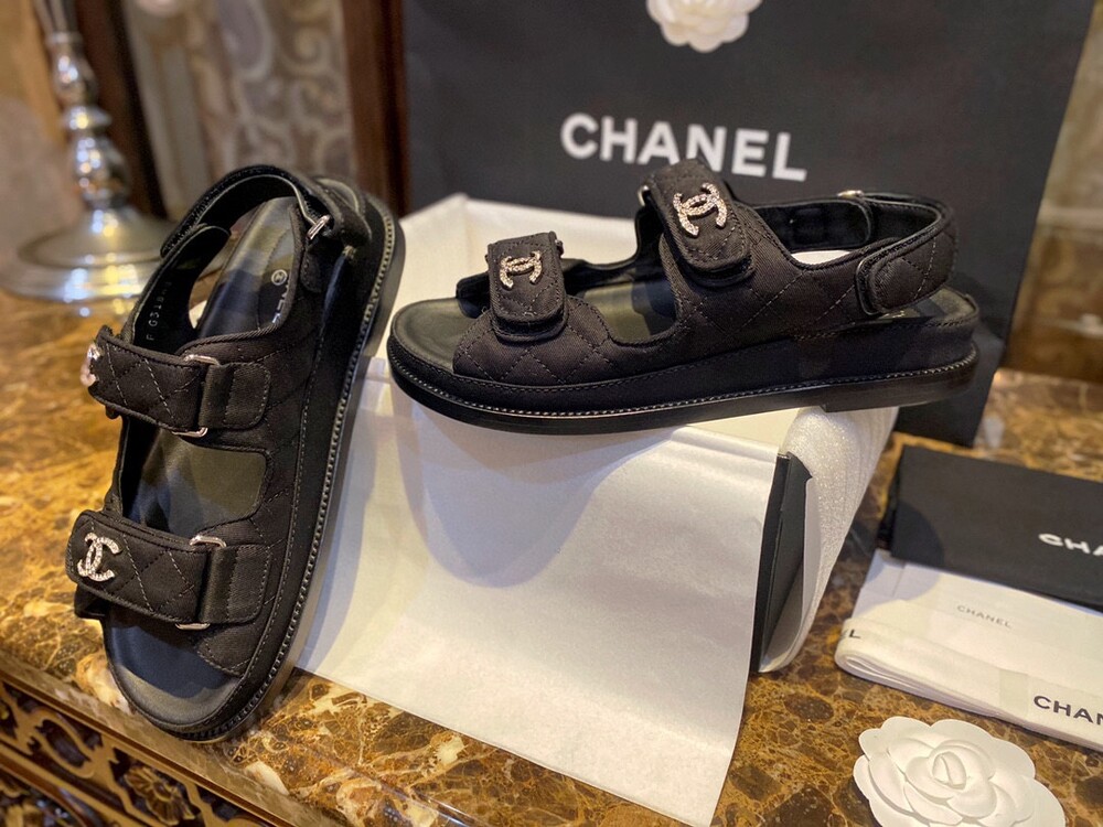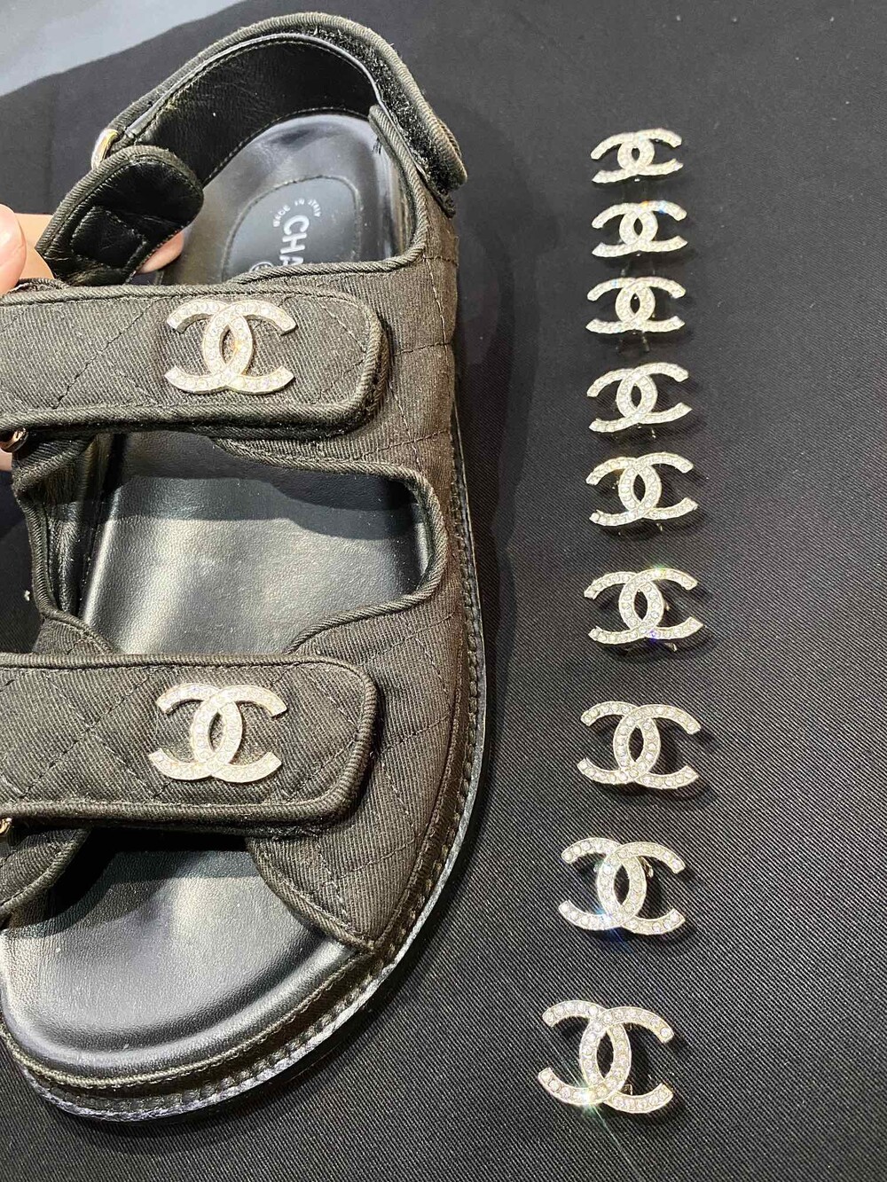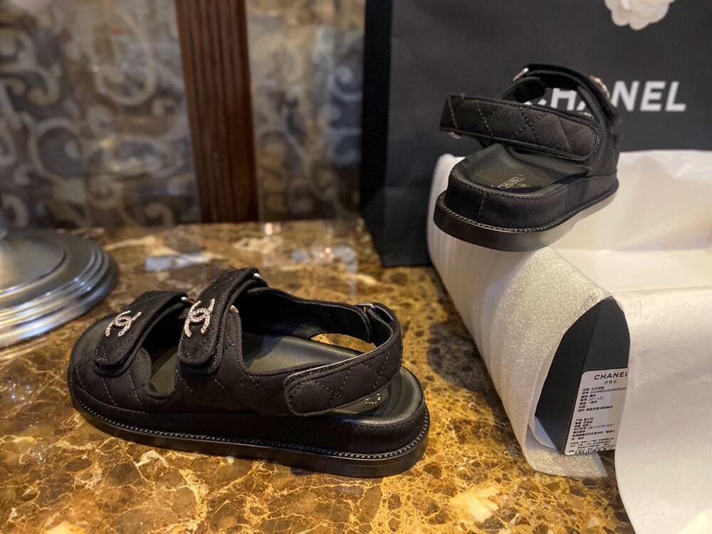 □크리스탈 CC 로고 벨크로 샌들□