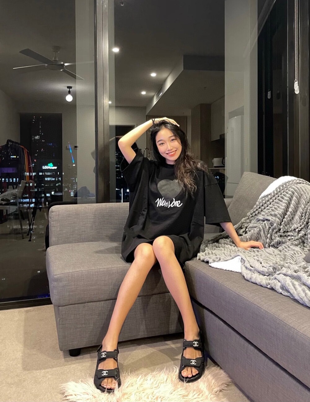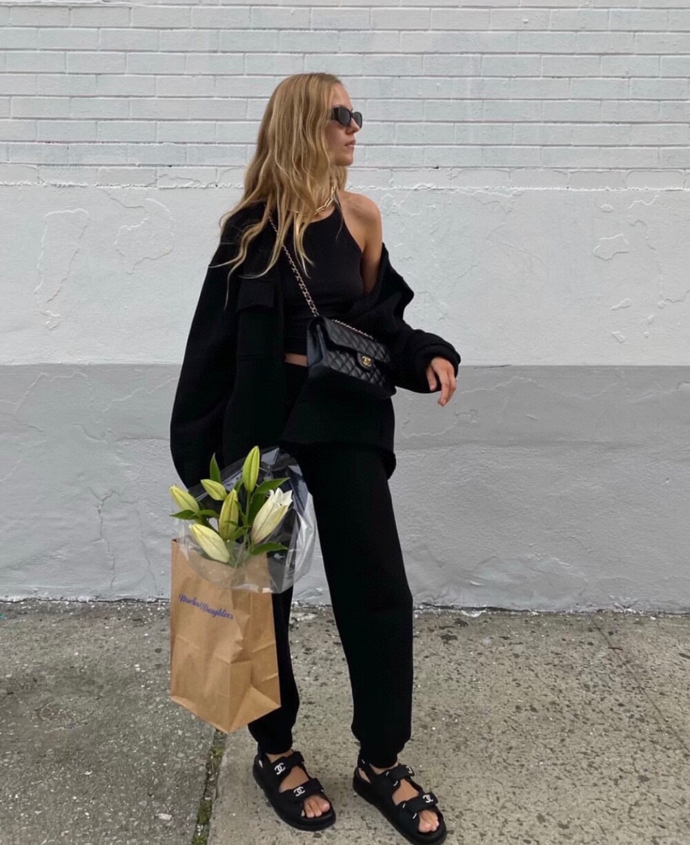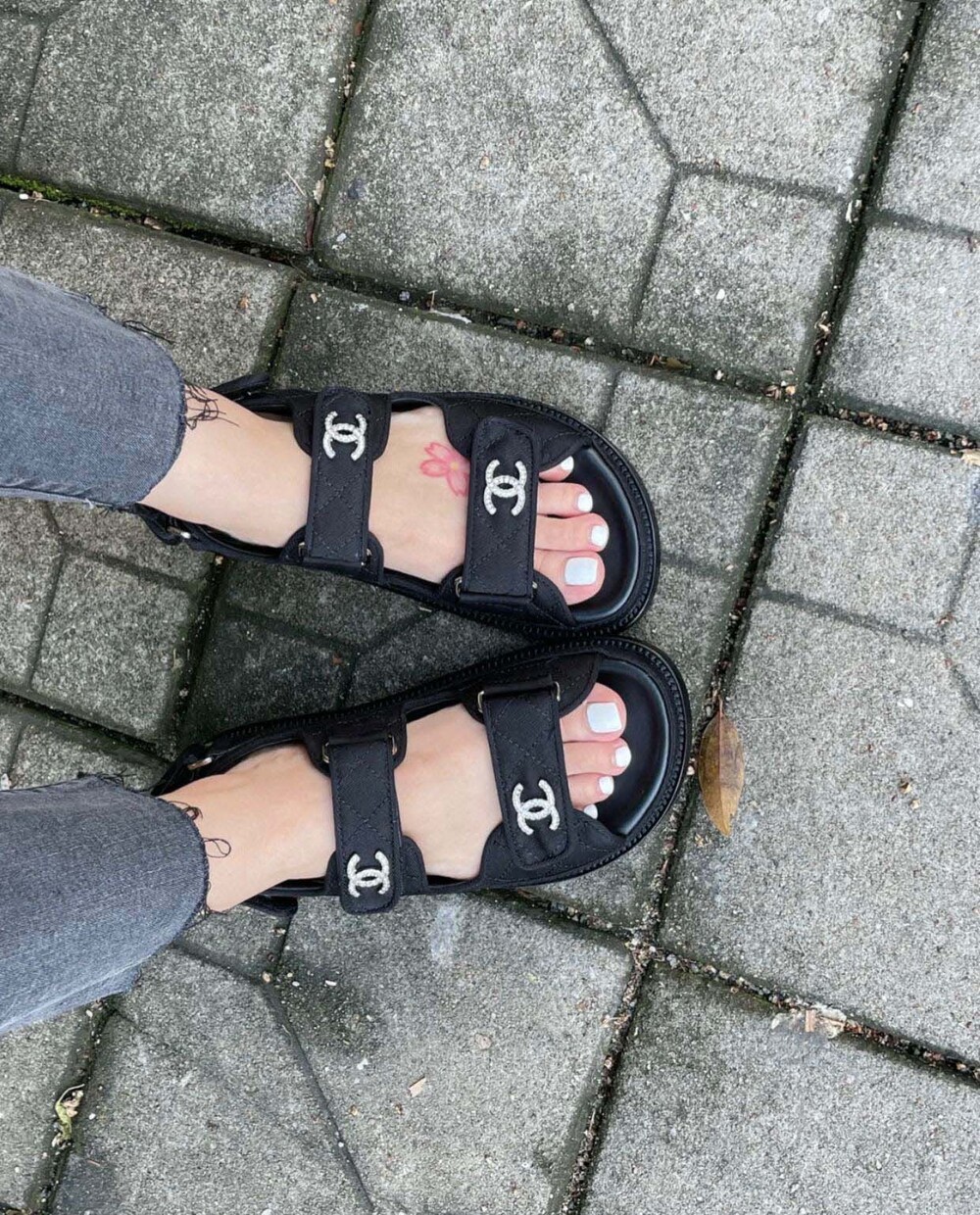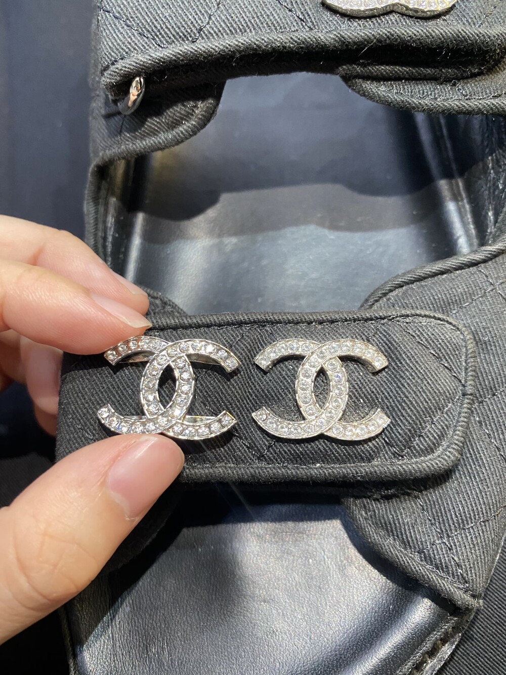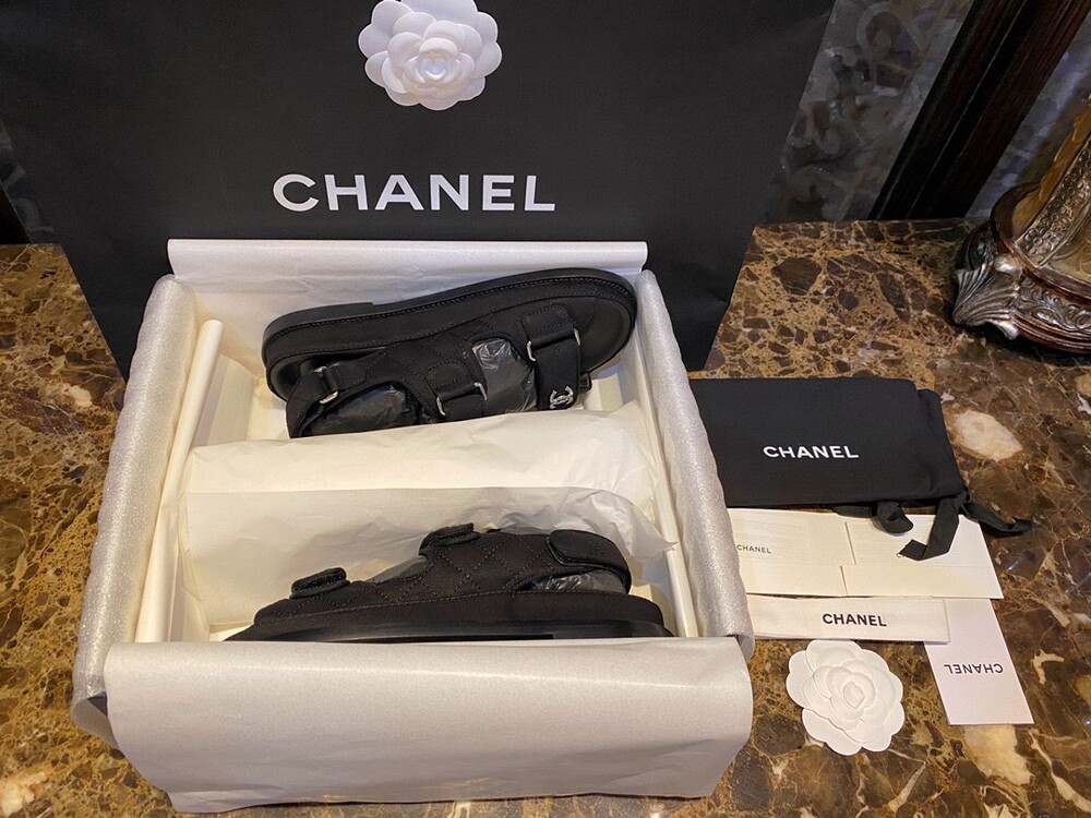 □크리스탈 CC 로고 벨크로 샌들□