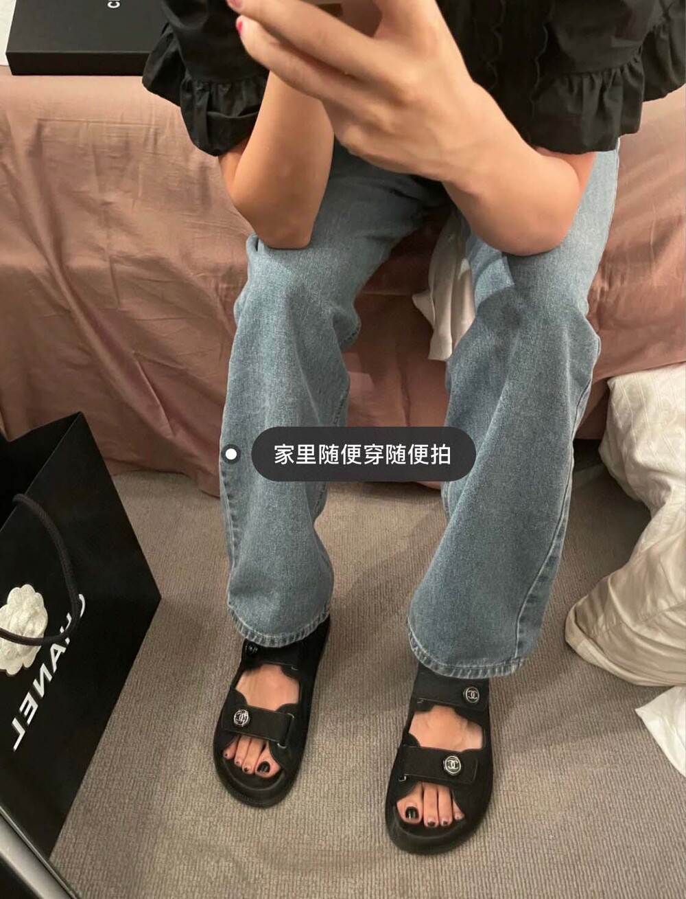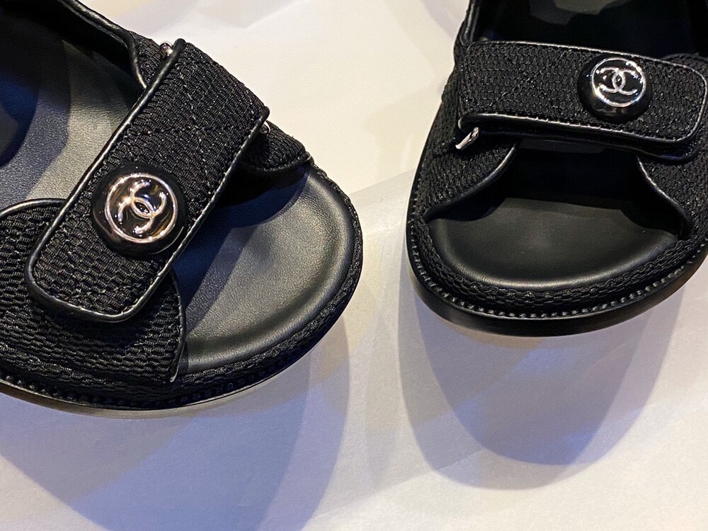 □버튼 로고 벨크로 샌들□