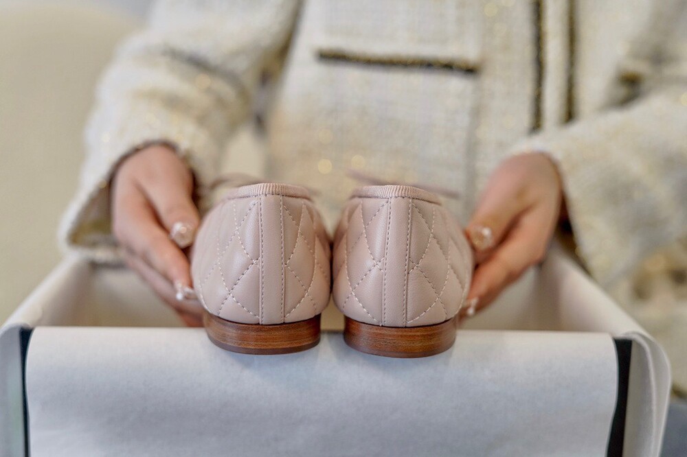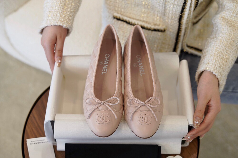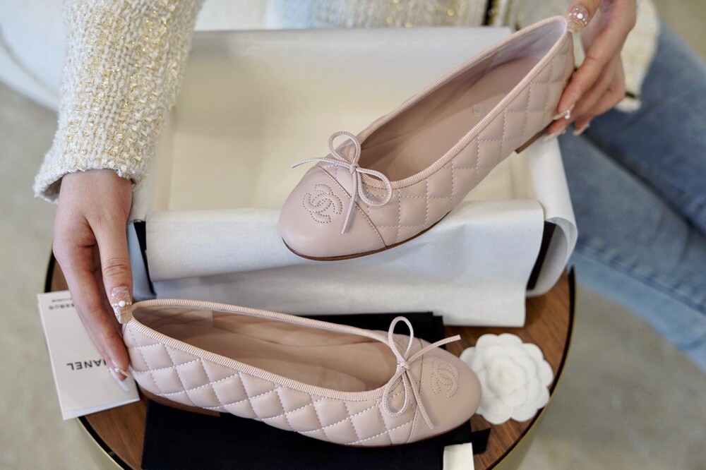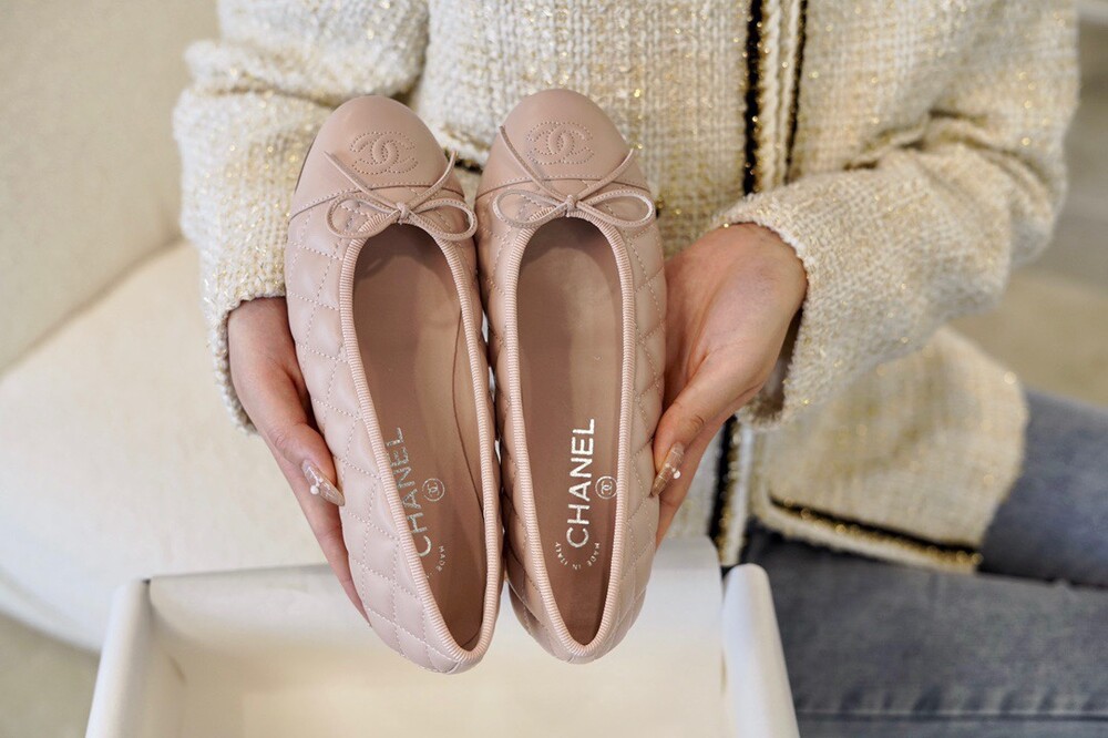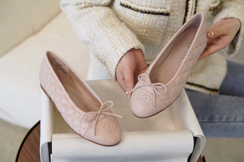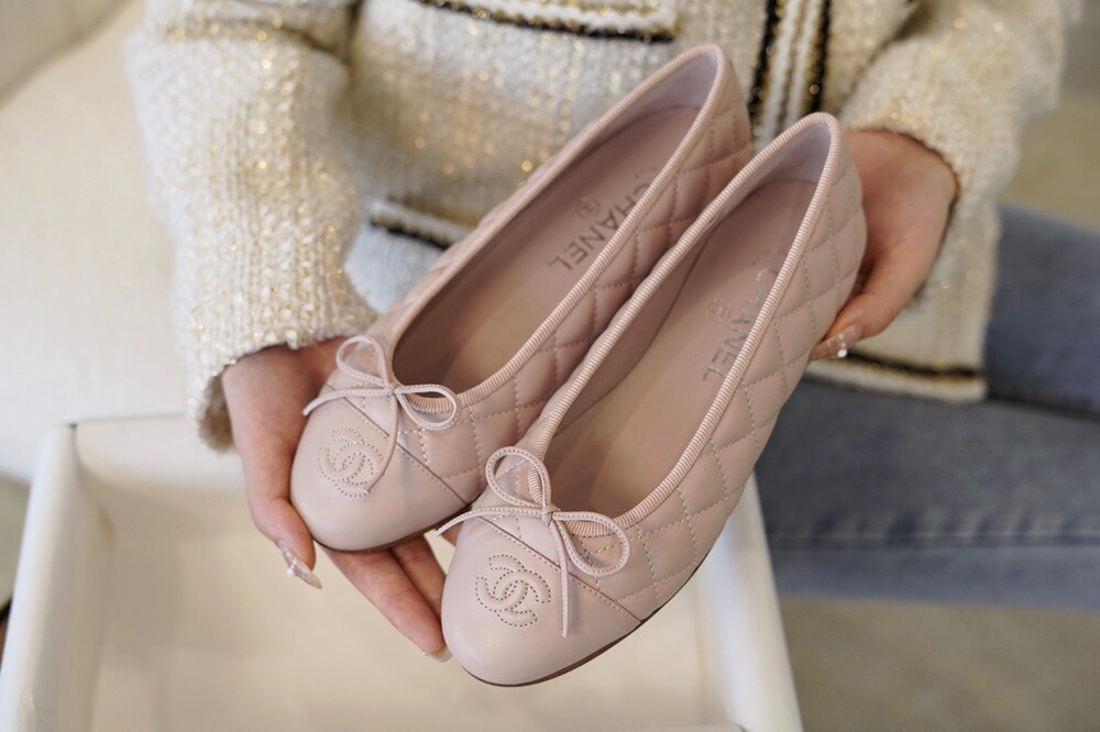 핑크 다이아몬드 양가죽 발레 슈즈🩰