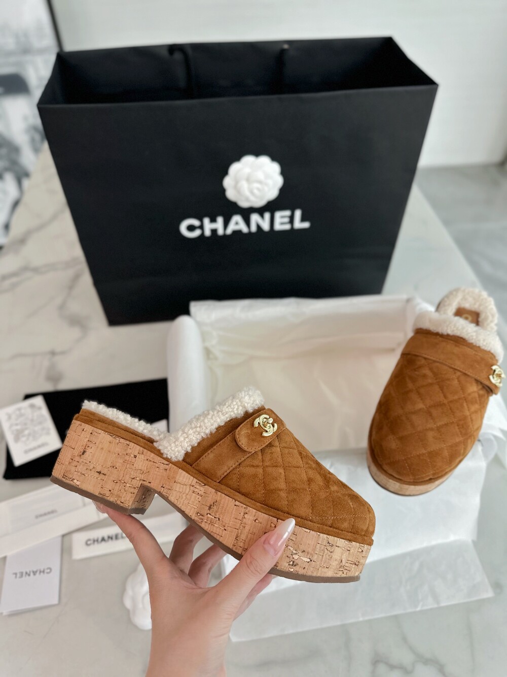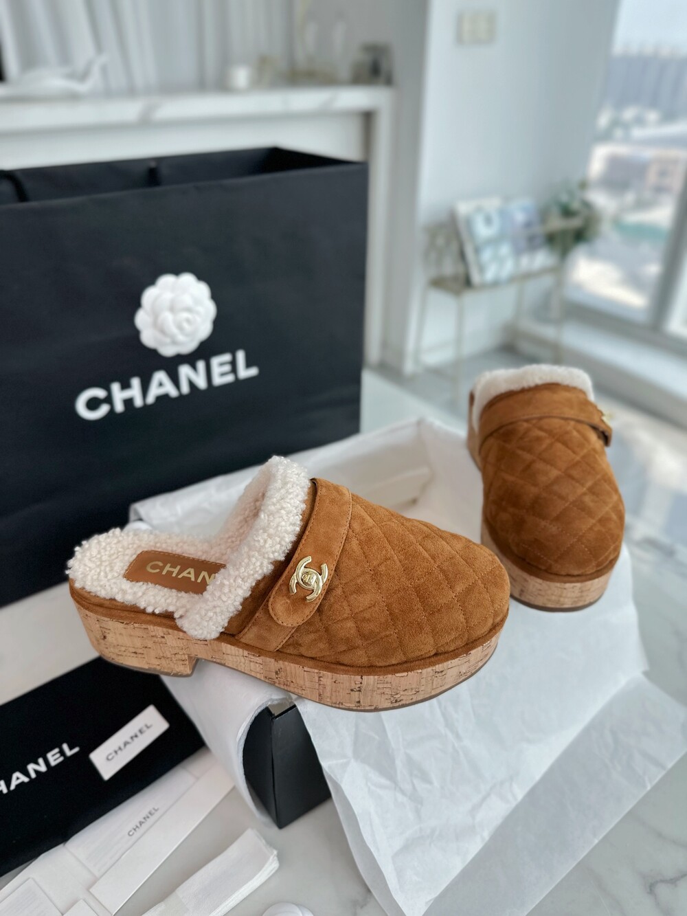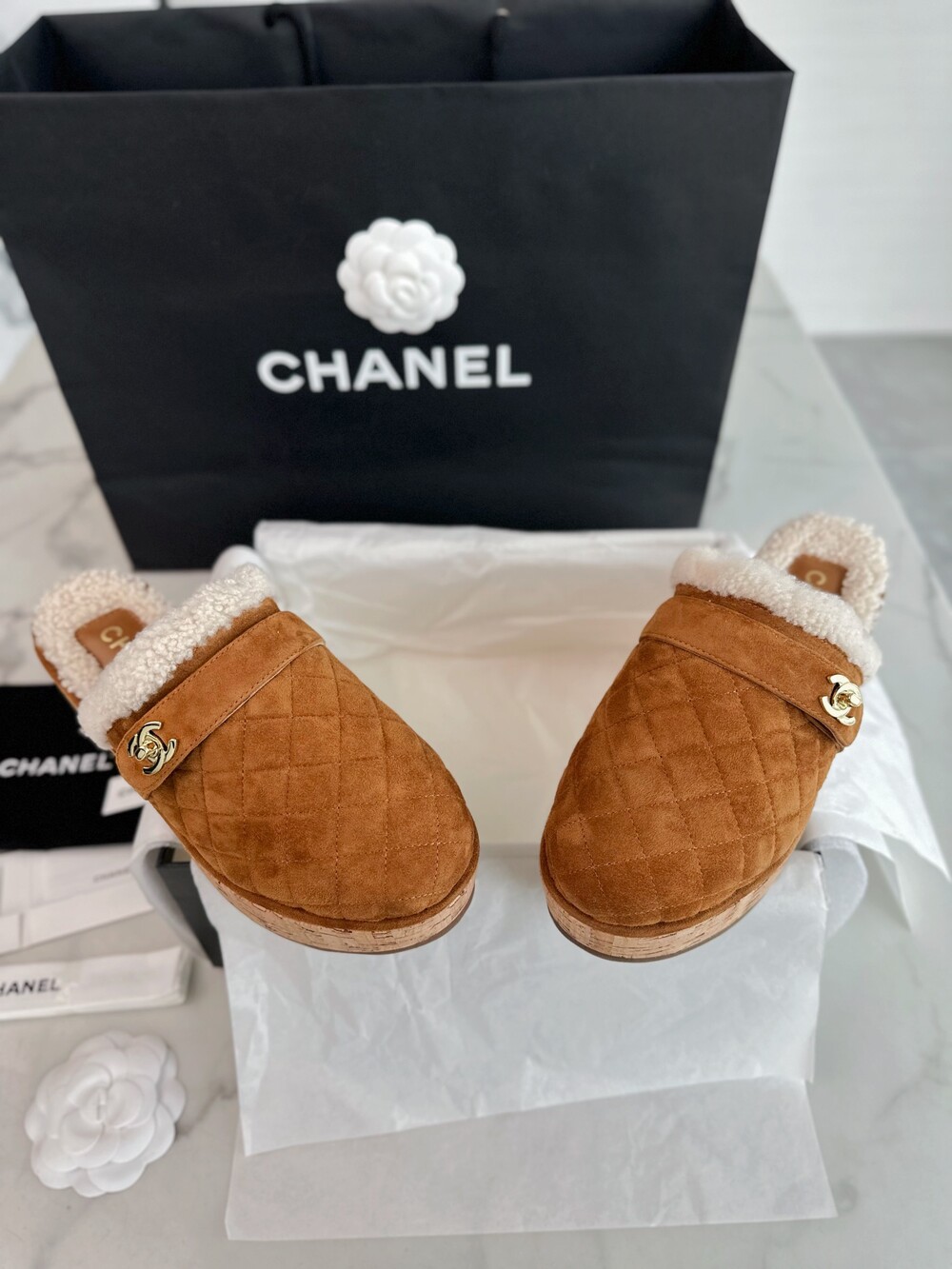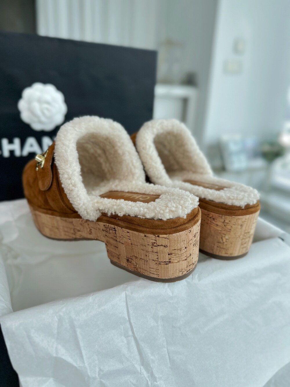 𝐂 𝐡𝐚𝐧𝐞𝐥 쇼 스타일 나막신 털 슬리퍼