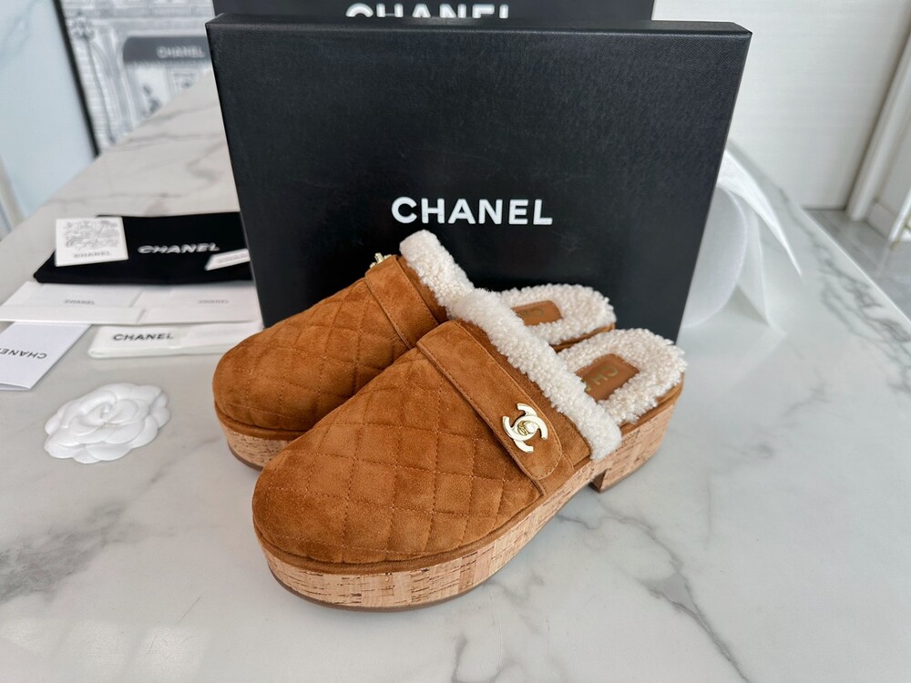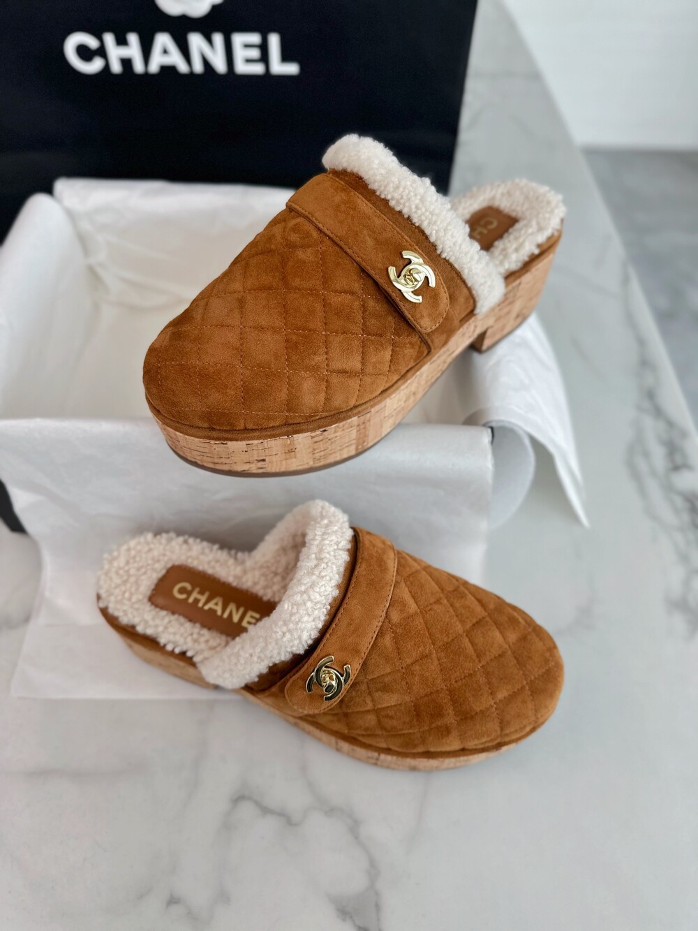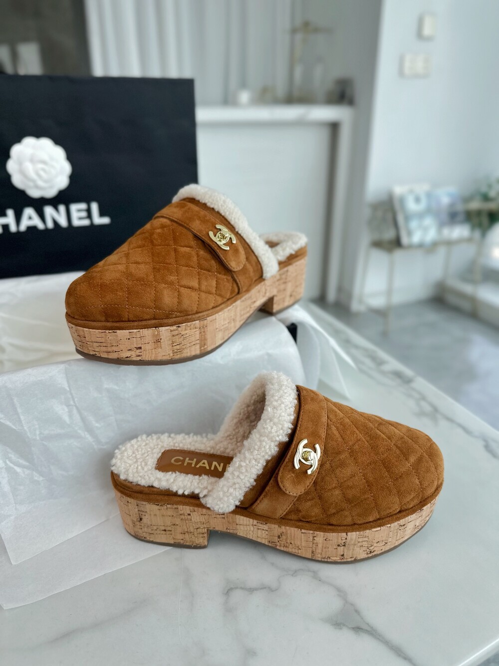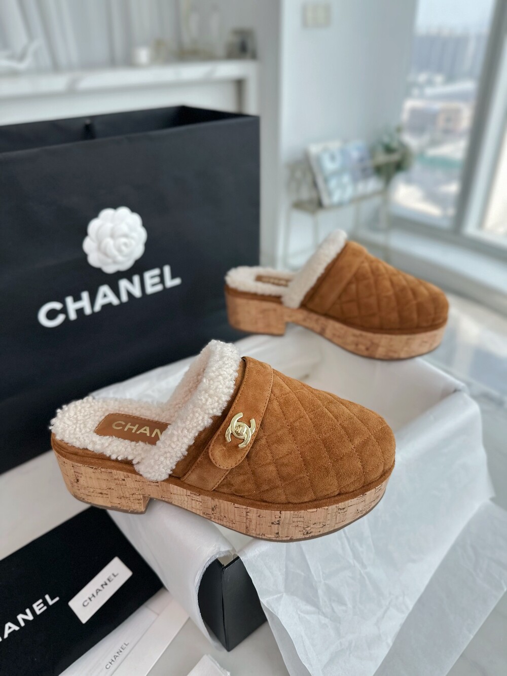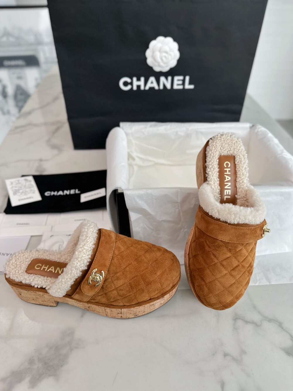 𝐂 𝐡𝐚𝐧𝐞𝐥 쇼 스타일 나막신 털 슬리퍼