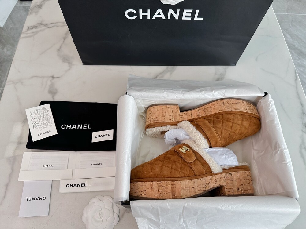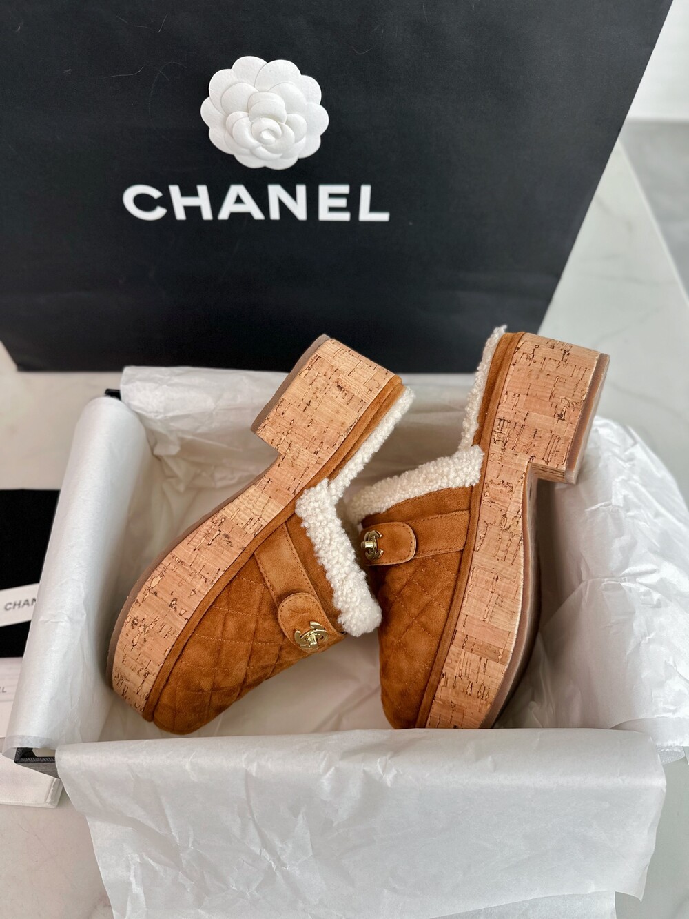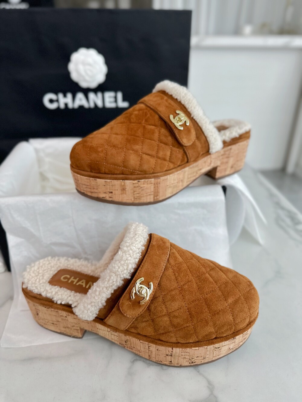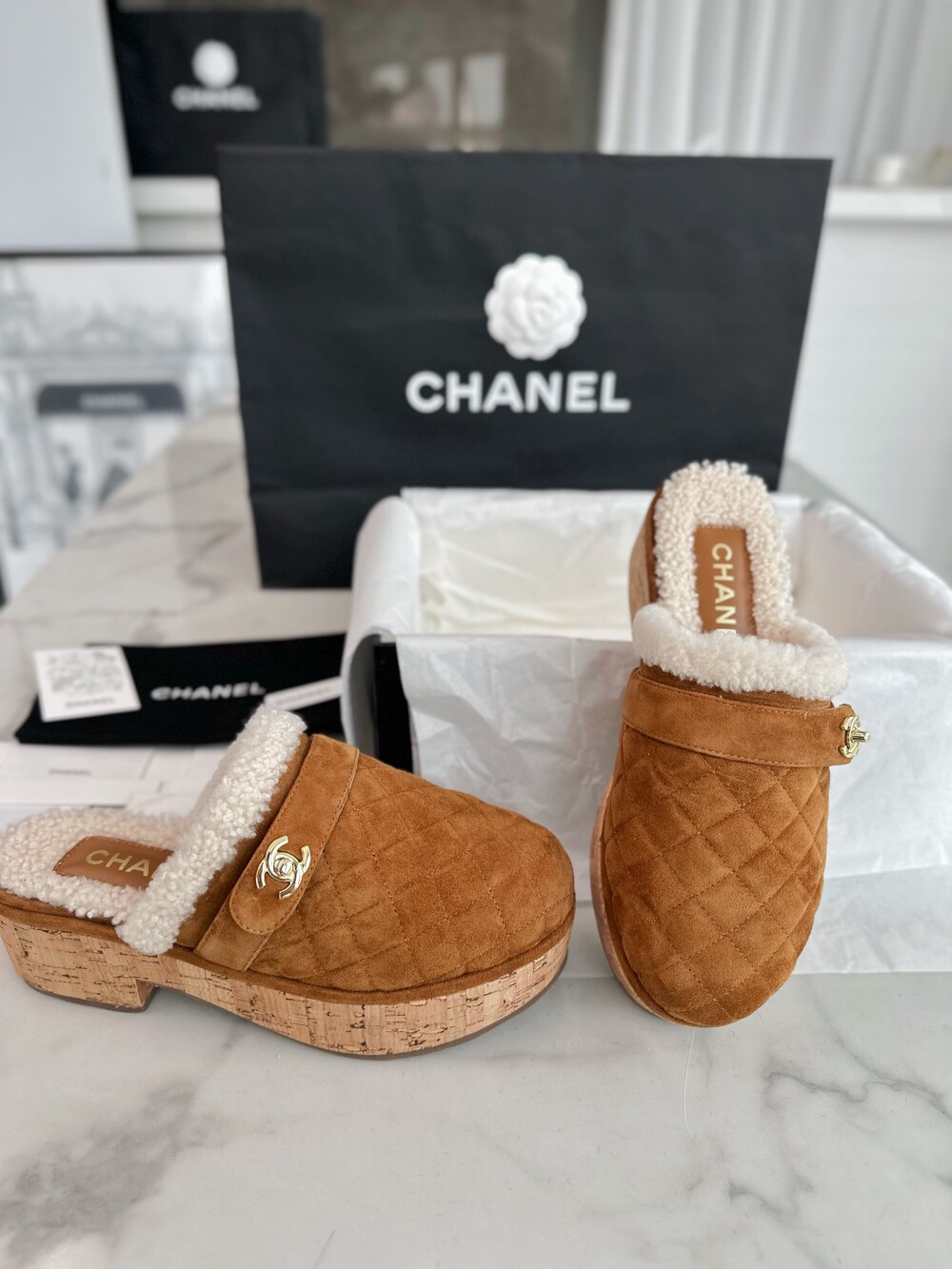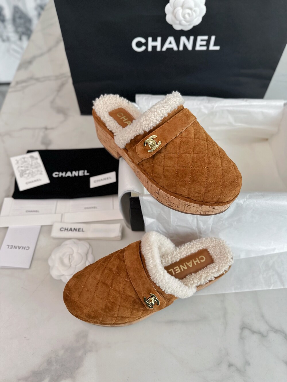 𝐂 𝐡𝐚𝐧𝐞𝐥 쇼 스타일 나막신 털 슬리퍼