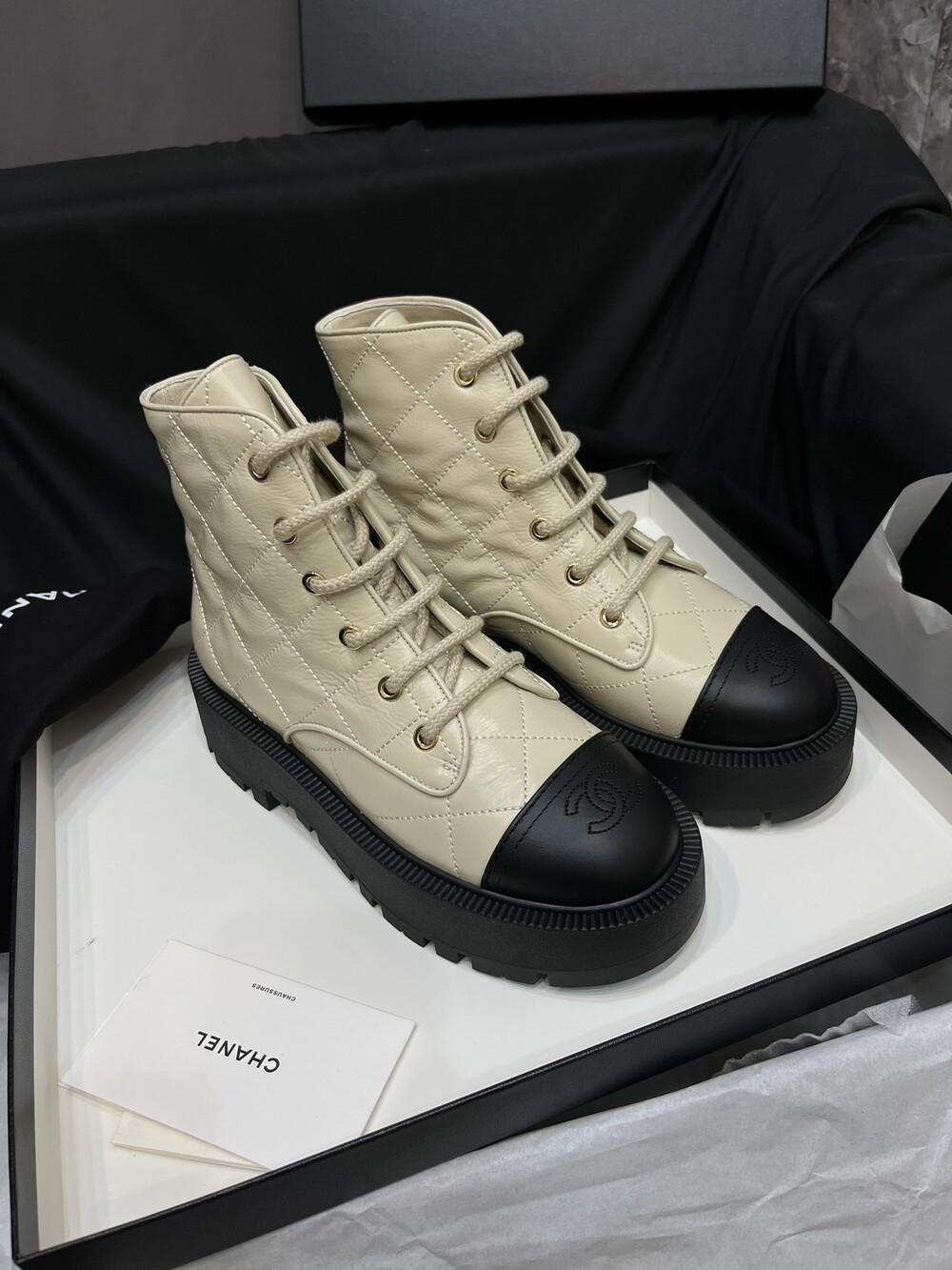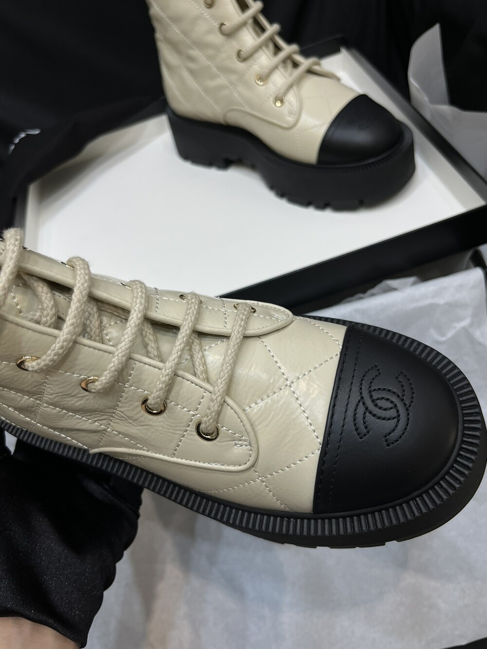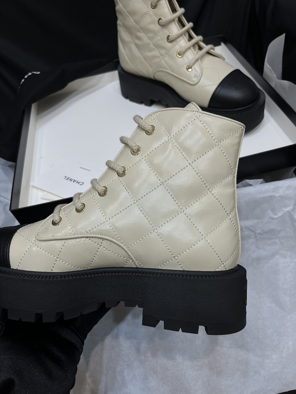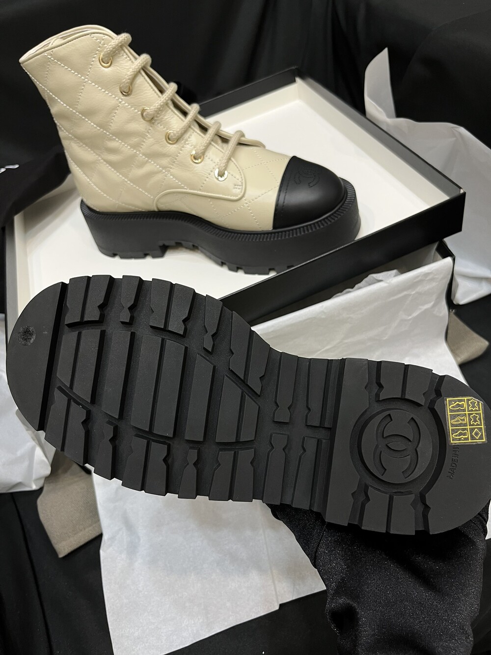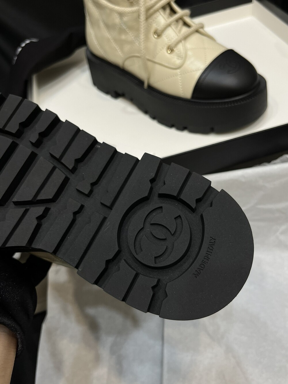 2024 CC 퀼팅 통굽 앵클 부츠는