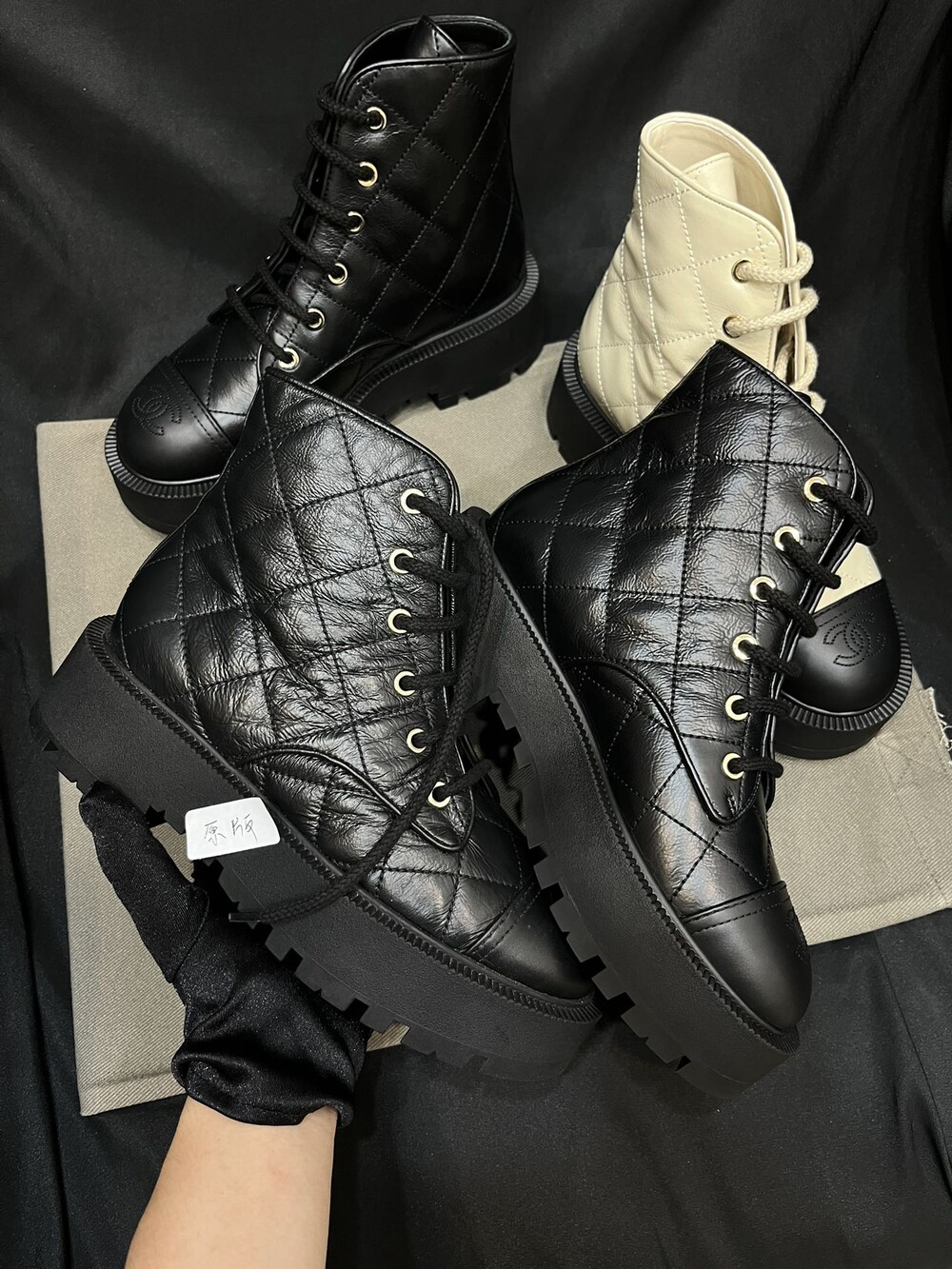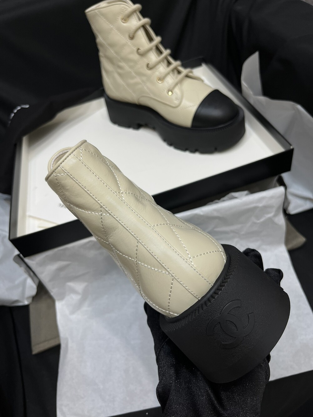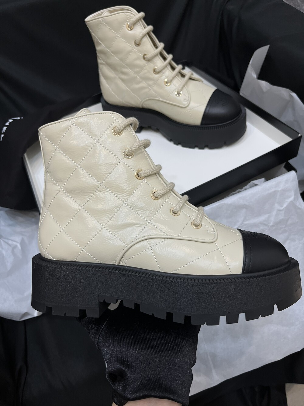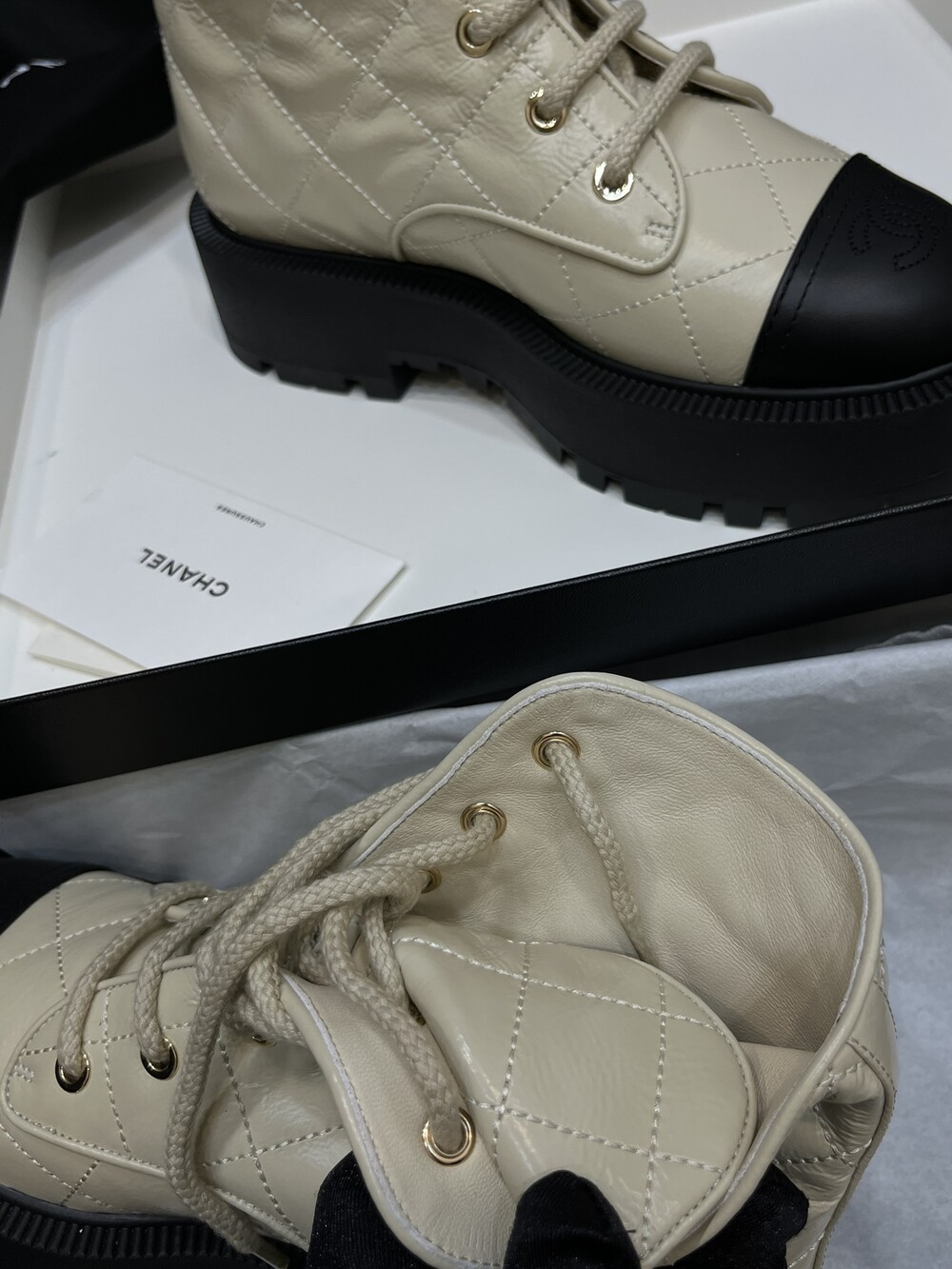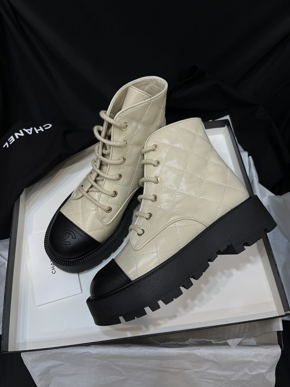 2024 CC 퀼팅 통굽 앵클 부츠는