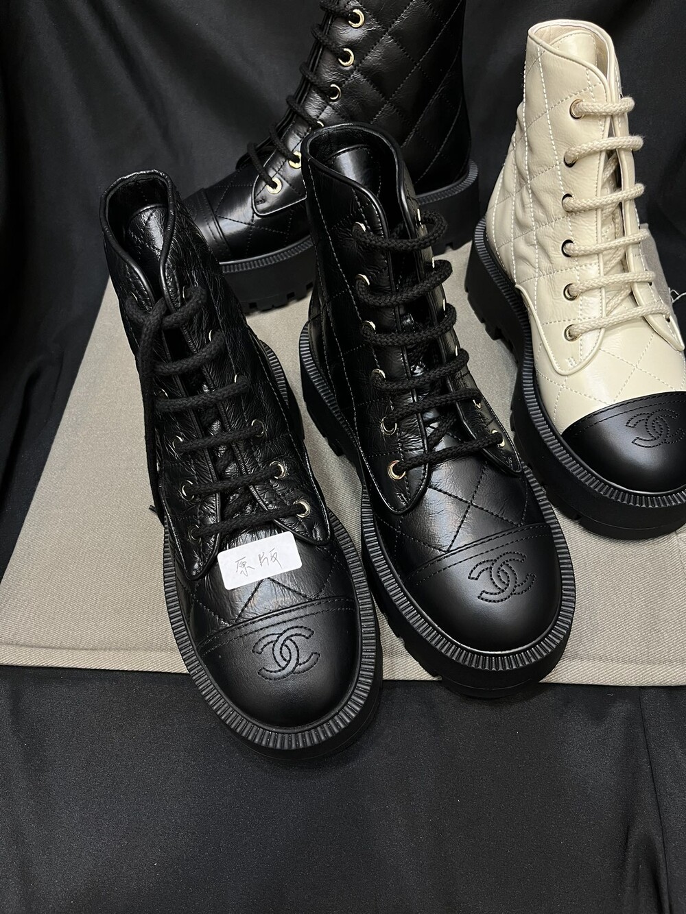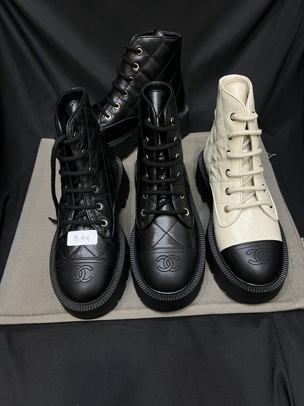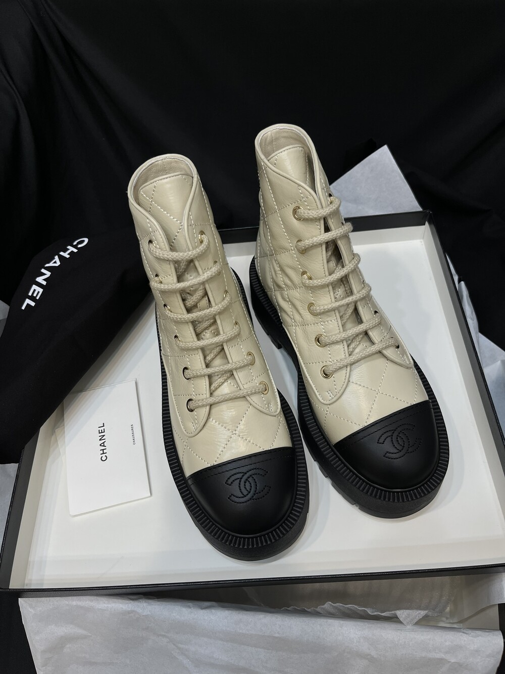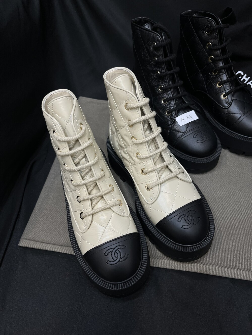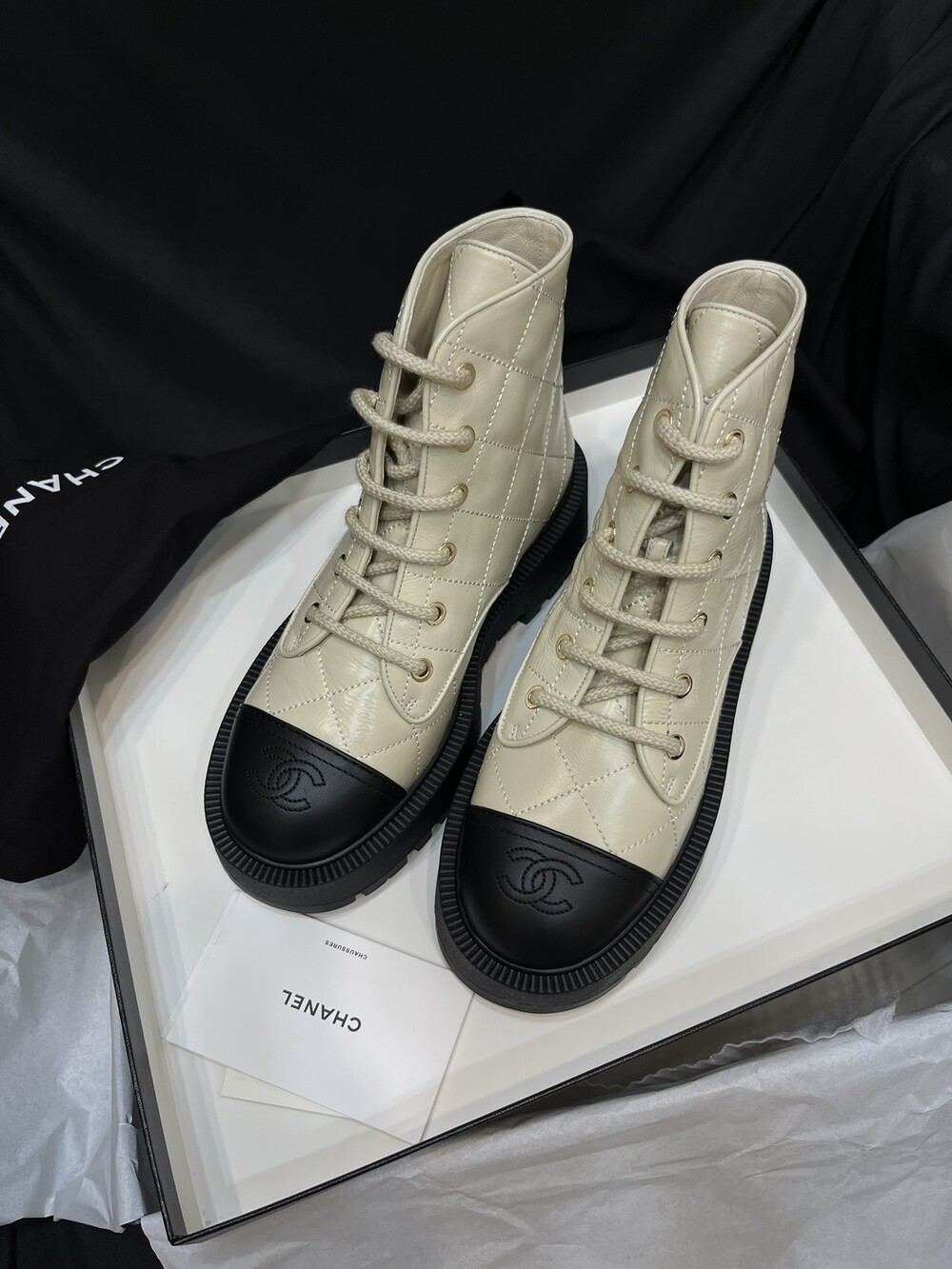 2024 CC 퀼팅 통굽 앵클 부츠는
