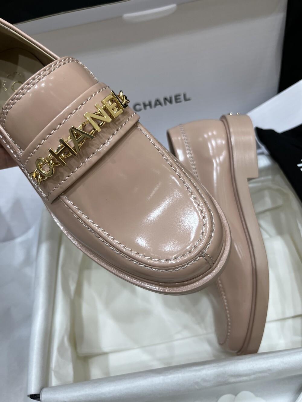 𝐂𝐡𝐚𝐧𝐞𝐥 메탈릭 레터 로퍼