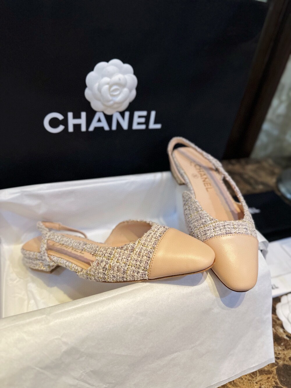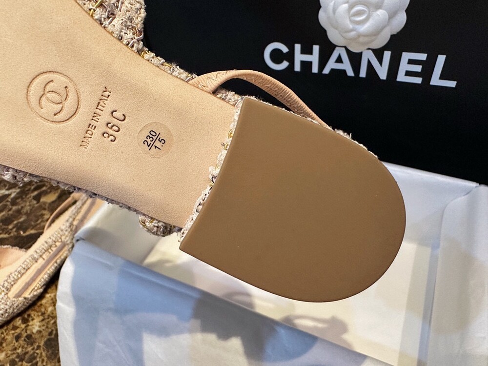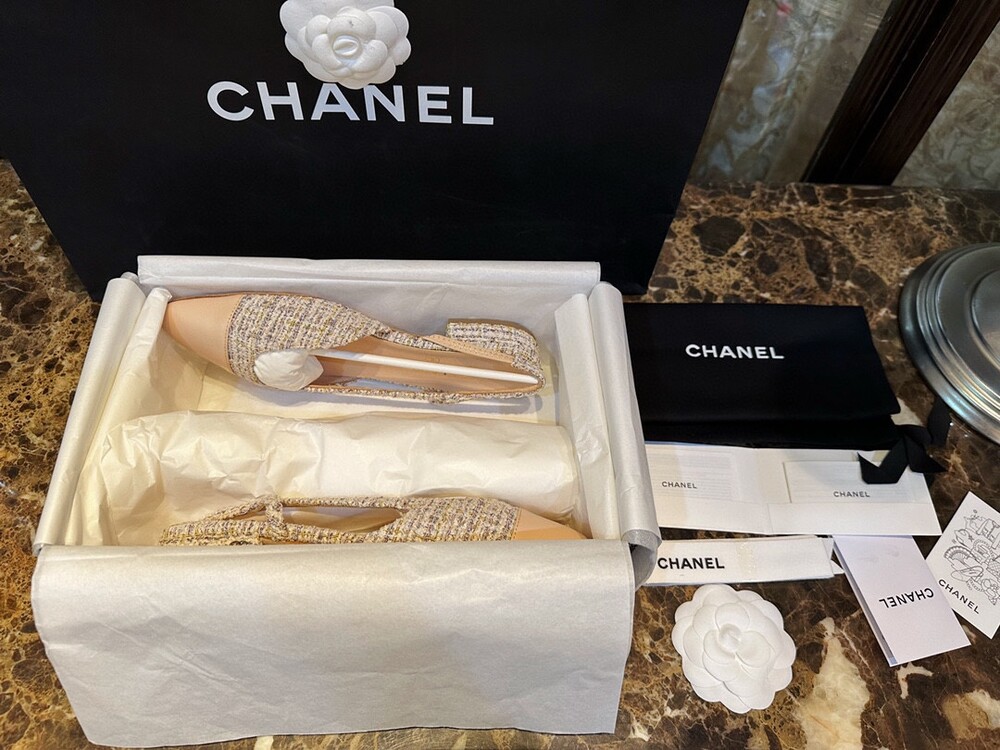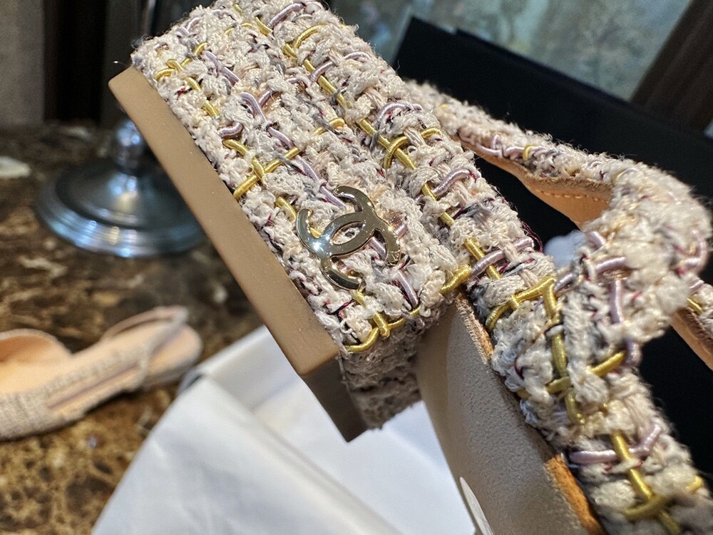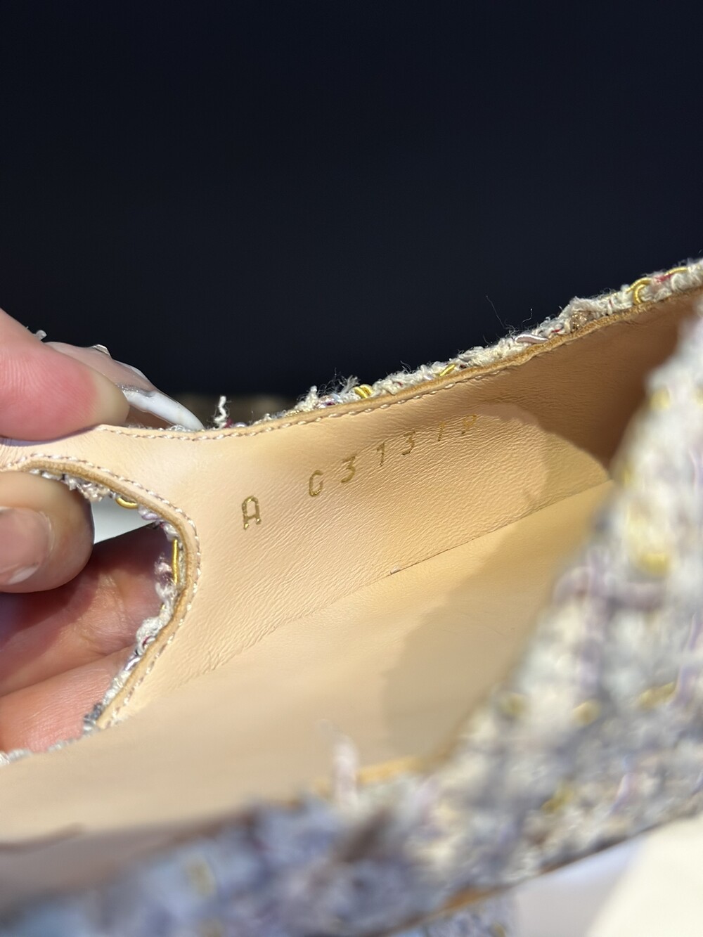 𝑪.𝒉𝒂𝒏𝒆𝒍 살구 양가죽 트위드 플랫