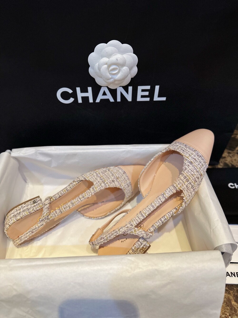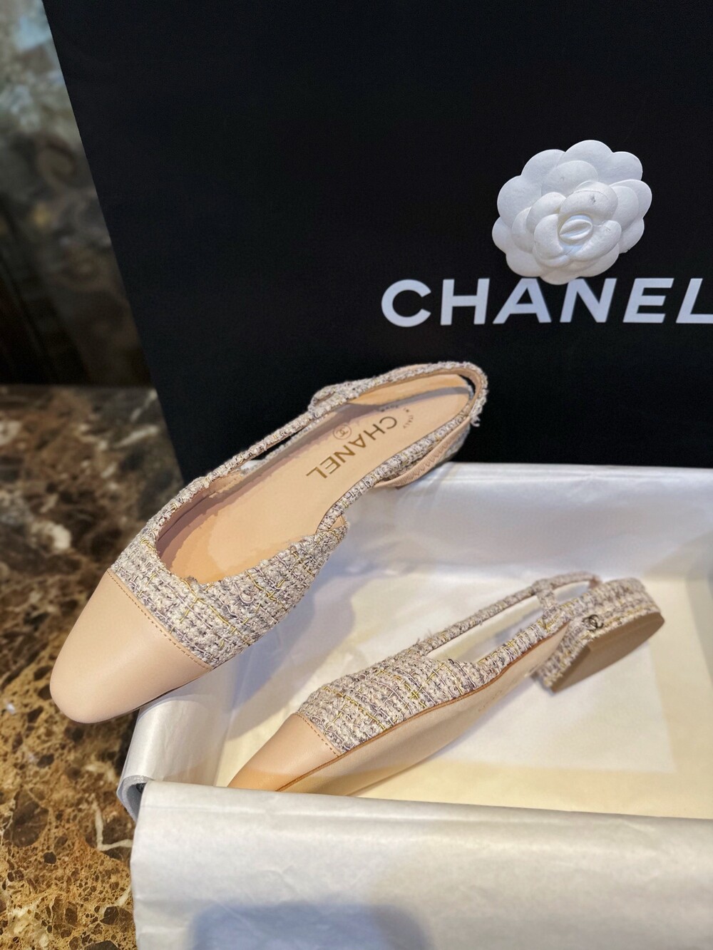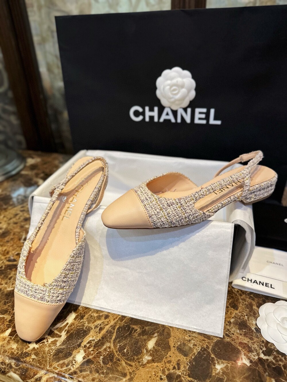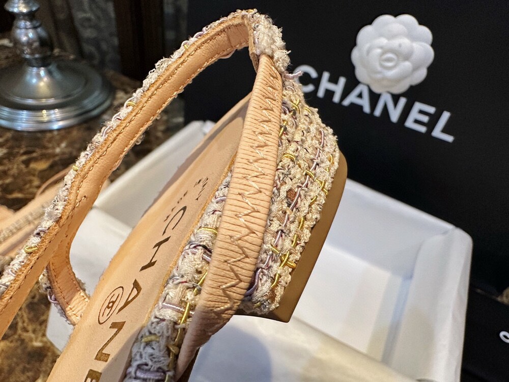 𝑪.𝒉𝒂𝒏𝒆𝒍 살구 양가죽 트위드 플랫