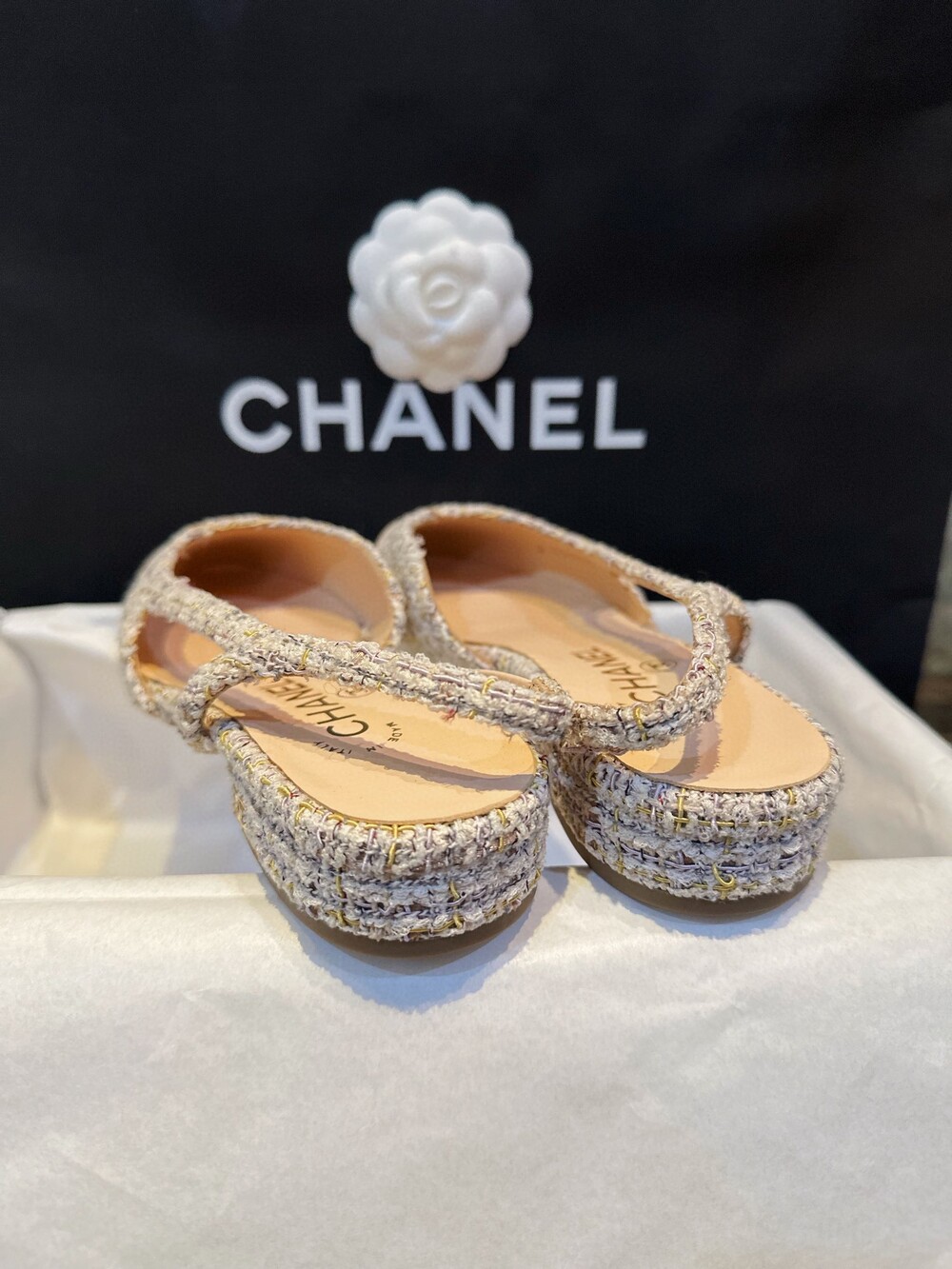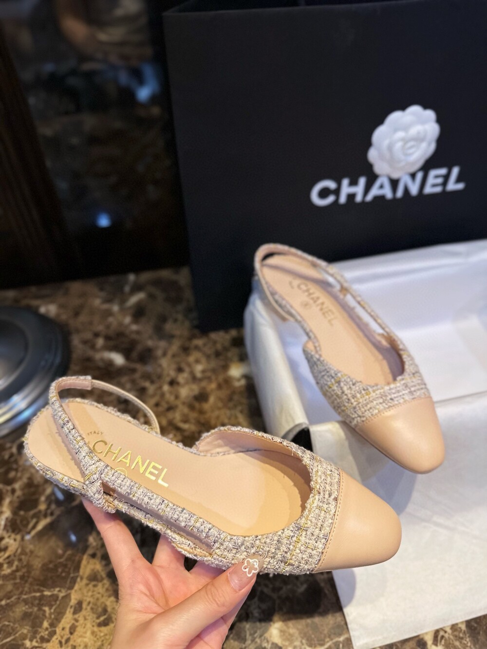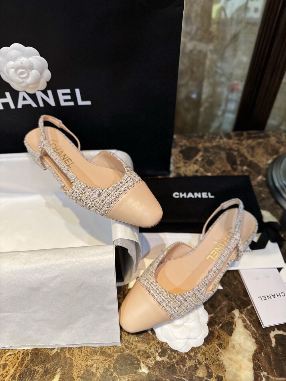 𝑪.𝒉𝒂𝒏𝒆𝒍 살구 양가죽 트위드 플랫