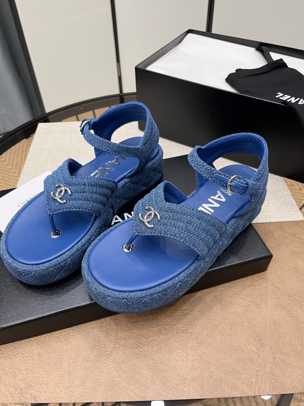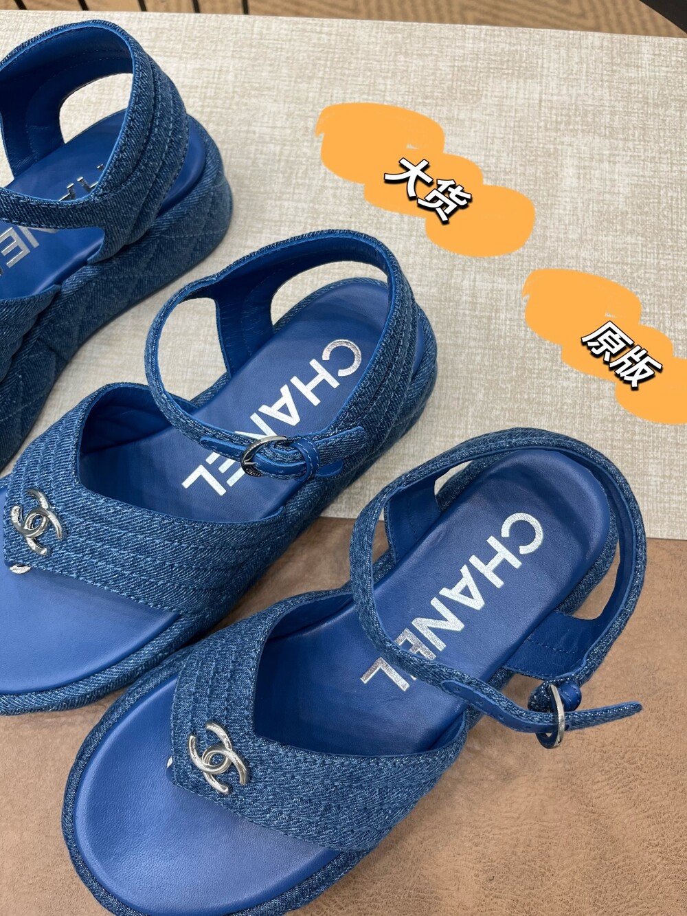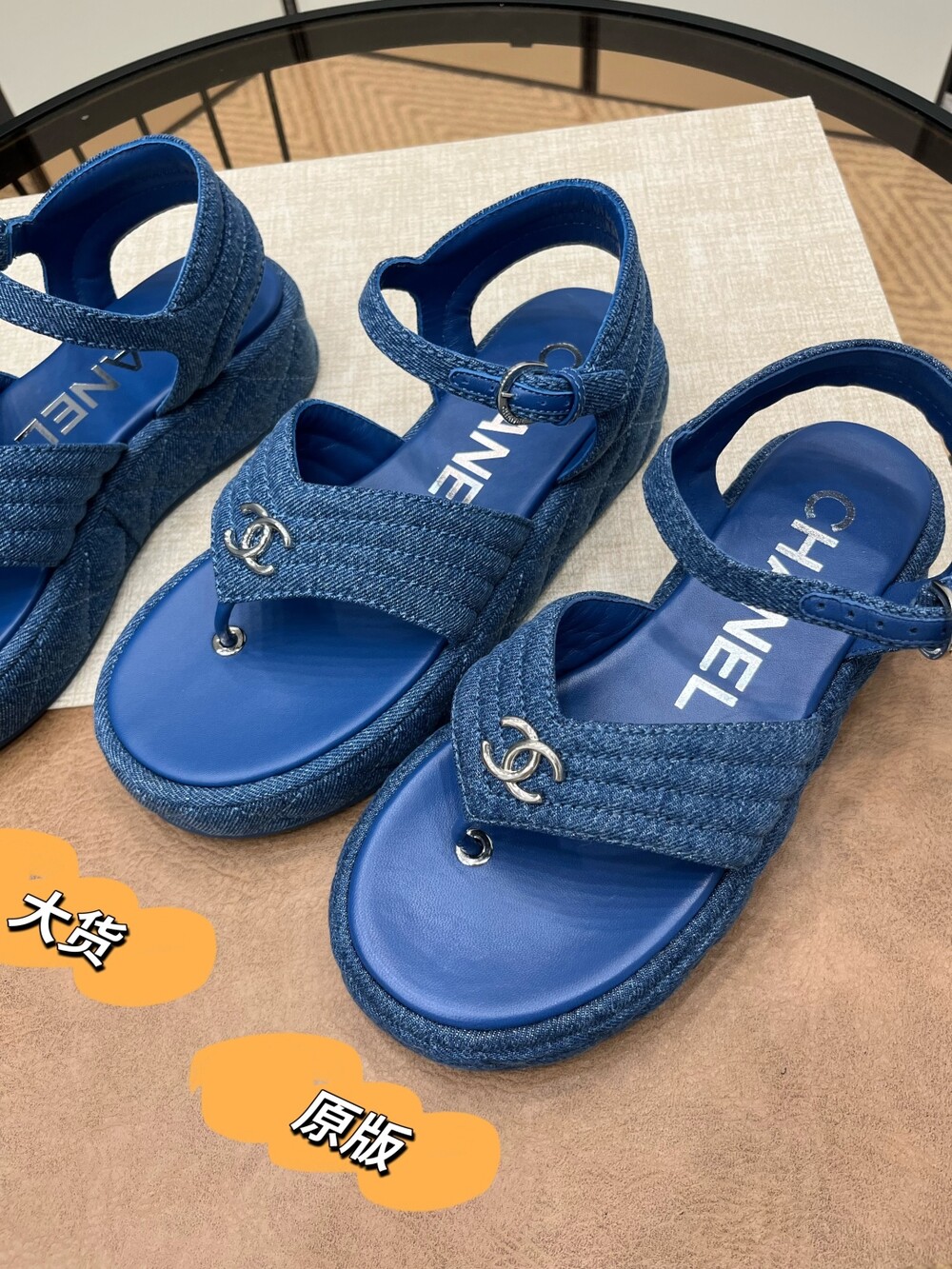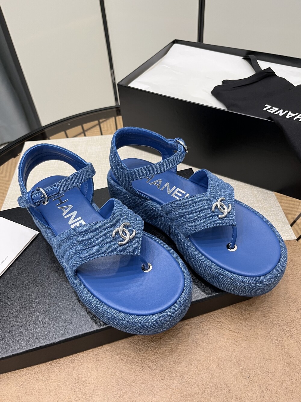 데님 블루 두꺼운 밑창 플립플랍 샌들!