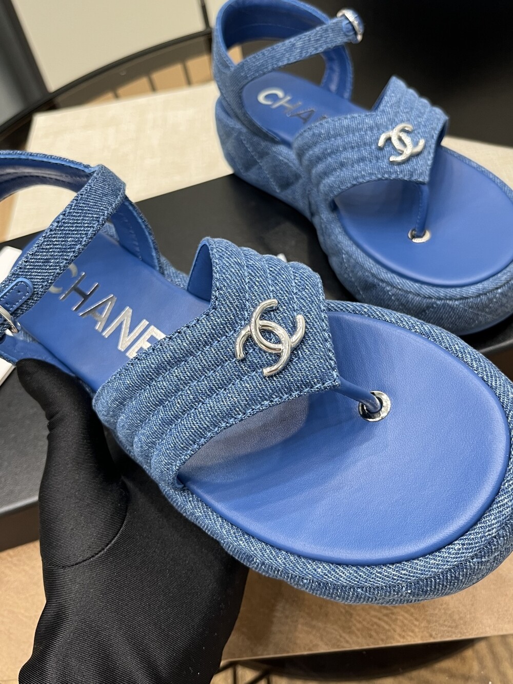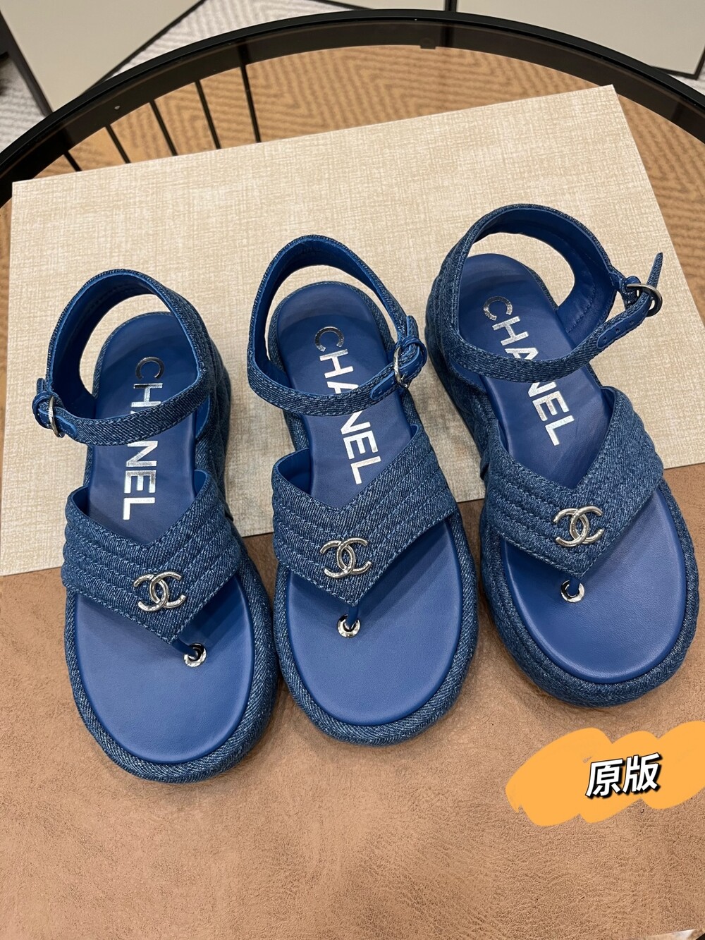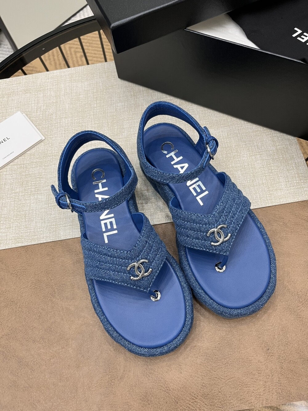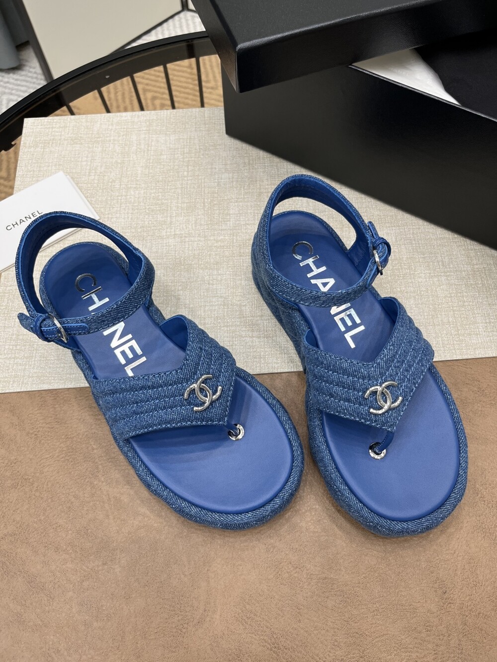 데님 블루 두꺼운 밑창 플립플랍 샌들!