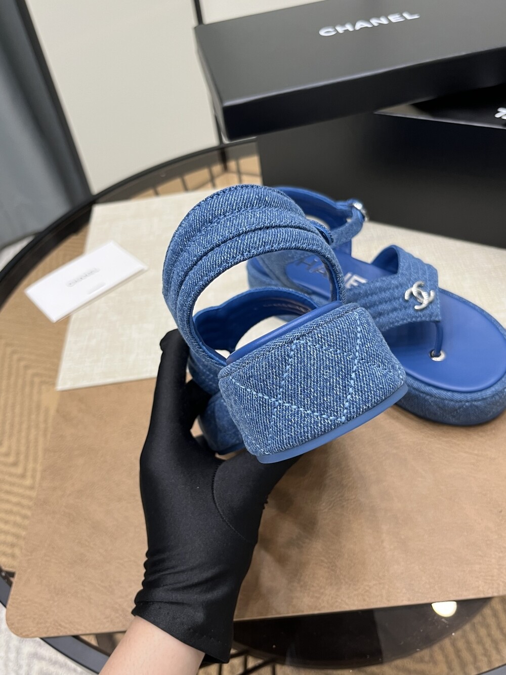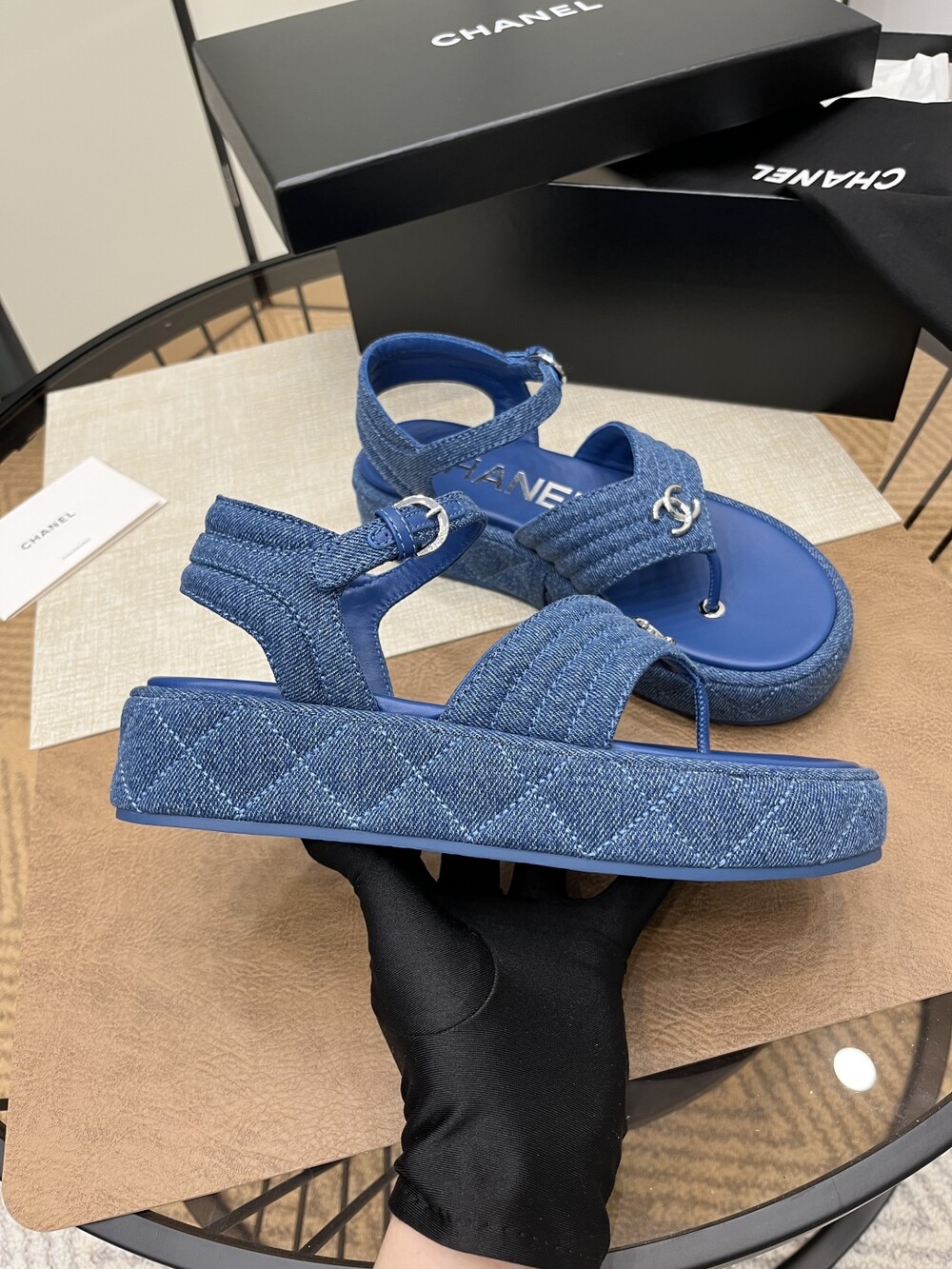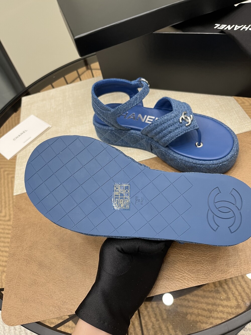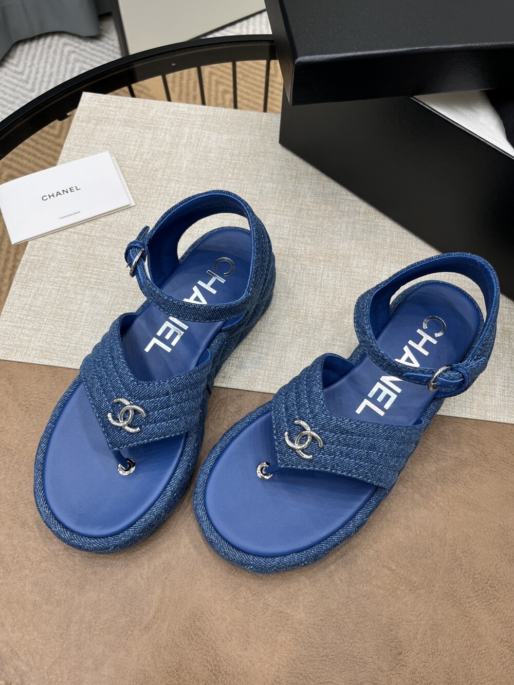 데님 블루 두꺼운 밑창 플립플랍 샌들!