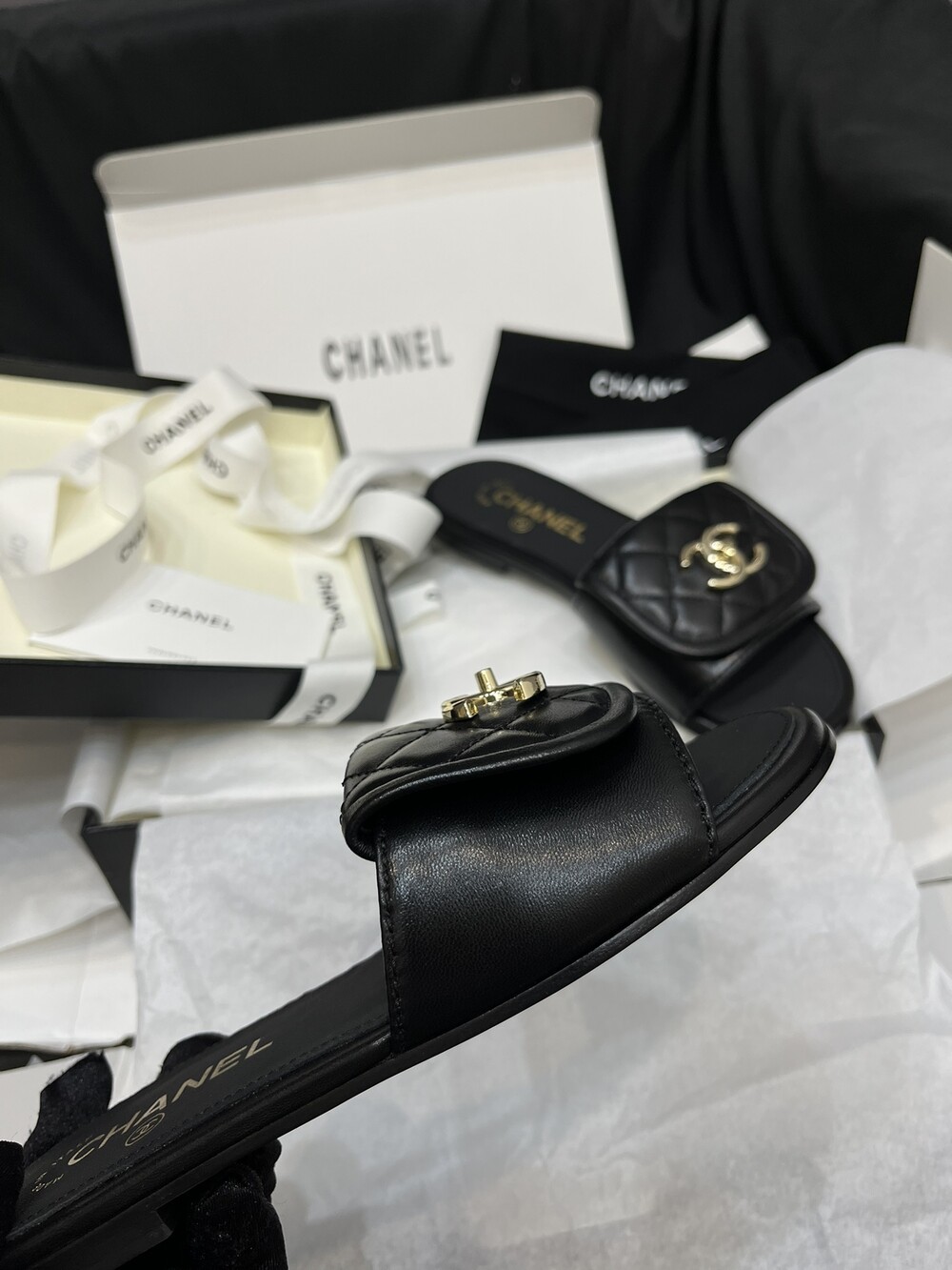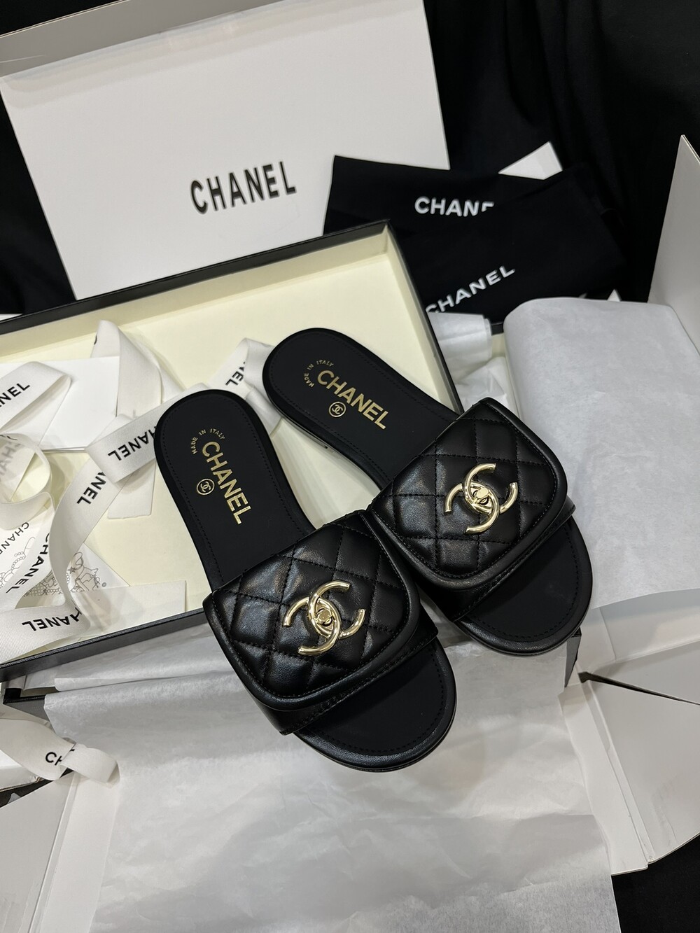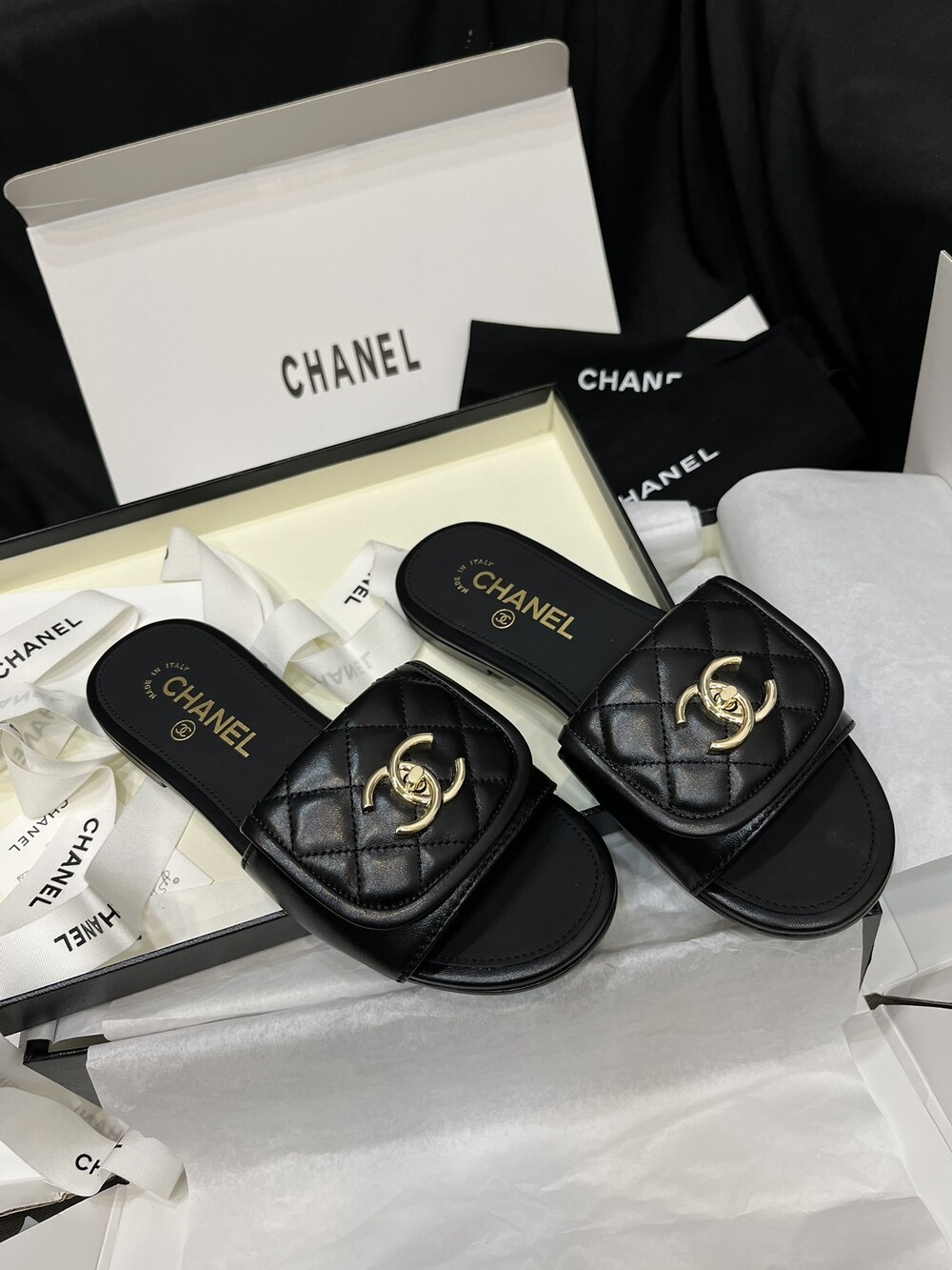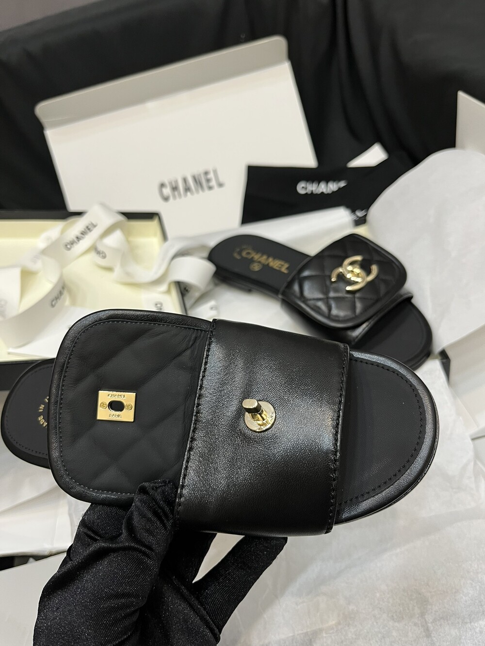 □CC 로고 턴락 뮬 슬리퍼□