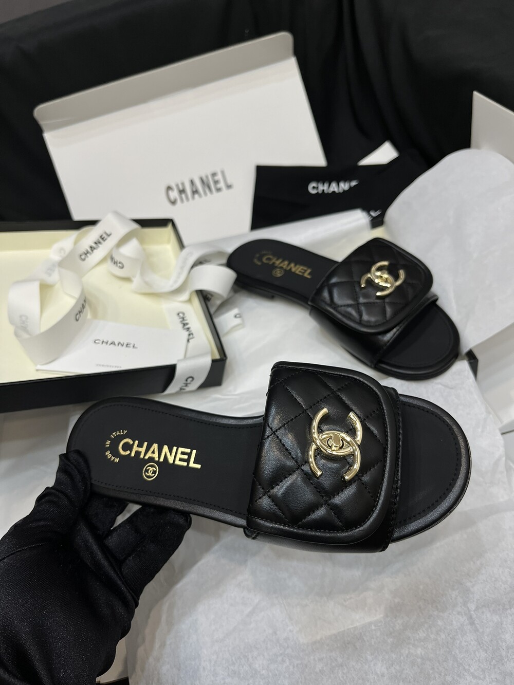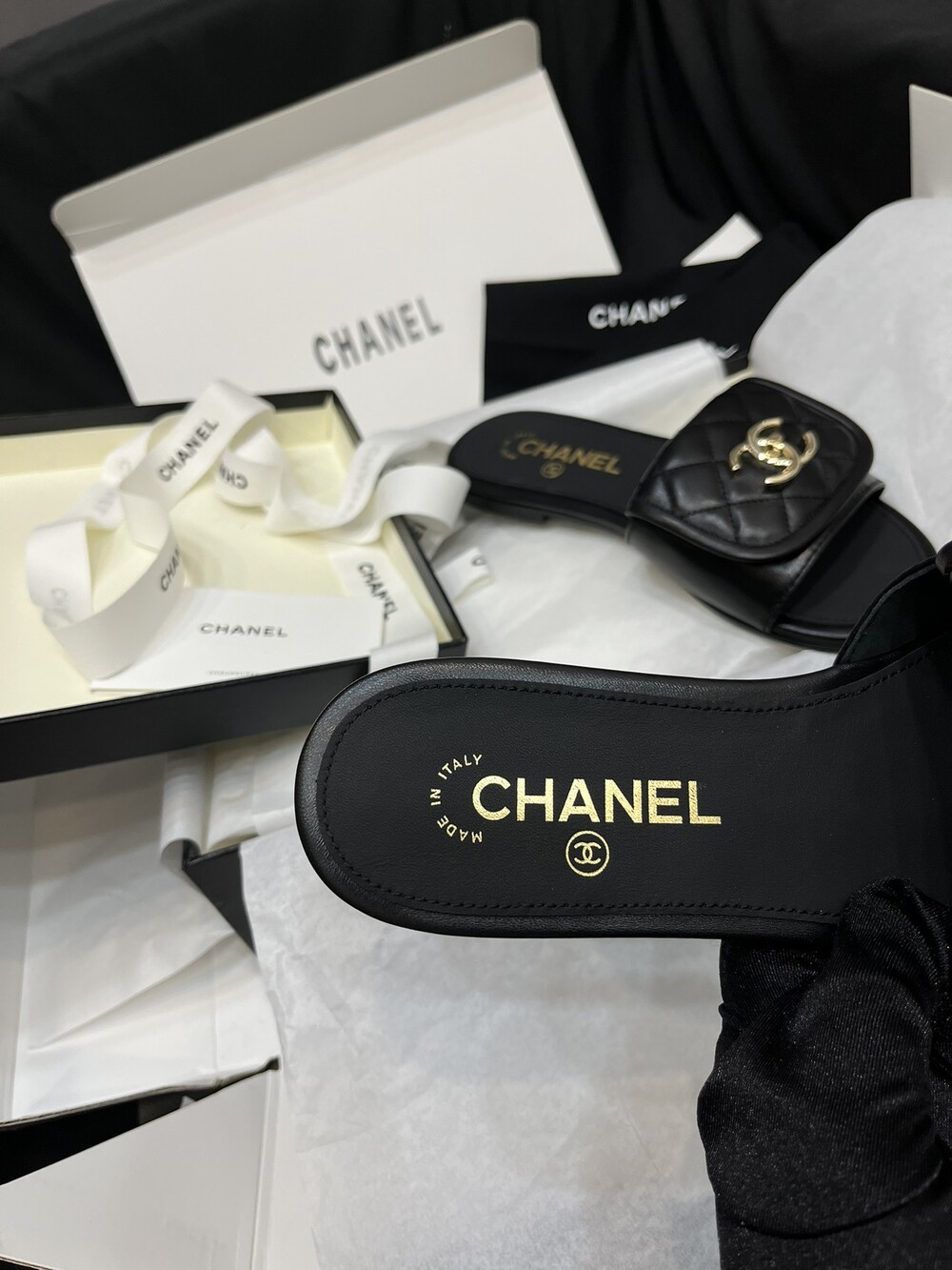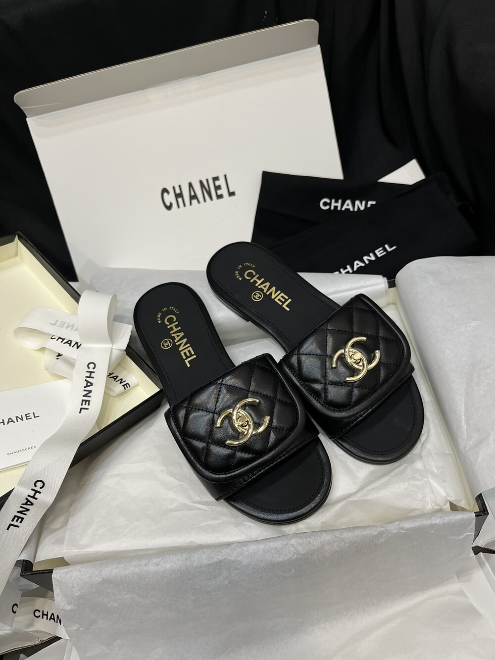 □CC 로고 턴락 뮬 슬리퍼□