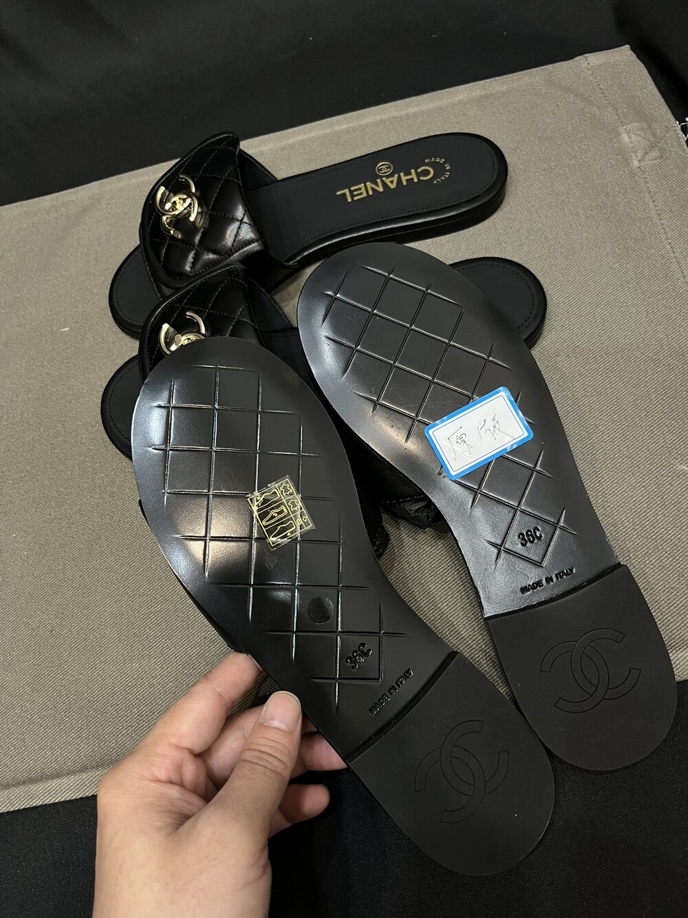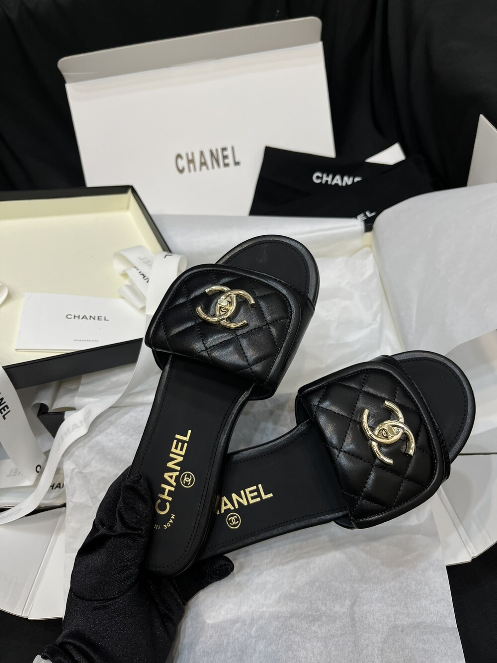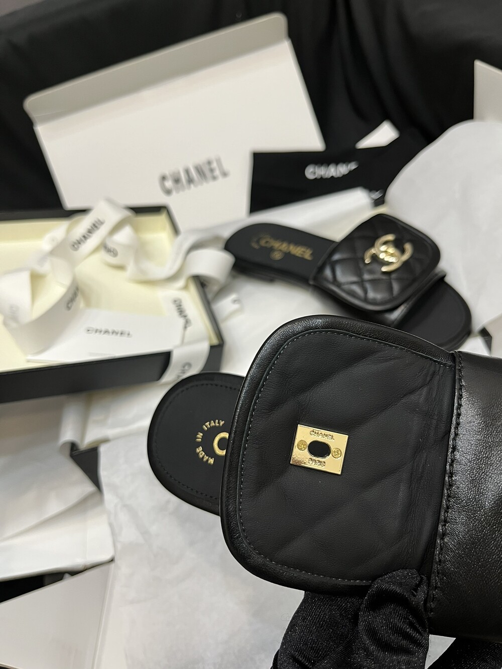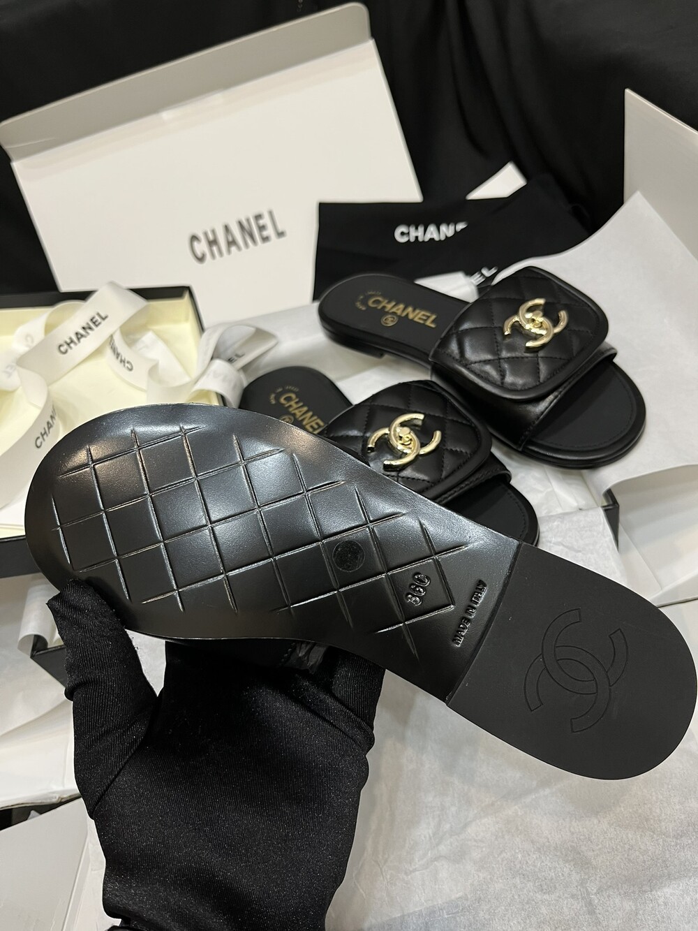 □CC 로고 턴락 뮬 슬리퍼□