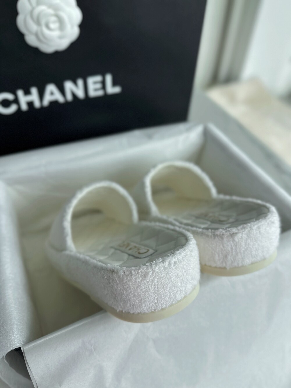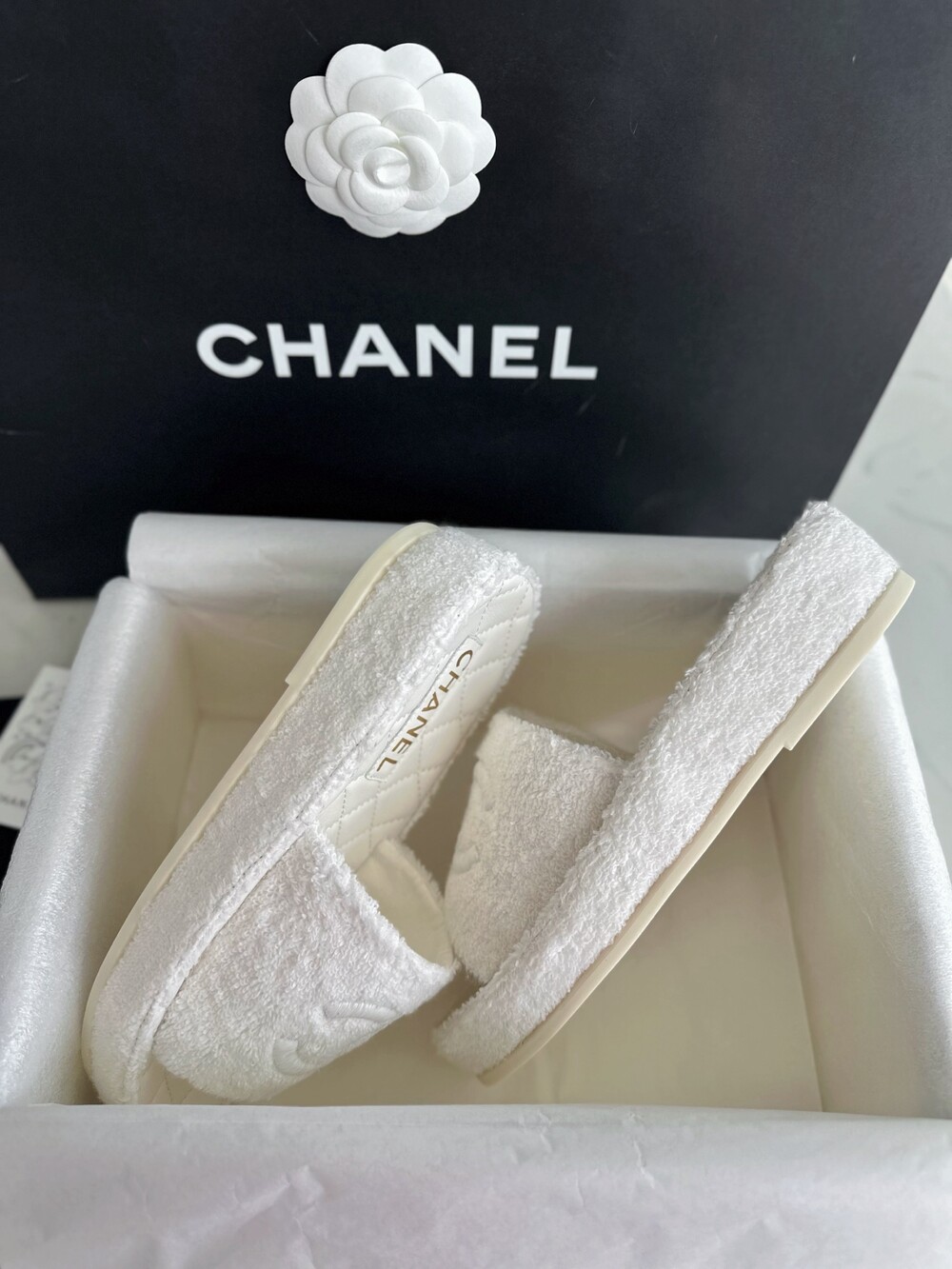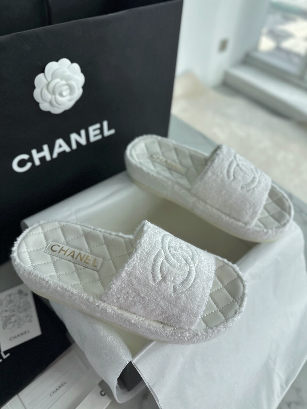 𝐂𝐡𝐚𝐧𝐞𝐥 화이트 테리 자수 플랫폼 슬리퍼