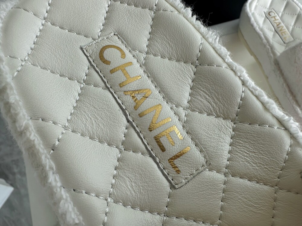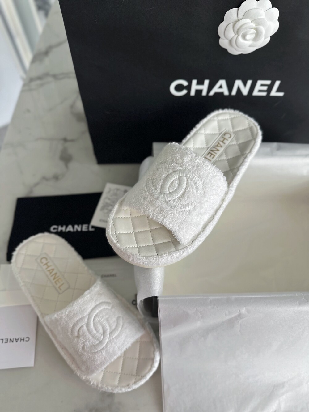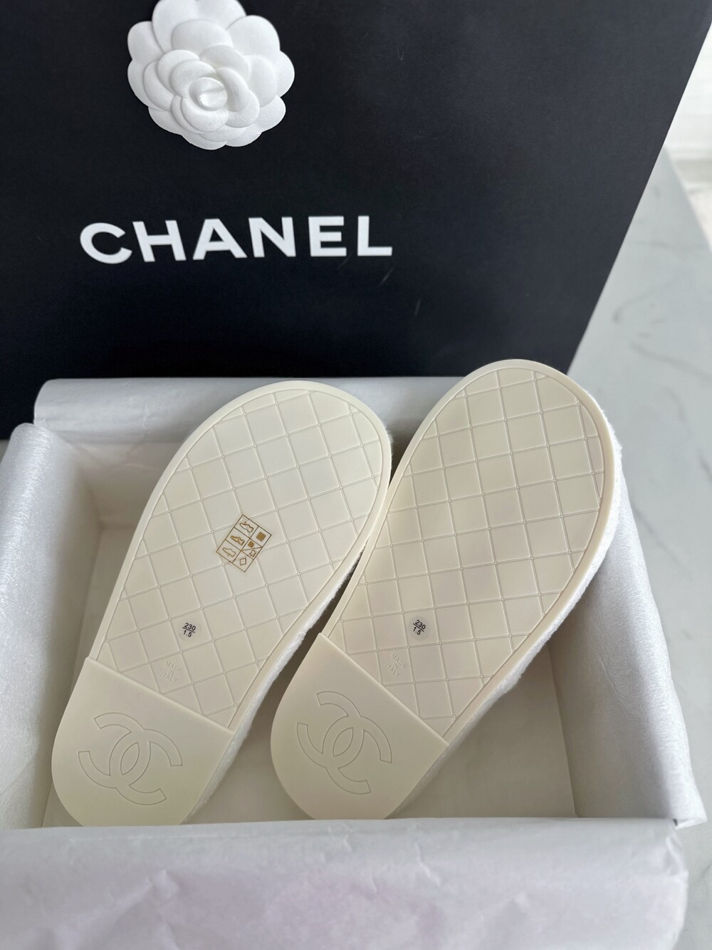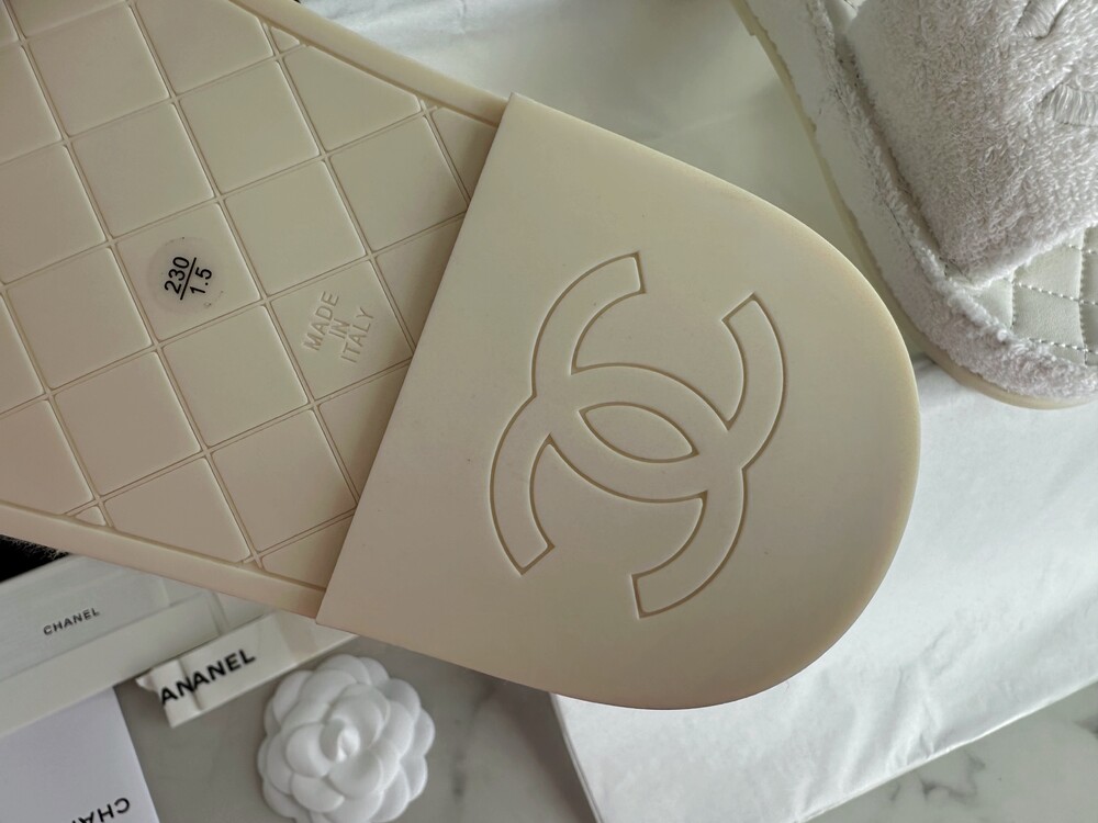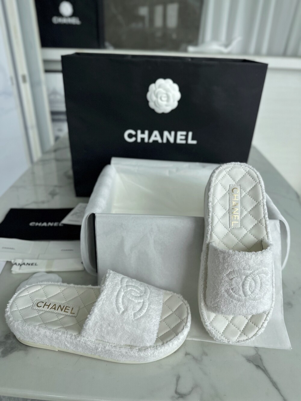 𝐂𝐡𝐚𝐧𝐞𝐥 화이트 테리 자수 플랫폼 슬리퍼