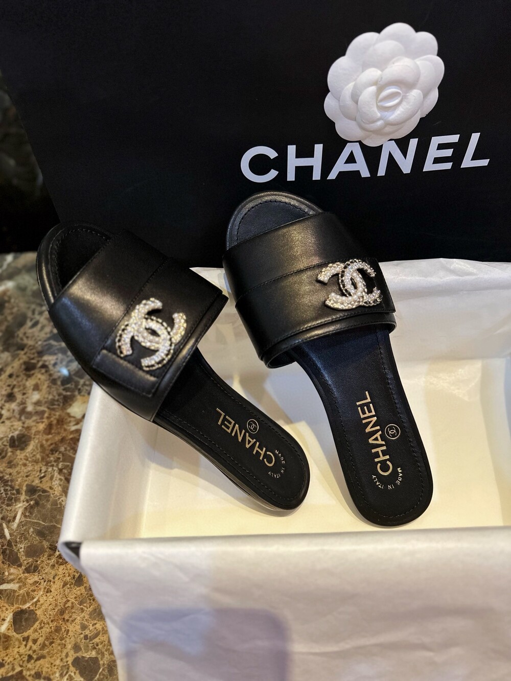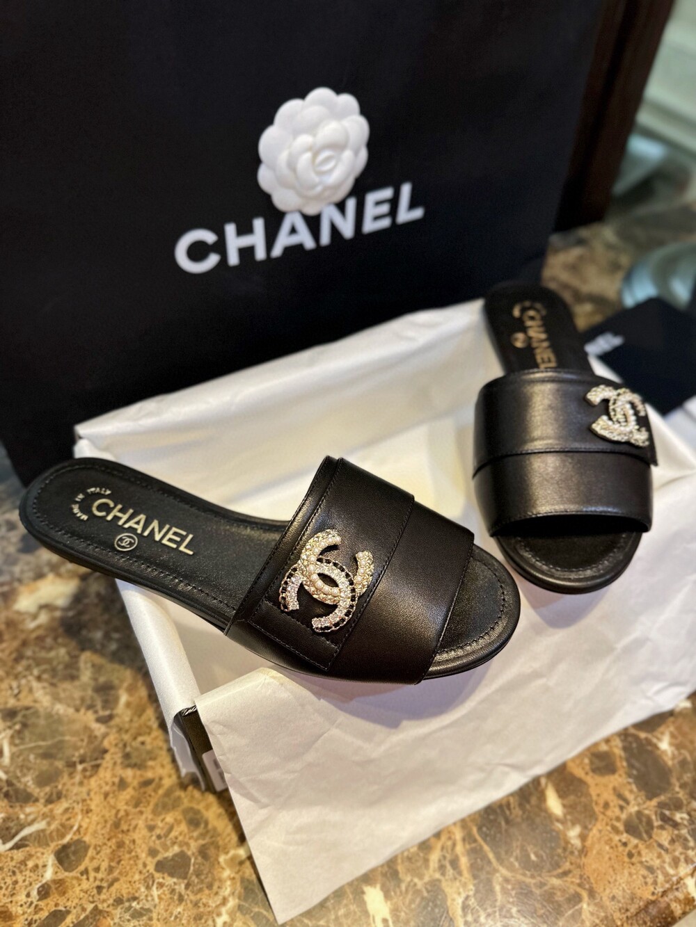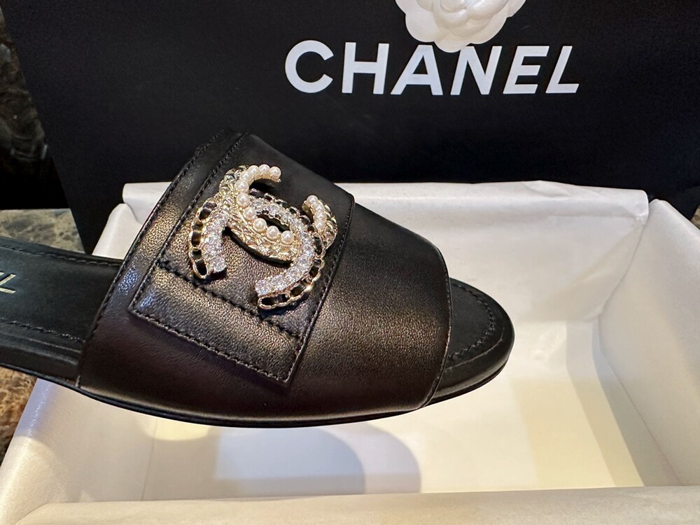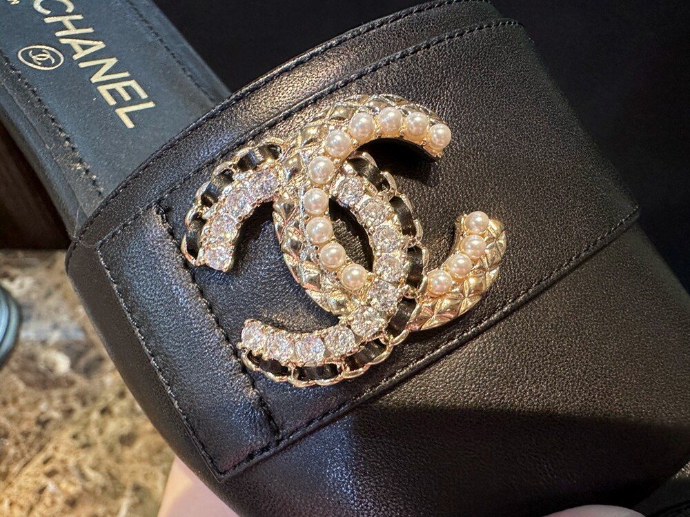 𝗖.𝗛𝗔𝗡𝗘𝗟 진주 큐빅 슬리퍼