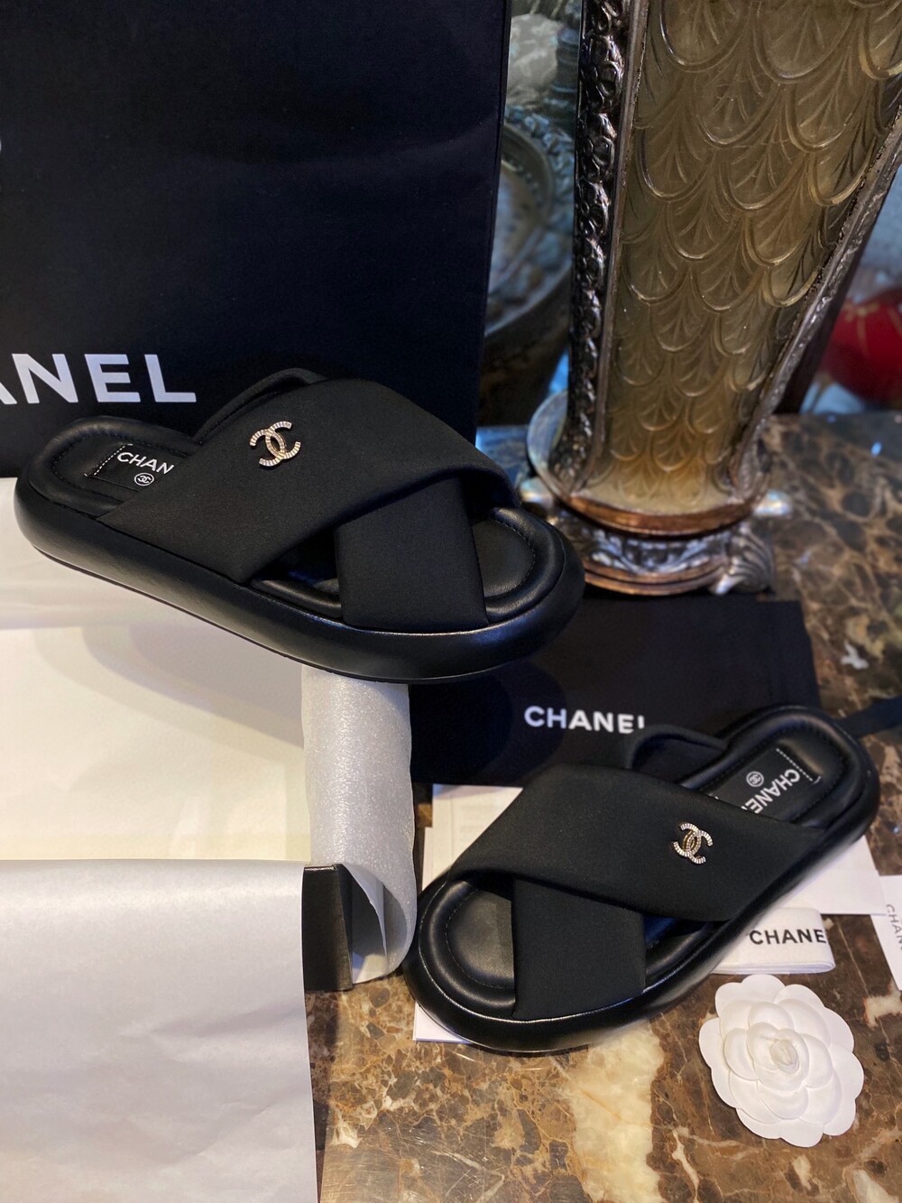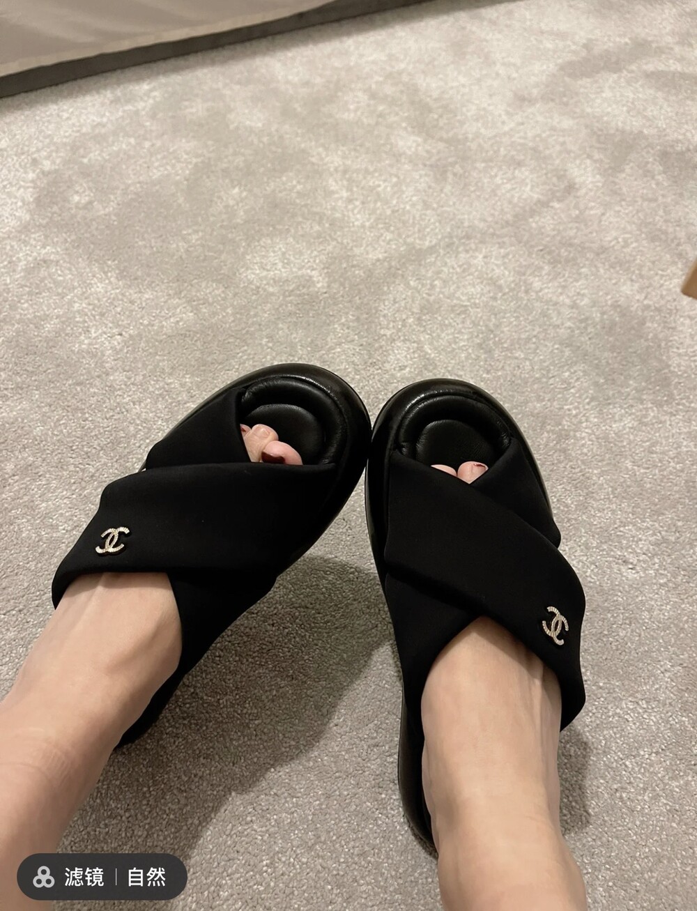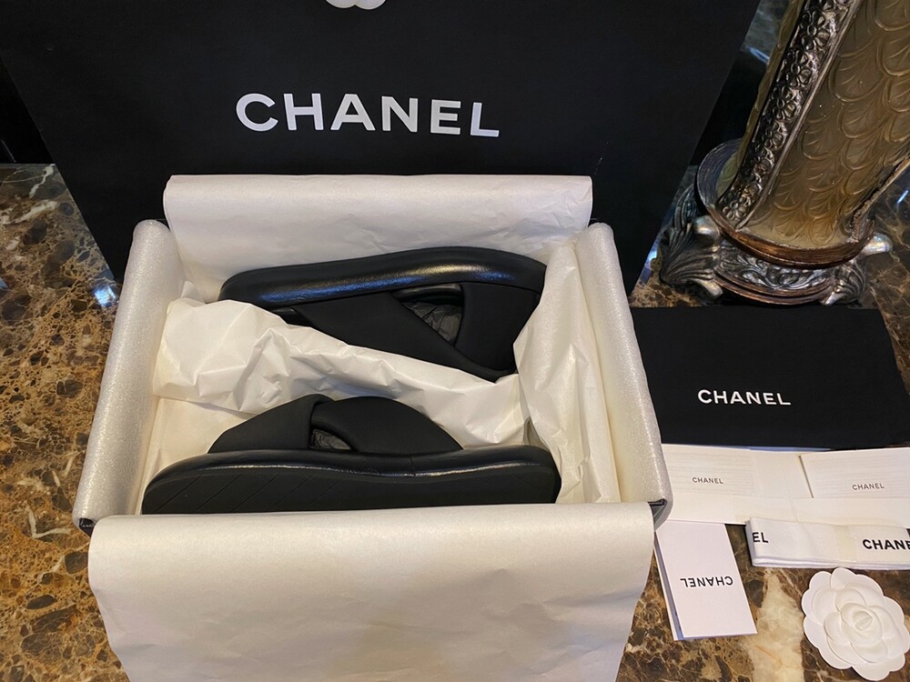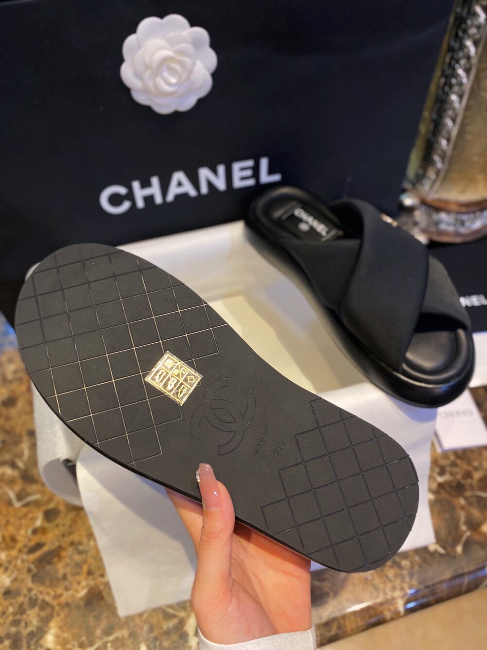 𝐂𝐡𝐚𝐧𝐞𝐥 블랙 크로스 스트랩 슬리퍼