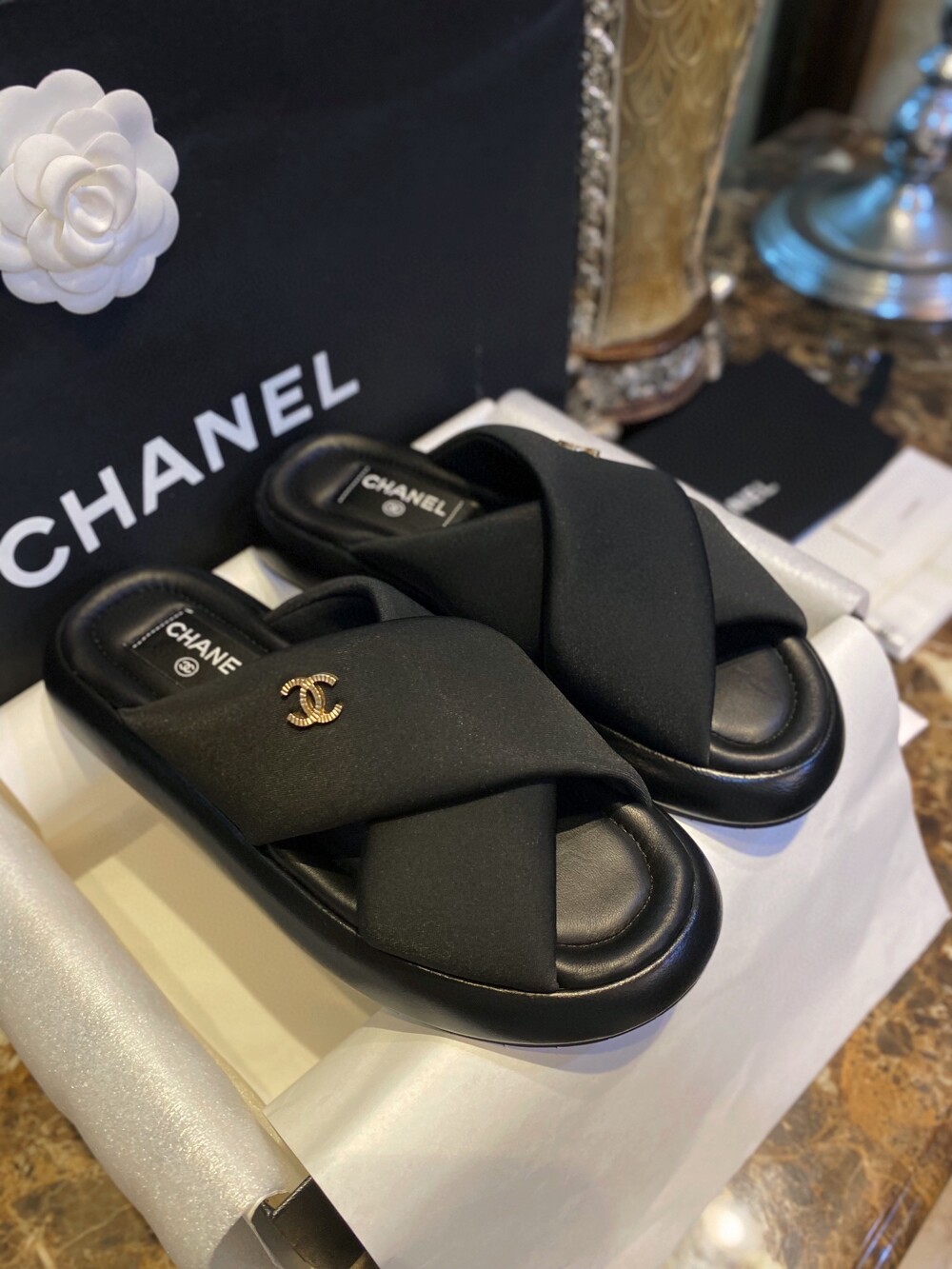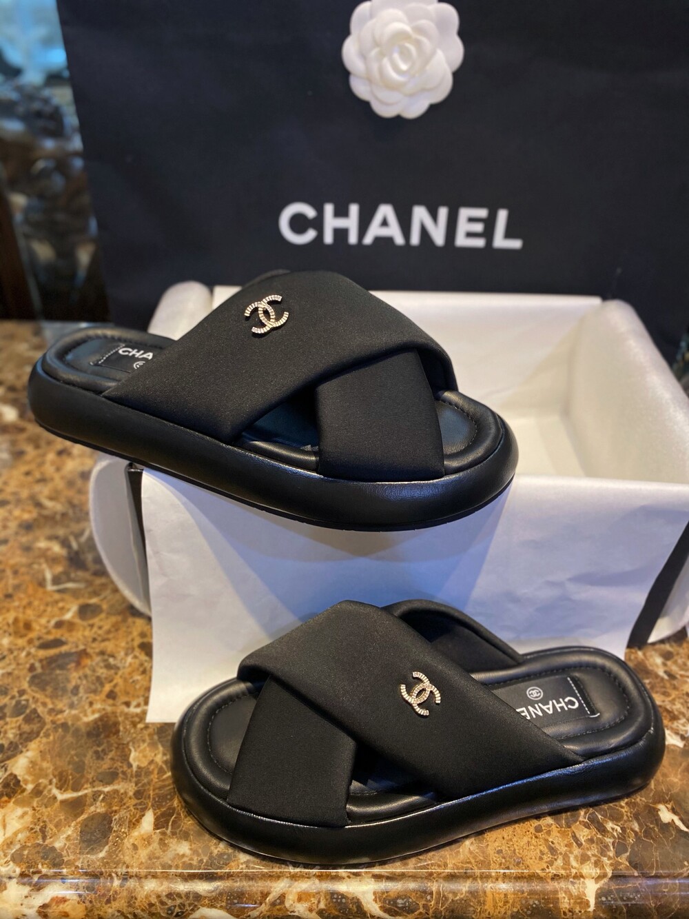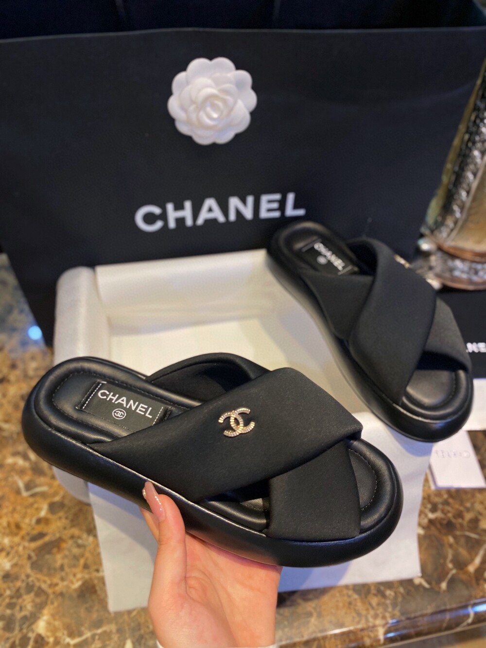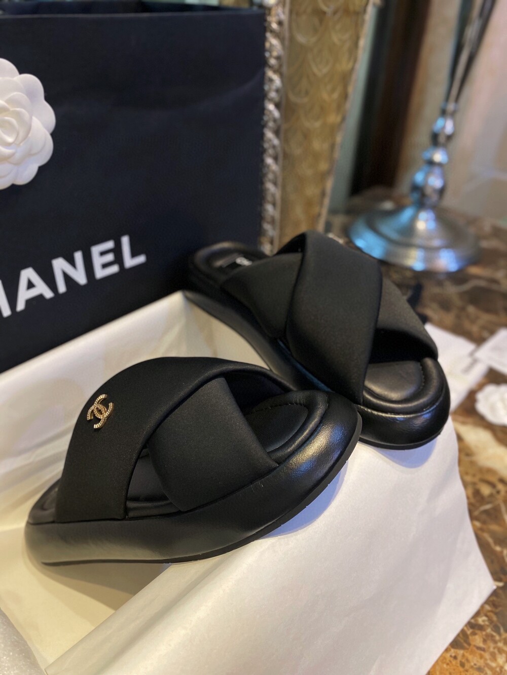 𝐂𝐡𝐚𝐧𝐞𝐥 블랙 크로스 스트랩 슬리퍼