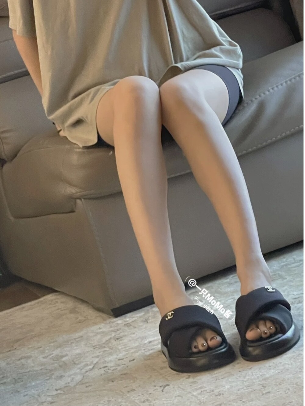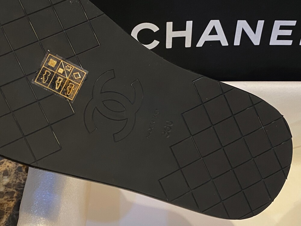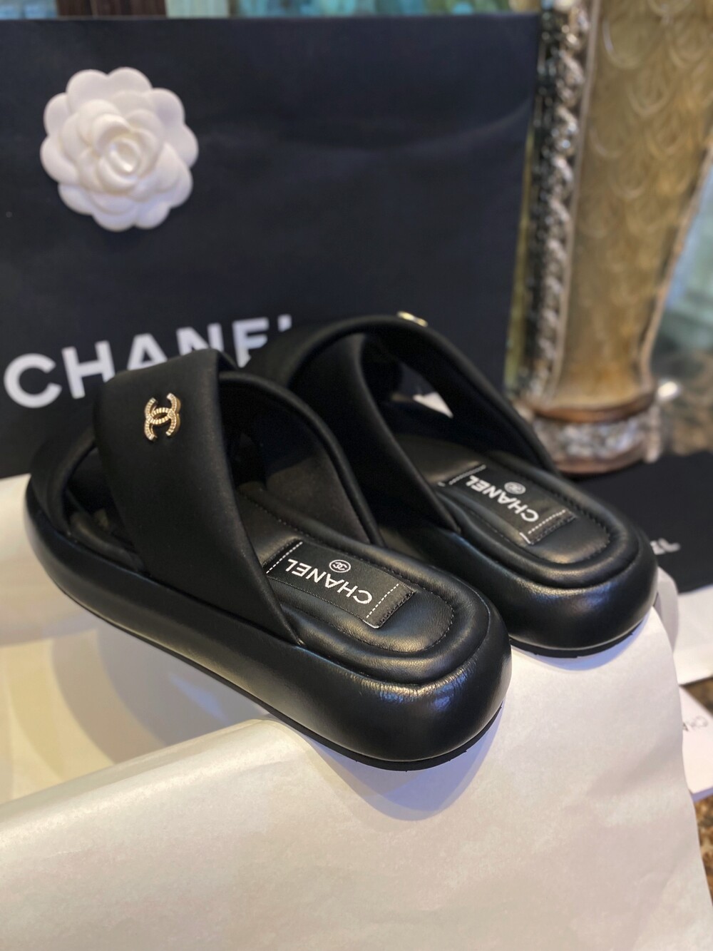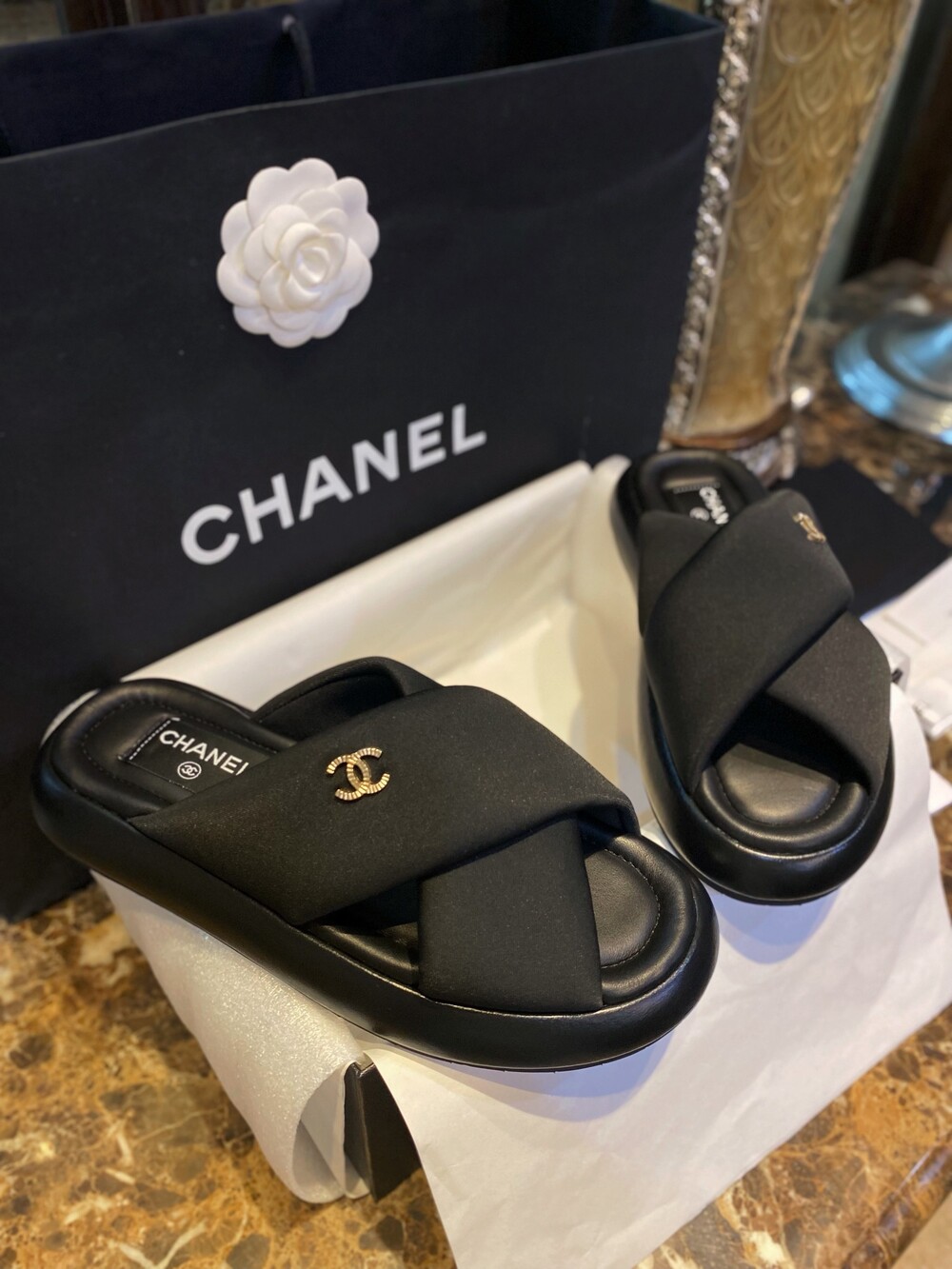 𝐂𝐡𝐚𝐧𝐞𝐥 블랙 크로스 스트랩 슬리퍼
