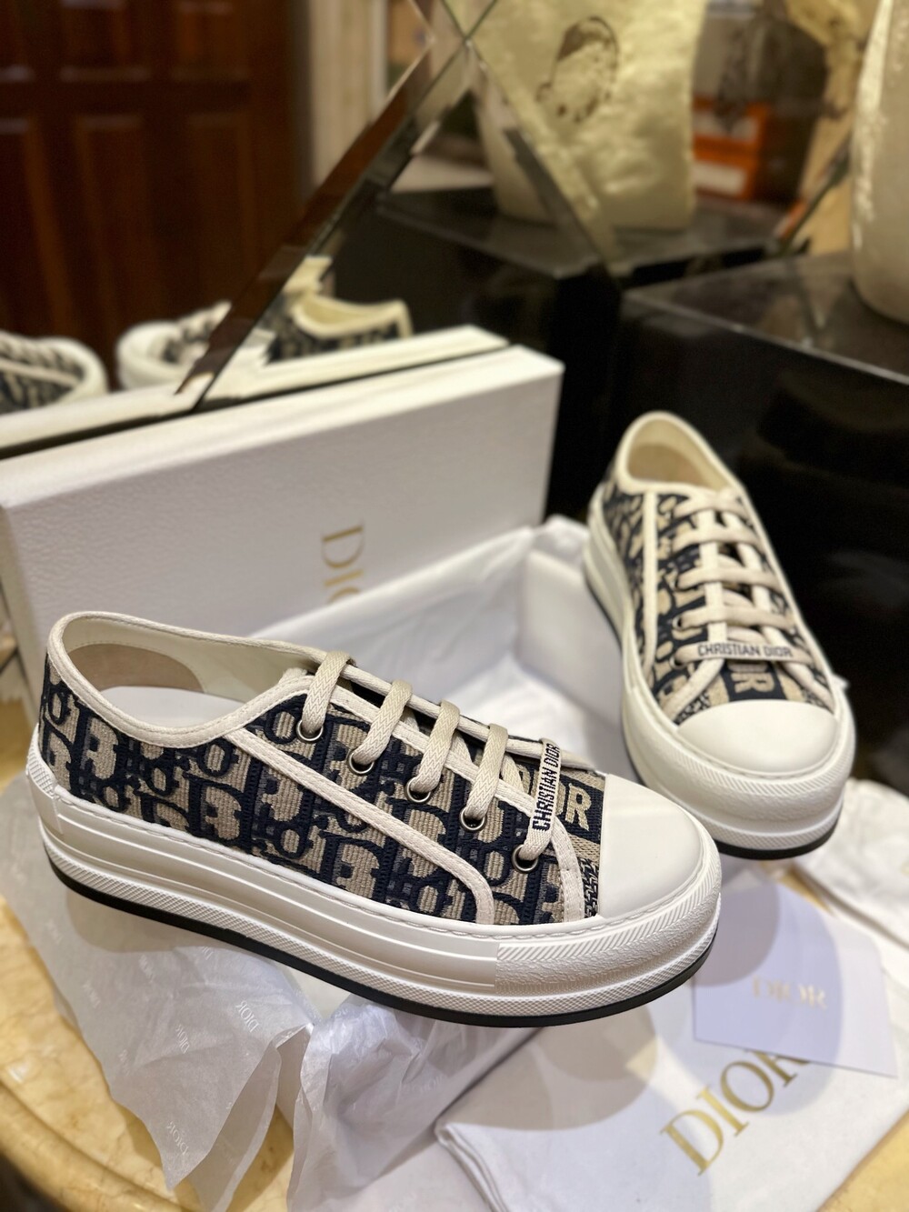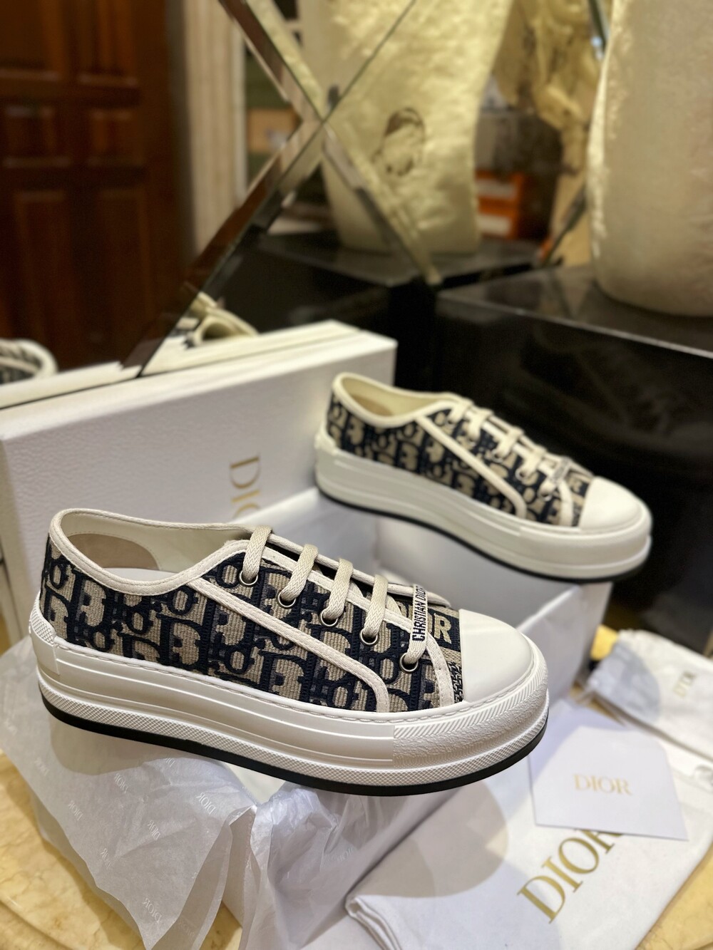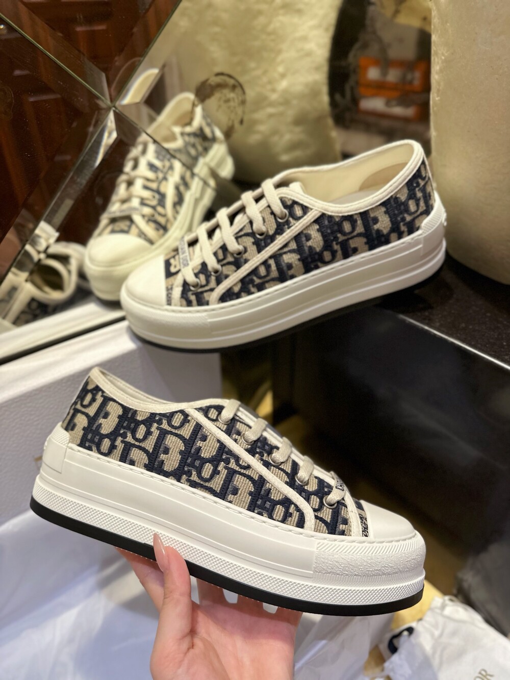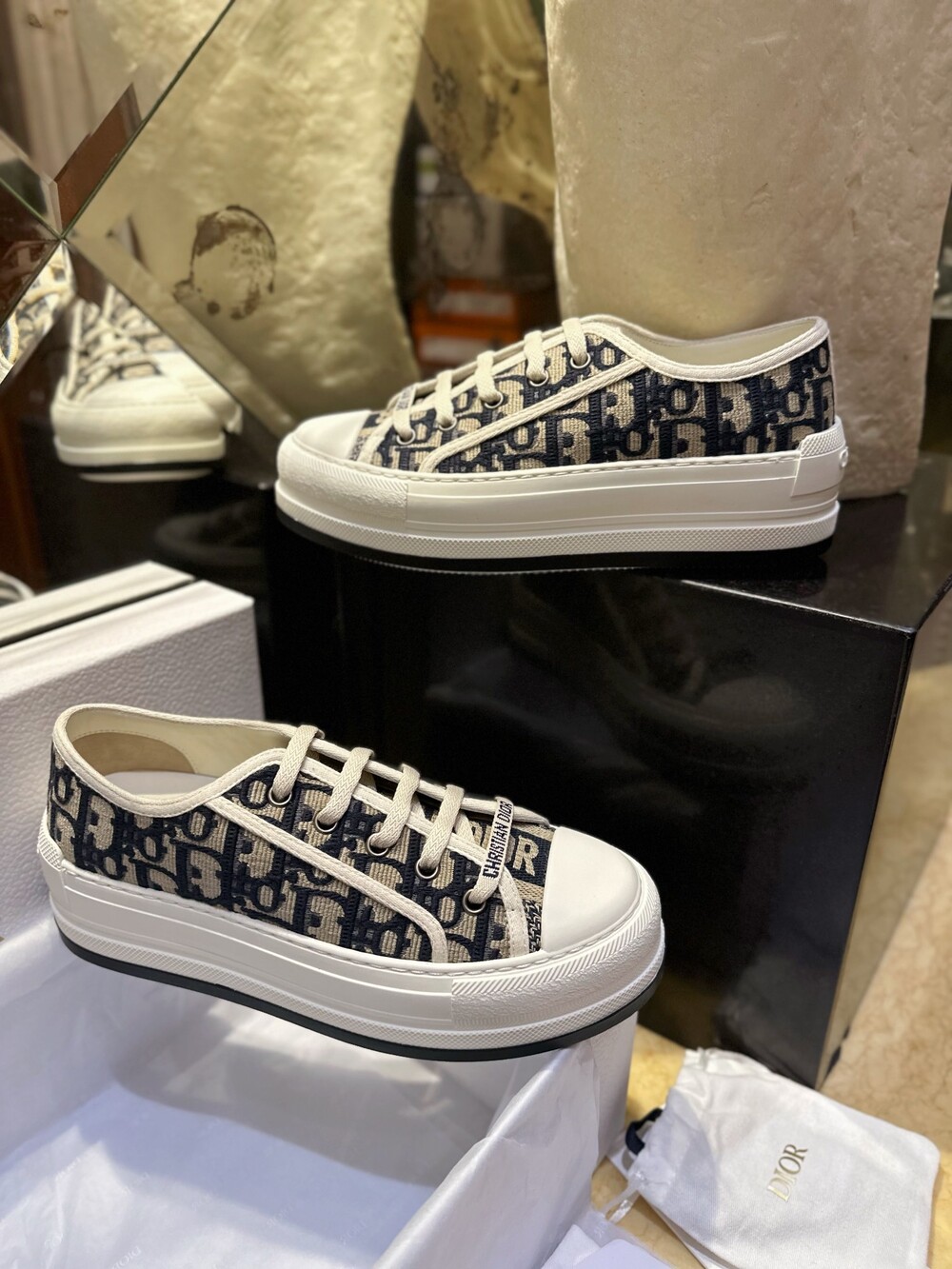 𝐃𝐢𝐨𝐫 통굽 자수 캔버스 스니커즈