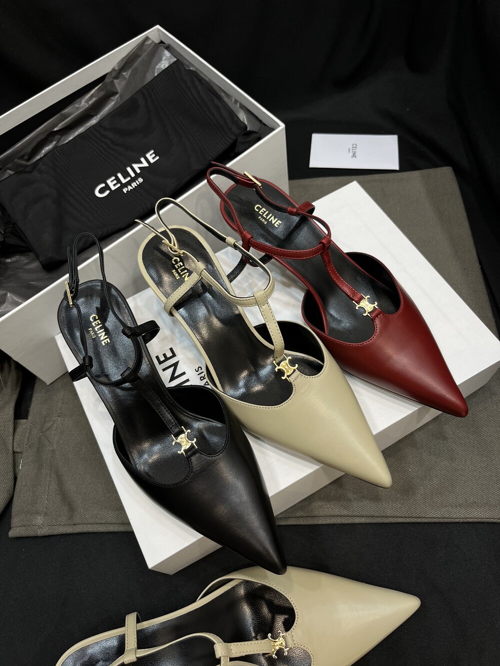 C eline Triomphe 뾰족한 키튼 힐 슈즈,