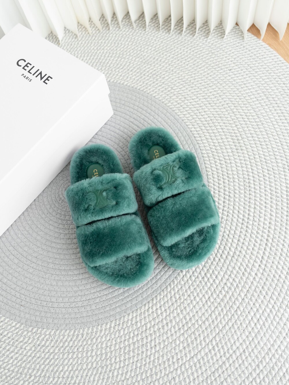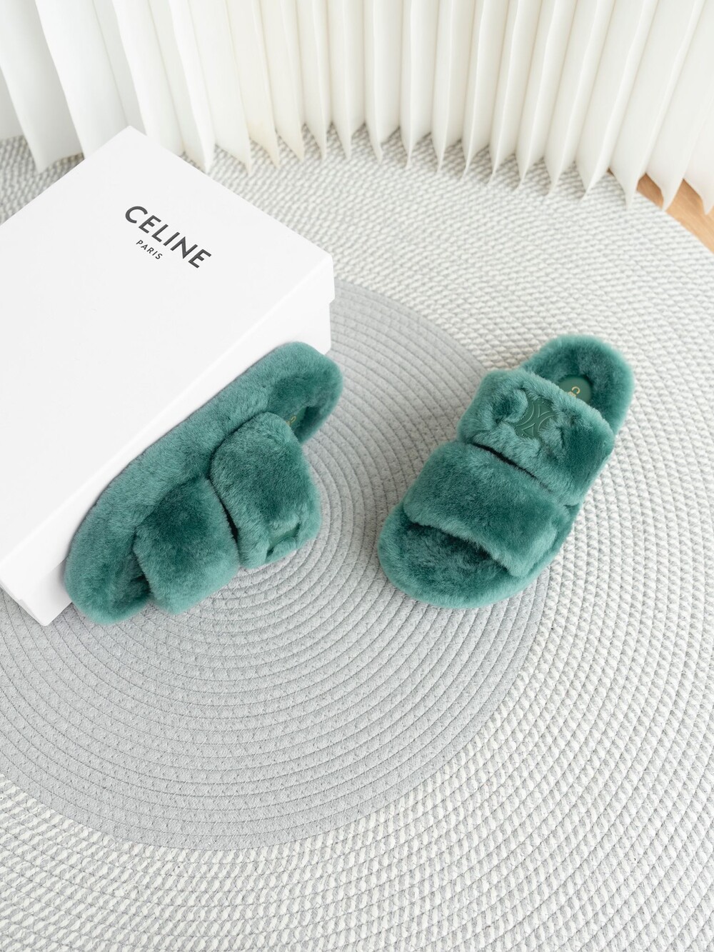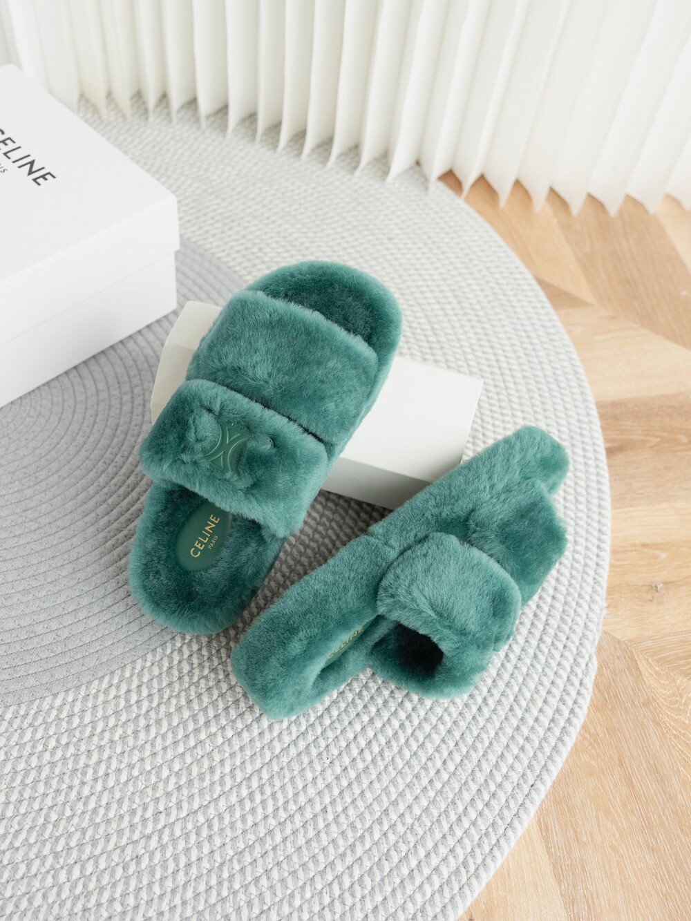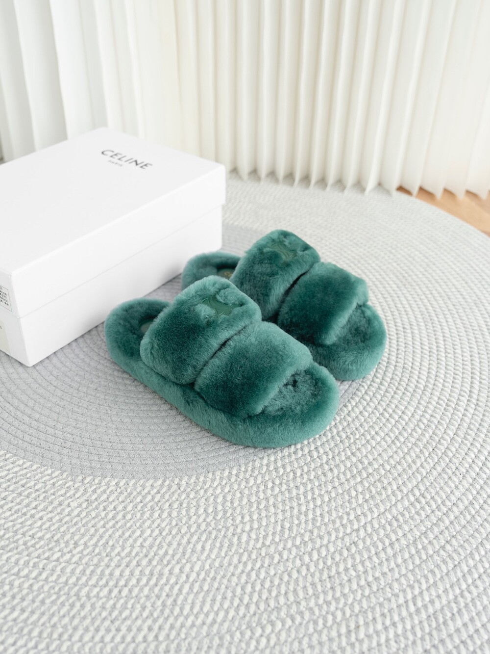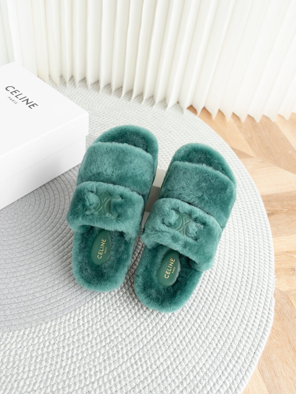 C eline 가을 겨울 모피 일체형 양가죽 슬리퍼