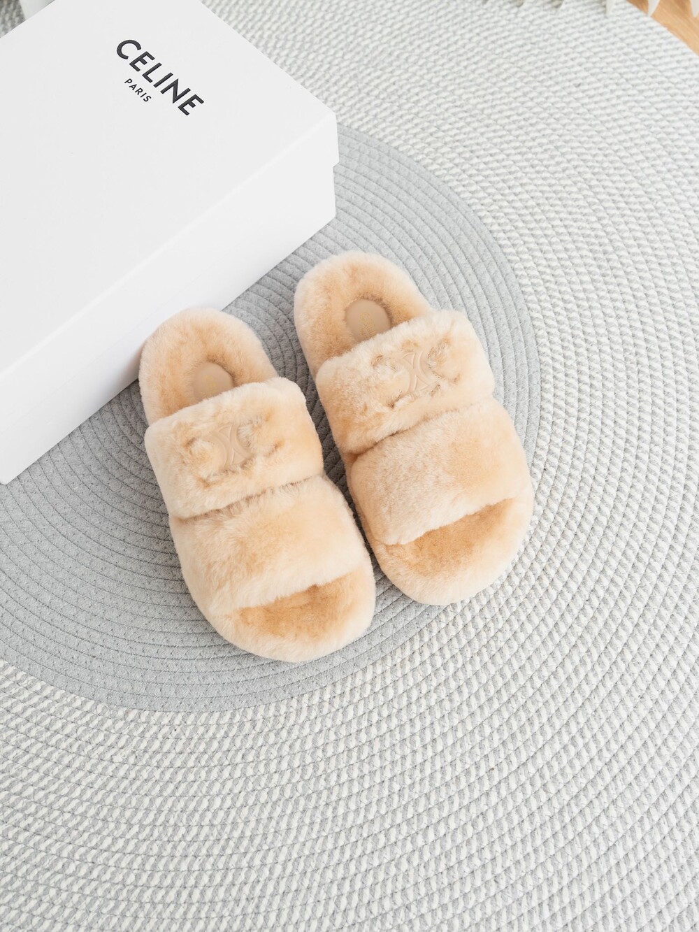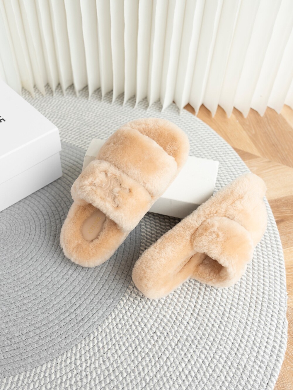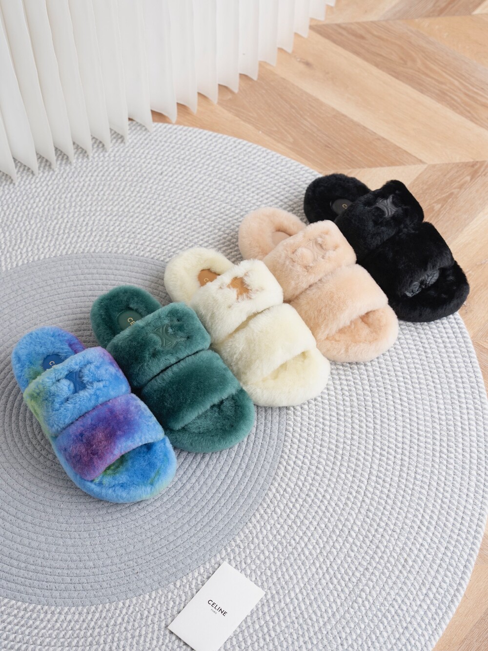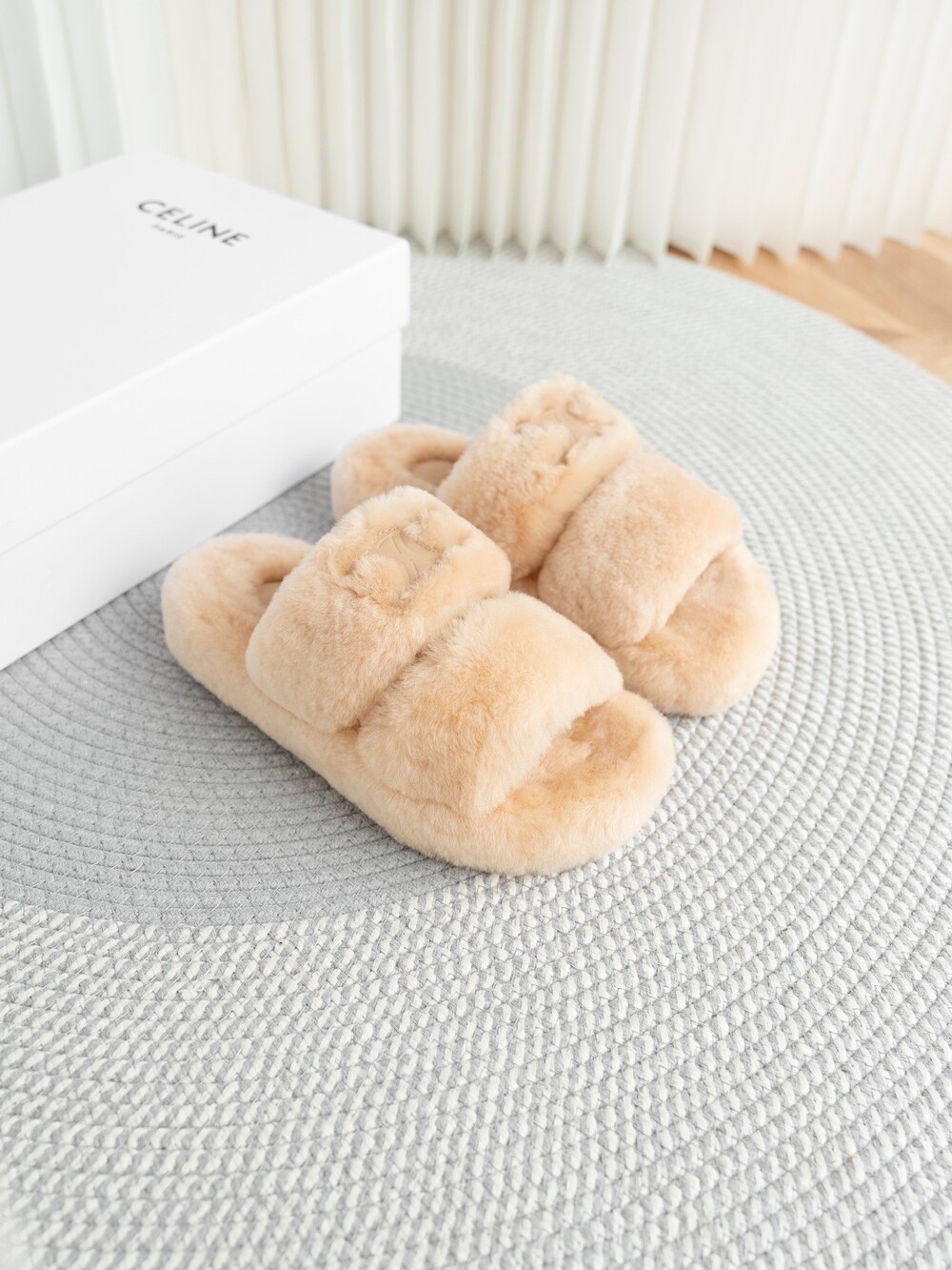 C eline 가을 겨울 모피 일체형 양가죽 슬리퍼