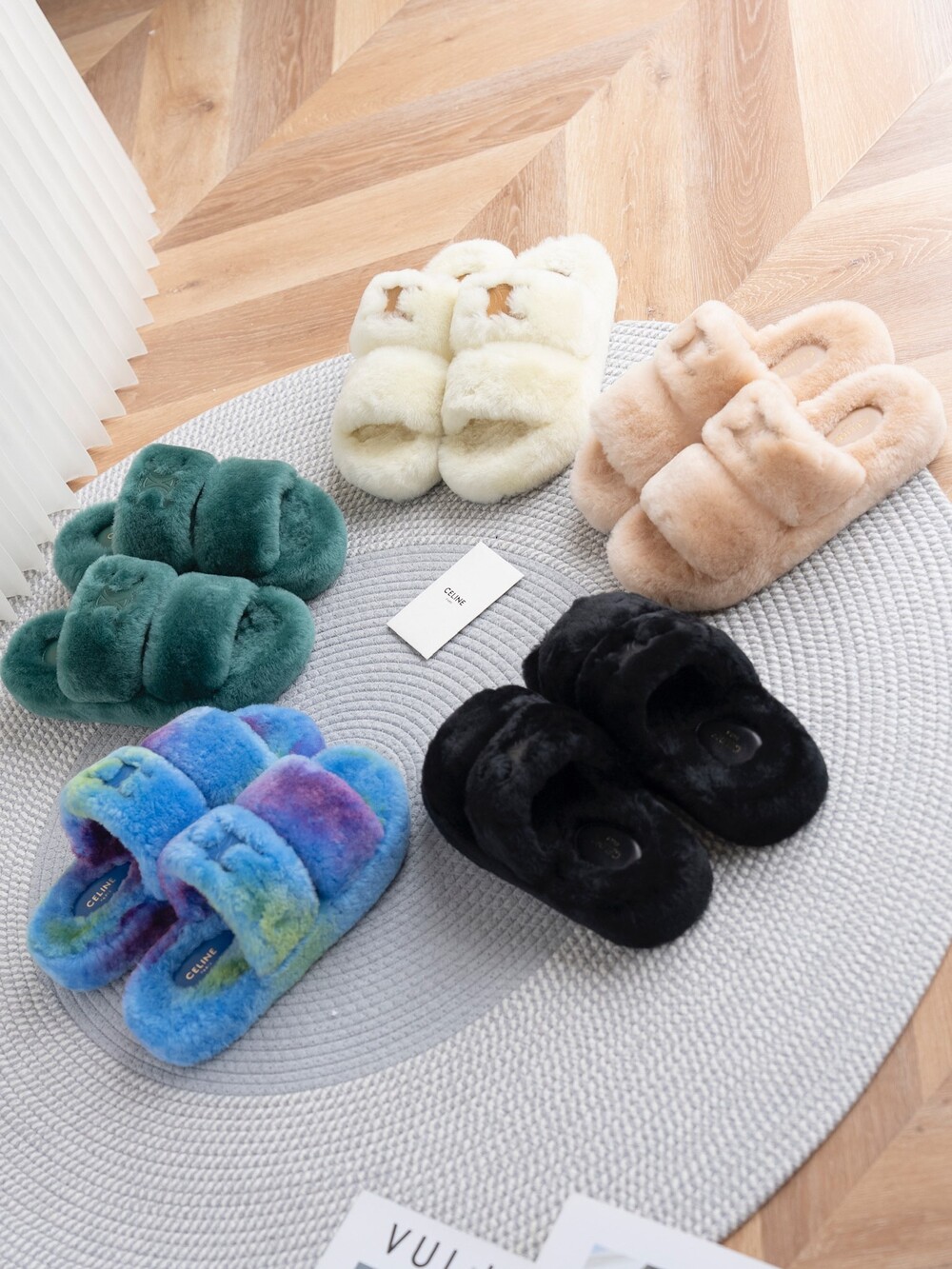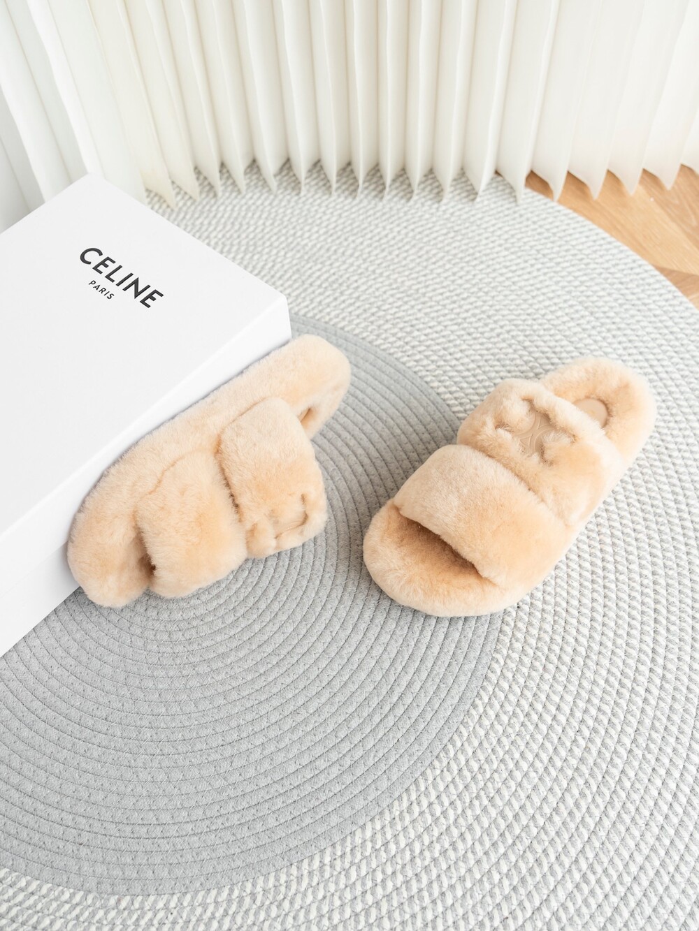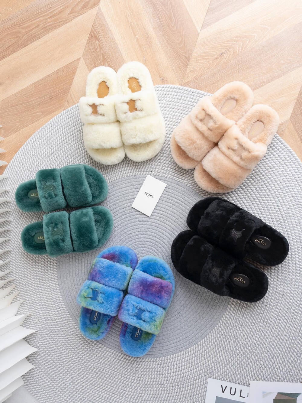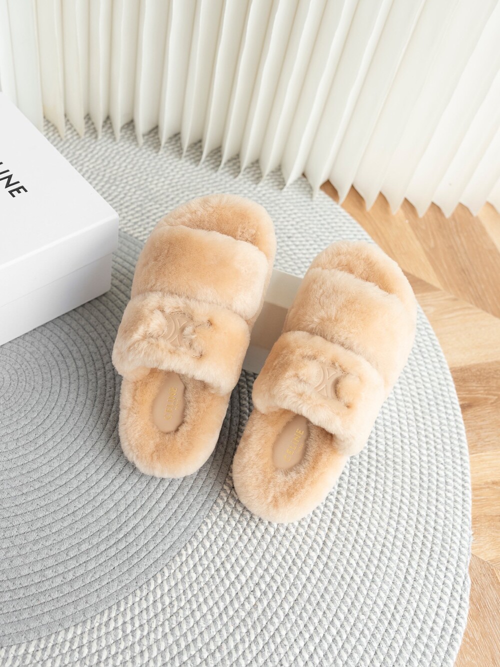 C eline 가을 겨울 모피 일체형 양가죽 슬리퍼