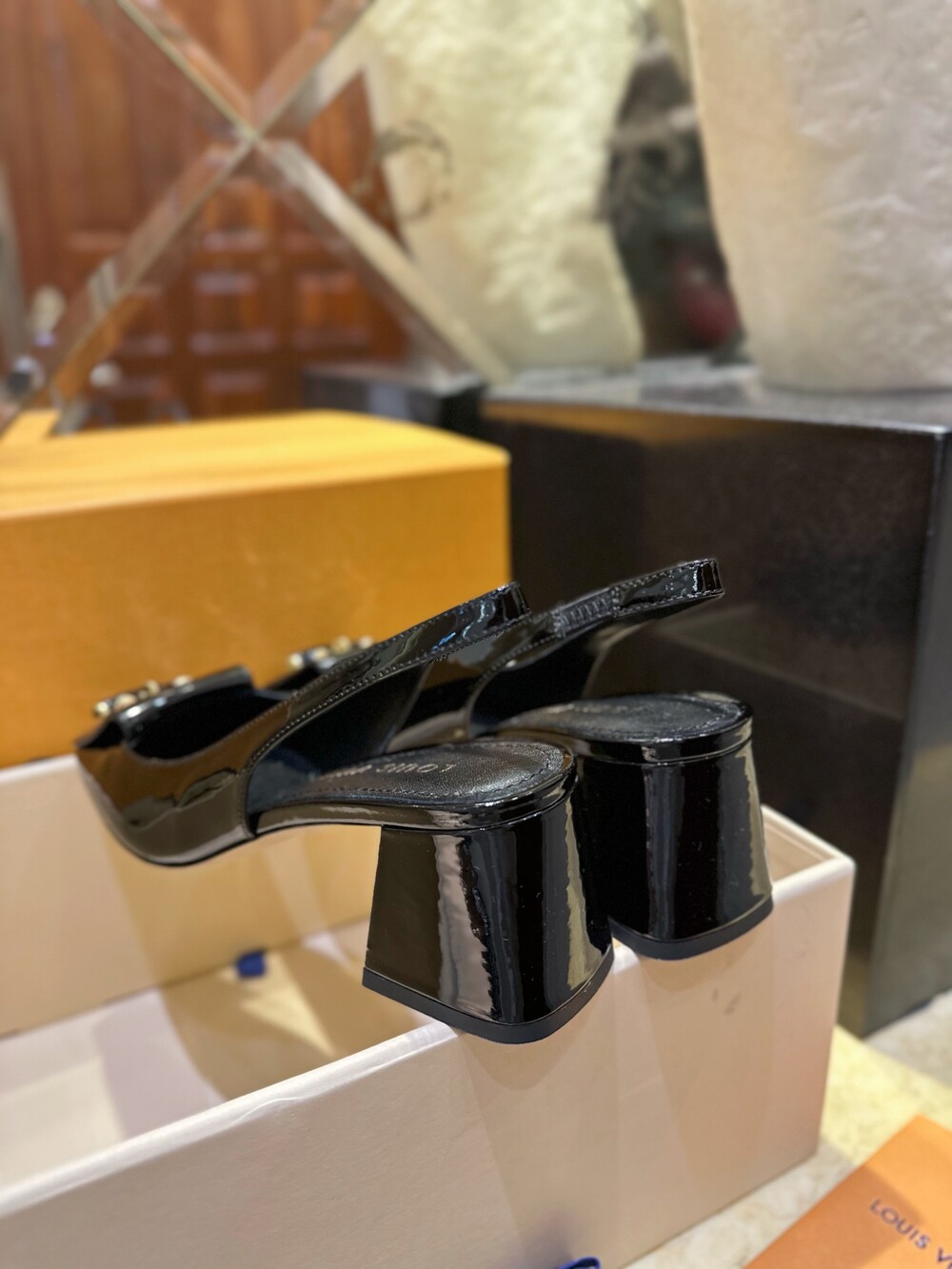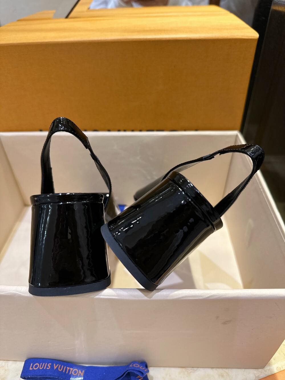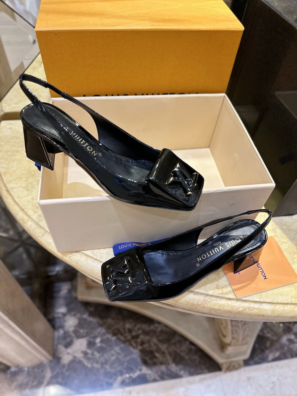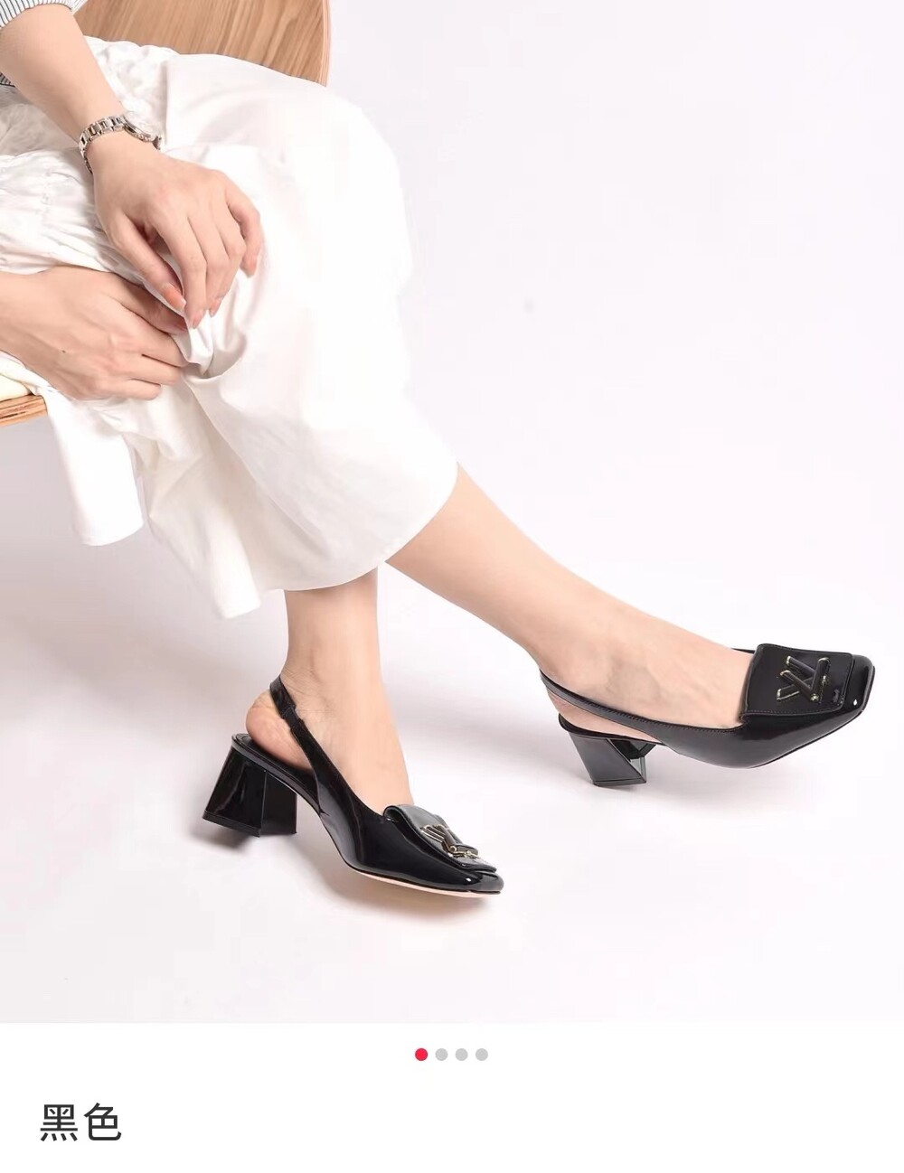 𝐋𝐯 스퀘어 토 통굽 힐 슬링백 샌들