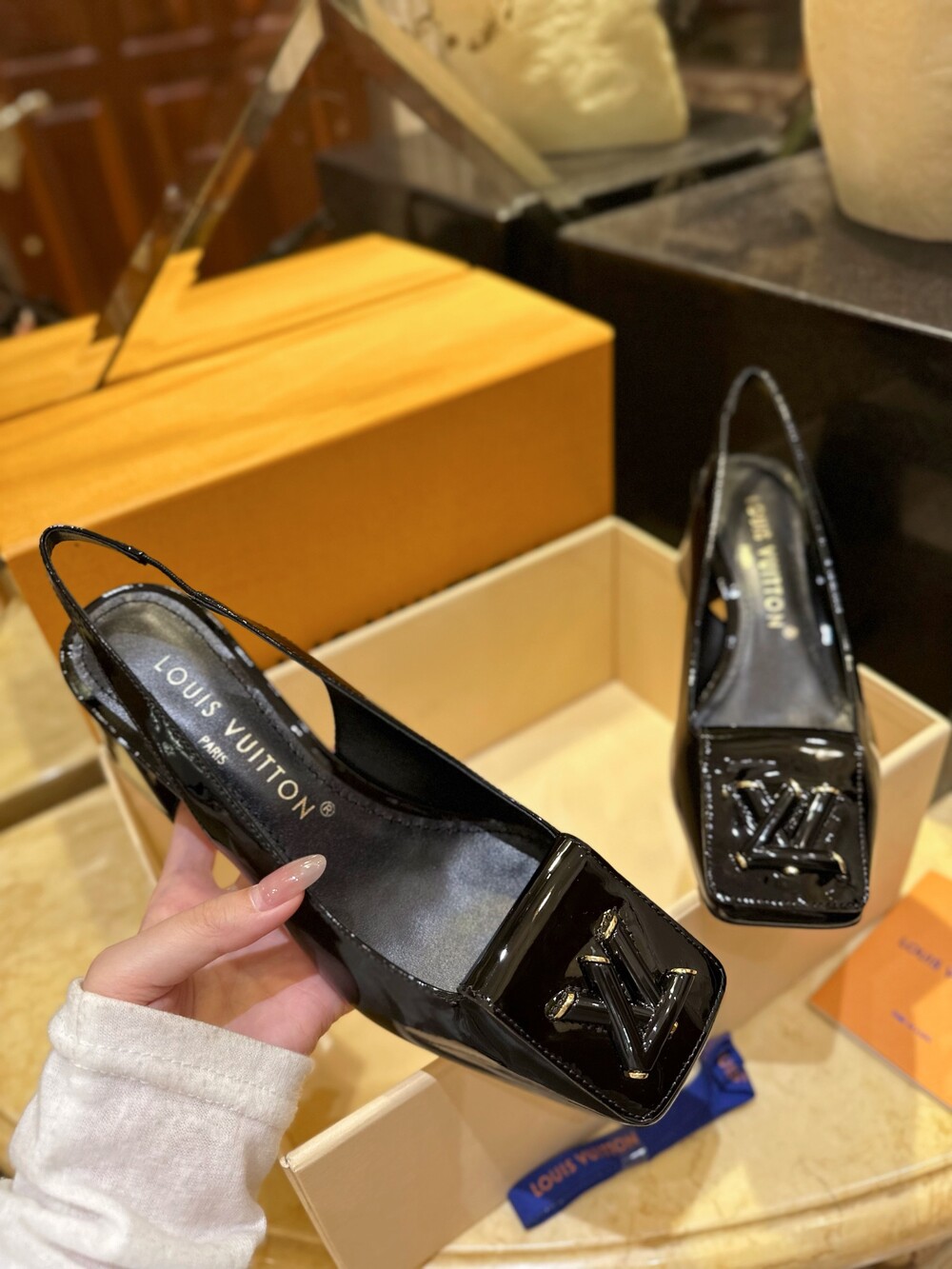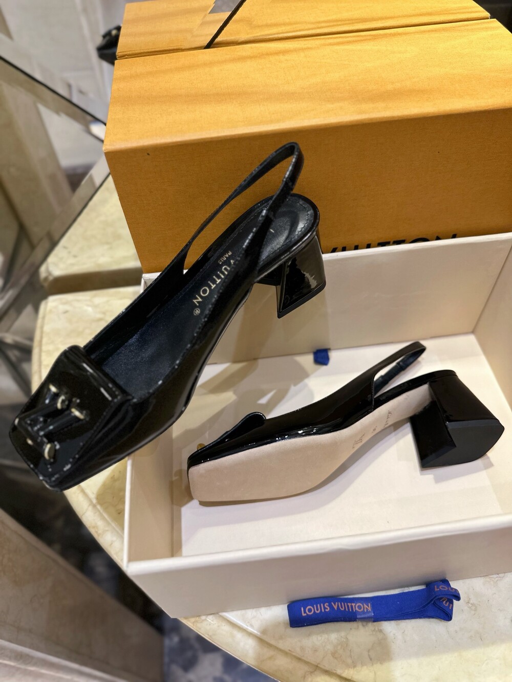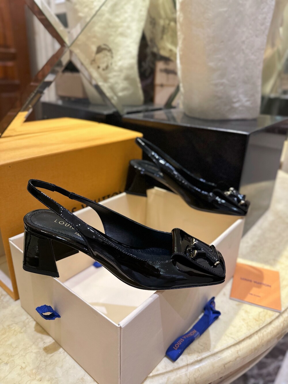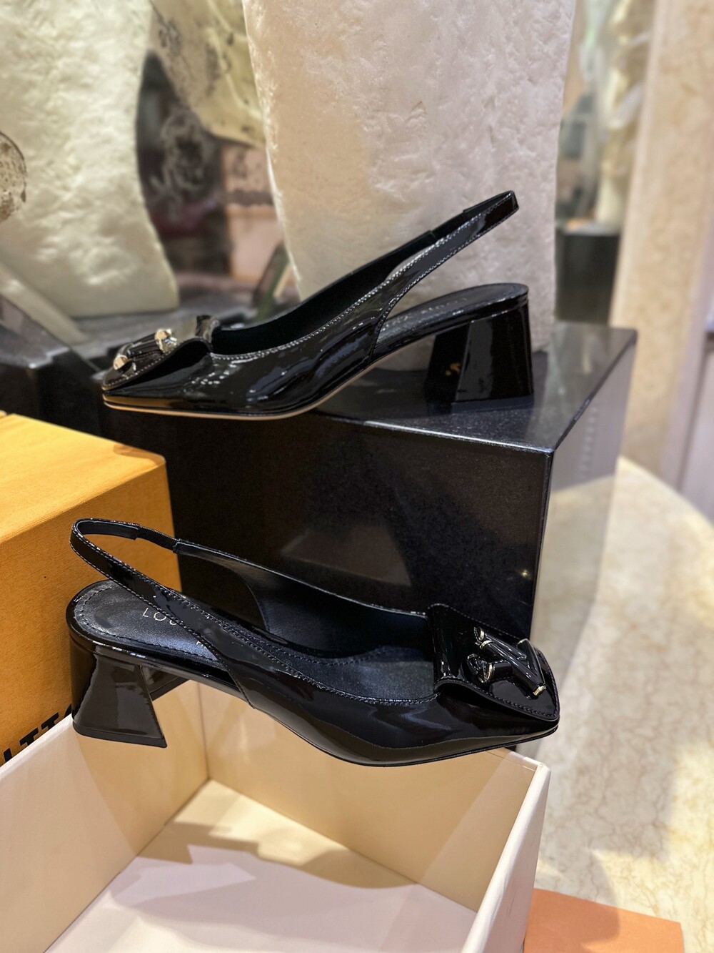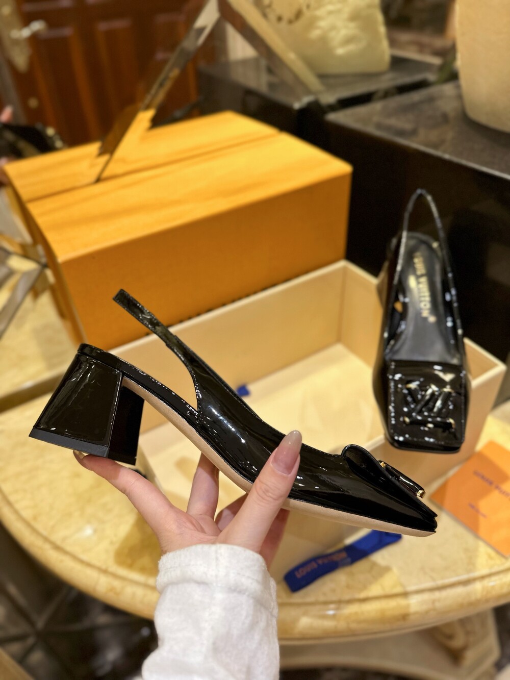𝐋𝐯 스퀘어 토 통굽 힐 슬링백 샌들